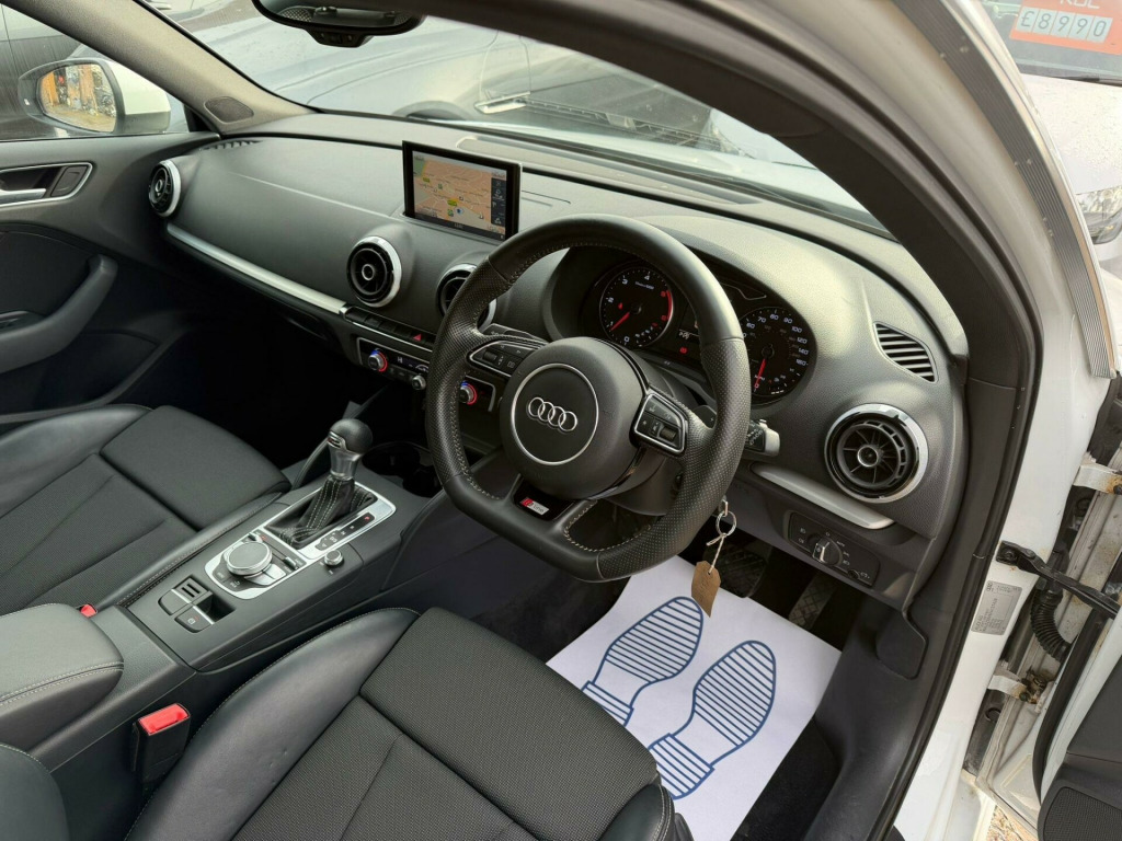 THREE MONTHS WARRANTY, MOT 23-01-2027, SAT NAV, HALF LEATHER SEATS, SPORTS SEATS, BLUETOOTH, PARKING SENSORS, 2 KEYS. 12V Power Socket - Centre Console, 12V Power Socket - Rear, 18in Alloy Wheels - 5-Parallel Spoke Design Partly Polished, ABS - Anti-Lock Braking System, AMI - Audi Music Interface, ASR - Anti Slip Regulation, Active Bonnet, Adaptive Brake Lights, Air Vent Sleeves - Aluminium Look, Airbags - Driver, Airbags - Drivers Knee, Airbags - Front Passenger, Airbags - Front Side, Airbags - Head Level Side For Front and Rear, Alarm - Thatcham Category 1, Aluminium Interior Elements, Anti Theft Locking Wheel Bolts, Audi Drive Select, Car Jack, Chrome-Plated Exhaust Tailpipe Trim, Cloth Headlining in Black, Coat Hooks - B Pillar - Both Sides, Colour Drivers Information System - DIS, Cup Holders - Rear x2, Cup Holders - x2 in Centre Console, DAB Digital Radio, Daytime Running Lights, Display Screen Colour - 5.8in, Door Mirrors - Body Coloured with Integrated LED Indicators, Door Mirrors - Electrically Adjustable and Heated, Door Sill Trims with S Line Logo, Dual-Zone Electronic Climate Control, EBD - Electronic Brakeforce Distribution, EDL - Electronic Differential Lock, ESP - Electronic Stability Programme, Electric Windows - Front and Rear, Electromechanical Parking Brake, Electromechanical Power Steering, Exhaust Tailpipe - Twin, First Aid Kit, Fog Lights - High Gloss Black Surrounds, Front Centre Armrest, Front Fog Lights, Front Passenger Airbag Deactivation Switch, Front Sports Seats, Front and Rear Floor Mats, Gear Knob - Perforated Leather, Headlights - Automatic Dynamic Range Control, Headlights - Bi-Xenon Plus, Headlights Washers, Heated Rear Windscreen, Heated Windscreen Washer Jets, Height Adjustable Boot Floor, Hydraulic Brake Assist, ISOFIX Child Seat Mounting for Front Passenger and Rear Outer Seats, Illuminated Vanity Mirrors, Inlays - Matt Brushed Aluminium, Interior Lighting, LED Daytime Running Lights, LED Rear Indicators, LED Rear Lights, Luggage Compartment - Lashing Points x4, Luggage Compartment - Side Net, MMI Radio, Mobile Telephone Preparation - Bluetooth Interface, Model and Engine Technology Badges at Rear, Multi Collision Brake Assist, Preparation for SD Card-Based Navigation System, Radiator Grille - High Gloss Black, Rear Parcel Shelf Removable, Remote Central Locking with 2 Fold Away Keys, Rest Recommendation System, S Line Badges on Front Wings, S Line Body Styling, S Line Design Front and Rear Bumpers Side Grilles and Dffusers in Platinum Grey, S line Design Front Bumper-Rear Diffuser-Side Sills and Roof Spoiler, SDHC Card Reader x2, Seat Belt Reminder for All Seats, Seats - Convenience Entry - Enhanced Front Folding Function, Seats - Front Height Adjustment, Seats - Split Folding Rear - 60-40, Secondary Collision Brake Assist, Smoking Package, Space Saver Spare Wheel, Speakers x8, Sport Suspension, Steering Wheel - 3-Spoke Leather-Flat Bottomed-Shift Paddles, Steering Wheel - Height and Reach Adjustable, Steering Wheel - Multi-function, Storage Compartment Under Rear Seat, Storage Compartments in the Door Side Trims-Centre Console-Under Front Passenger Seat, Storage Net in Front Passenger Footwell and Front Seat Backrests, Storage and Luggage Package, Sun Visors - with Covered Vanity Mirrors, Tool Kit, Tyre Pressure Monitoring System, USB Connection, Voice Control - Navigation, Warning Triangle, Washer Fluid Level Indicator, Window Surrounds - Aluminium, Comfort Package, Technology Package.