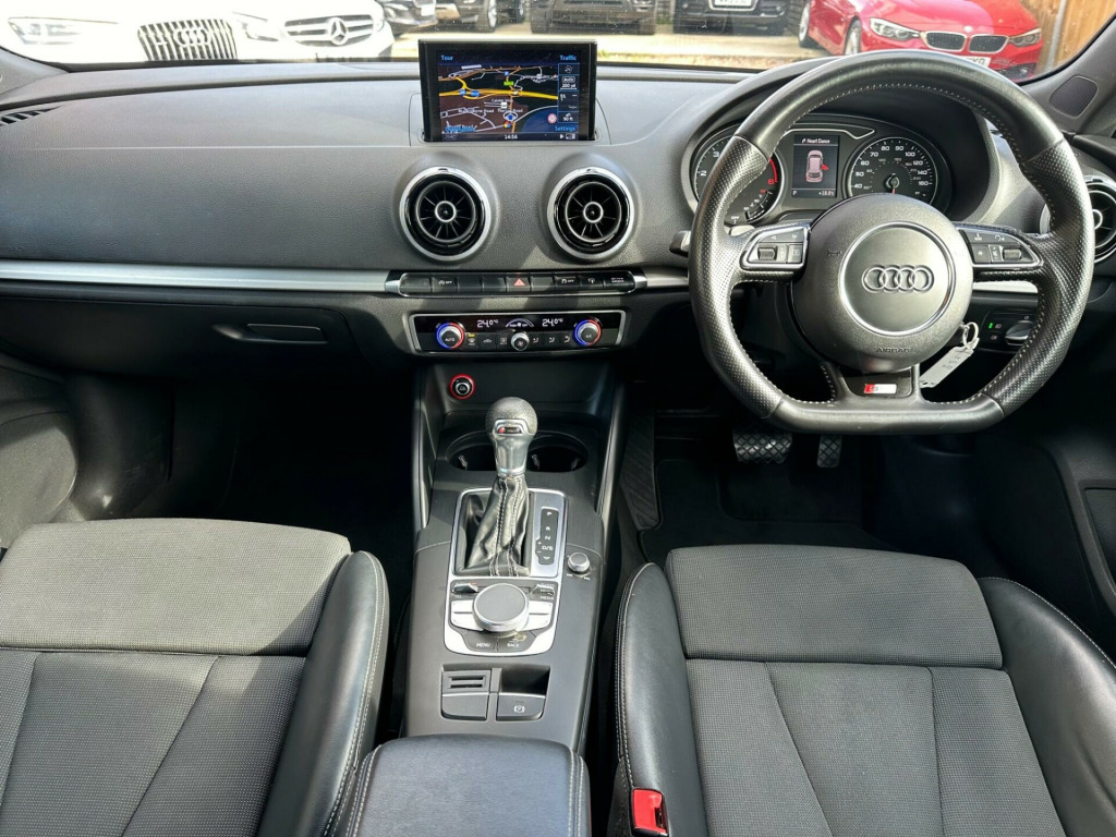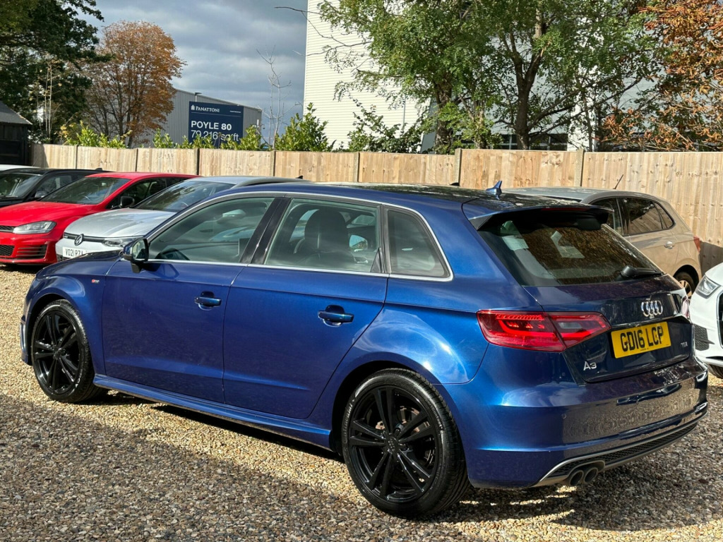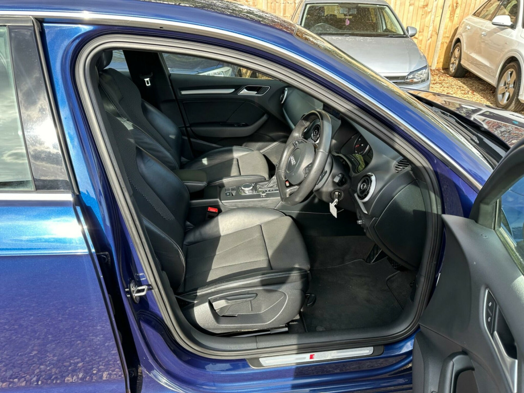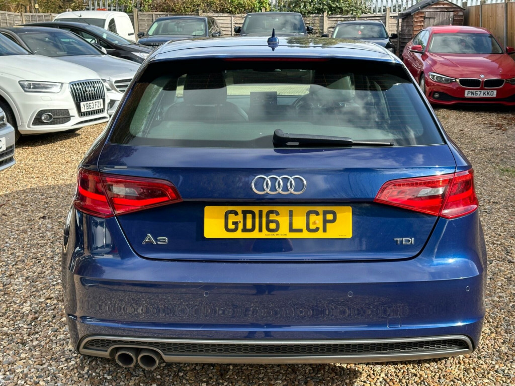 BY APPOINTMENTS ONLY - OPEN 7 DAYS A WEEK INC. BANK HOLIDAYS. “”Free 12months basic AA breakdown cover Audi A3 TDI S line from 2016 boasts a clear vehicle history, offering you peace of mind. This stylish model features a powerful 2.0 litre Euro 6 diesel engine, ensuring efficient performance. Inside, you'll find a host of convenient features including dual zone electronic climate control for personalised comfort, and mobile telephone preparation with a Bluetooth interface for seamless connectivity. The Bi-Xenon Plus headlights provide excellent visibility, and the integrated full European map data makes navigating any journey effortless.The large boot space in this A3 TDI S line is a significant advantage, offering ample room for luggage or shopping. Its impressive acceleration, reaching 0-62mph in just 8.3 seconds, demonstrates its dynamic capability. These highlights, combined with the S line trim, indicate a superior driving experience compared to other vehicles in its class, making this Audi A3 a compelling choice for those seeking both practicality and performance.. 12V Power Socket - Centre Console, 12V Power Socket - Rear, 18in Alloy Wheels - 5-Parallel Spoke Design Partly Polished, 2 x SDXC Card Readers, ABS - Anti-Lock Braking System, AMI - Audi Music Interface, ASR - Anti Slip Regulation, Adaptive Brake Lights, Airbags - Driver, Airbags - Drivers Knee, Airbags - Front Passenger, Airbags - Front Side, Airbags - Head Level Side For Front and Rear, Alarm - Thatcham Category 1, Aluminium Interior Elements, Anti Theft Locking Wheel Bolts, Audi Drive Select, Audio Output - 80 Watts, Car Jack, Child Locks - Manual, Cloth Headlining in Black, Coat Hooks - B Pillar - Both Sides, Colour Drivers Information System - DIS, Cup Holders - x2 in Centre Console, DAB Digital Radio, Display Screen Colour - 5.8in, Door Mirrors - Body Coloured with Integrated LED Indicators, Door Mirrors - Electrically Adjustable and Heated, Door Sill Trims with S Line Logo, Dual-Zone Electronic Climate Control, EBD - Electronic Brakeforce Distribution, EDL - Electronic Differential Lock, ESP - Electronic Stability Programme, Electric Windows - Front and Rear, Electromechanical Parking Brake, Electromechanical Power Steering, Exhaust Tailpipe - Twin, First Aid Kit, Fog Lights - High Gloss Black Surrounds, Front Centre Armrest, Front Fog Lights, Front Passenger Airbag Deactivation Switch, Front Sports Seats, Front and Rear Floor Mats, Full European Map Data, Gear Knob - Perforated Leather, Glovebox - Illuminated, Headlights - Automatic Dynamic Range Control, Headlights - Bi-Xenon Plus, Headlights Washers, Heated Rear Windscreen, Heated Windscreen Washer Jets, Height Adjustable Boot Floor, Hydraulic Brake Assist, ISOFIX Child Seat Mounting for Front Passenger and Rear Outer Seats, Illuminated Vanity Mirrors, Immobiliser, Inlays - Matt Brushed Aluminium, Interior Elements - Air Vents - Aluminium, Interior Elements - Frame Around the Inside Door Handle - Aluminium, Interior Elements - Glove Compartment - Aluminium, Interior Elements - Window Control Switches - Aluminium, Interior Lighting, LED Daytime Running Lights, LED Rear Indicators, LED Rear Lights, Luggage Compartment - Illuminated, Luggage Compartment - Lashing Points x4, Luggage Compartment - Side Net, MMI Radio, Mobile Telephone Preparation - Bluetooth Interface, Model and Engine Technology Badges at Rear, Pollen Filter, Radiator Grille - High Gloss Black, Rear Parcel Shelf Removable, Remote Central Locking with 2 Fold Away Keys, Rest Recommendation System, S Line Badges on Front Wings, S Line Body Styling, S line Design Front Bumper-Rear Diffuser-Side Sills and Roof Spoiler, Satellite Navigation System - SD Card Based, Seat Belt Reminder for All Seats, Seats - Adjustment for Cushion Depth, Seats - Extendable Thigh Support, Seats - Front Height Adjustment, Seats - Split Folding Rear - 60-40, Secondary Collision Brake Assist, Smoking Package, Space Saver Spare Wheel, Speakers x8, Sport Suspension, Steering Wheel - 3-Spoke Leather-Flat Bottomed-Shift Paddles, Steering Wheel - Gear Shift Paddles, Steering Wheel - Height and Reach Adjustable, Steering Wheel - Multi-function, Storage Compartment - Centre Console, Storage Compartment Under Rear Seat, Storage Compartments - Door Side Trims, Storage Net in Front Passenger Footwell and Front Seat Backrests, Storage and Luggage Package, Sun Visors - with Covered Vanity Mirrors, Tool Kit, Tyre Pressure Monitoring System, USB Connection, Voice Control, Voice Control - Navigation, Warning Triangle, Washer Fluid Level Indicator, Window Surrounds - Aluminium. Full service history