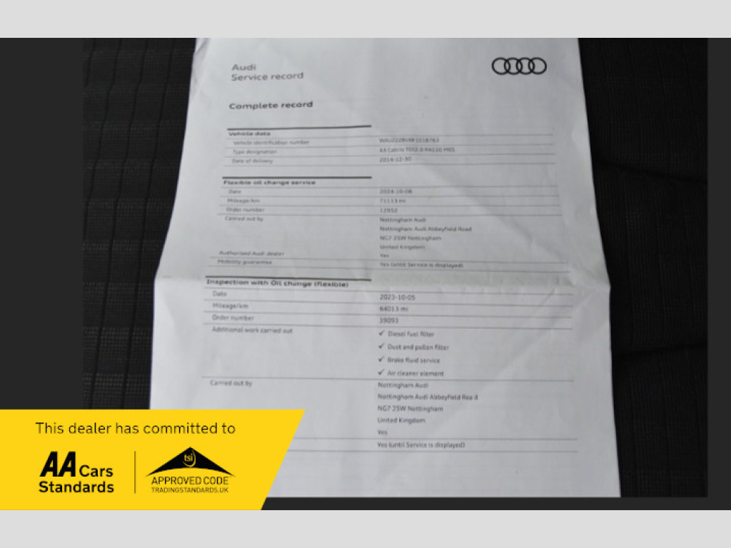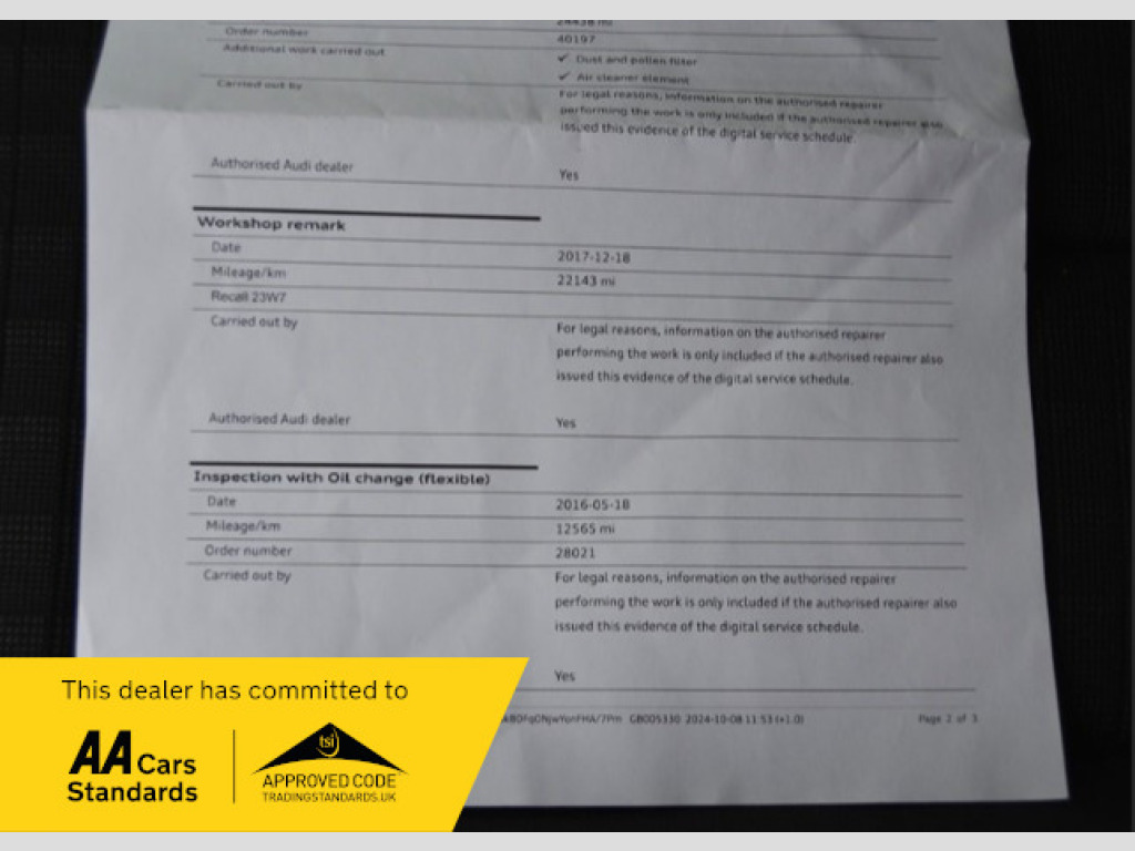 ABSOLUTELY IMMACULATE CAR WITH AUDI SERVICE HISTORY MUST BE SEEN!! All come with a 3 month warranty and 12 months AA breakdown cover ABS, Adjustable Steering, Air Conditioning, Alarm, Alloy Wheels, Bluetooth, Body Coloured Bumpers, Central Locking, Climate Control, Daytime Running Lights, ESP, Electric Folding Mirrors, Electric Mirrors, Electric Windows, Engine Immobiliser, Folding Rear Seats, Front Fog Lights, Full Service History, ISOFix Anchor Point, Keyless Door Locks, LED Lights, MOT, Parking Sensors, Power Assisted Steering, Privacy/Tinted Glass, Radio, Speakers, Sports Seats, Sports Suspension, Start Stop System, Steering Wheel Controls, Traction Control, V5 Registration Document