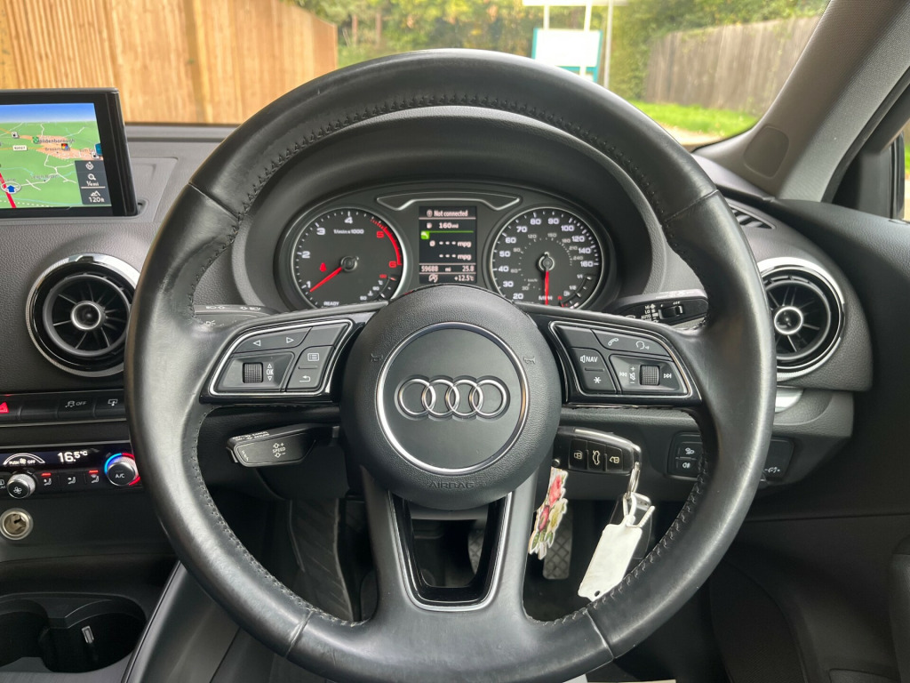 We are happy to offer for sale this Excellent Audi A3 Sport Finished in Shimmering Silver Metallic with Patterned Anthracite Upholstery. This vehicle offers a great specification including Satellite Navigation, Performance Control, Telephone Connectivity, Voice Commands, Adaptive Cruise Control, and Climate Control. This vehicle has vehicle has been maintained in great condition by its previous keepers and drives without fault. We have the original 2 Keys, Book Pack and Service History. In addition this vehicle will be sold with the benefit of a full 12 months Advisory Free MOT and 6 months Power Train Warranty. Not to be missed call us now on 01732 835520 to book a viewing and test drive or read on to find out more about us at Brookside..The Brookside Group is a long established family business with a great reputation and we operate in a relaxed and friendly manner with no pressure whatsoever. For complete peace of mind all our vehicles have a new MOT, a full HPI report and a comprehensive warranty. We have no hidden fees. Please read our five star reviews. This vehicle will be supplied with a six months parts and labour warranty which can be extended to one or two years at extra cost. Competitive finance is available subject to status. We are authorised and regulated by the FCA. FCA number 665382. Part exchange is welcome. To arrange a viewing on this vehicle please call us on 01732 835520 or use the email booking facility in alloy wheels - 5-arm design, aluminium window trims, anti theft locking wheel bolts, body coloured door mirrors, chrome-plated exhaust tailpipe trim, door mirrors - electrically adjustable and heated, electric windows - front, radiator grille - matt black, roof spoiler - painted in body colour with aerodynamic inserts in high-gloss black at the side, space saver spare wheel, sport side air inlet grille and diffuser insert, 2 x usb charging ports and 1 x aux-in, 8 passive speakers, audi connect infotainment services - 3 month trial, audi smartphone interface, bluetooth interface, cd drive, dab digital radio, mmi navigation - sd card based, mmi radio plus with 7in electrically retractable colour mmi screen, 6-airbag system with knee airbag for driver, anti-theft alarm, esc - electronic stabilisation control inc abs - asr and edl, electromechanical parking brake, first aid kit, isofix child seat mounting and top tether for front passenger and outer rear seats, immobiliser, remote central locking with 2 fold away keys, seat belt monitoring, warning triangle, aluminium interior elements, door sill trims with aluminium inlay, dual-zone electronic climate control, front centre armrest, front and rear floor mats, inlays - aluminium mistral silver, interior lighting, luggage compartment - lashing points x4, manual front seat adjustment, non-smoking package, pollen filter, seats - split folding rear - 60-40, steering wheel - 3-spoke leather - multi-function - sports, storage compartments in the door side trims-centre console-under drivers seat, tool kit and car jack, audi drive select, colour drivers information system - dis, cruise control, dynamic suspension, electromechanical power steering, tyre pressure monitoring system, voice control, light and rain sensor, xenon headlights with led daytime running lights
