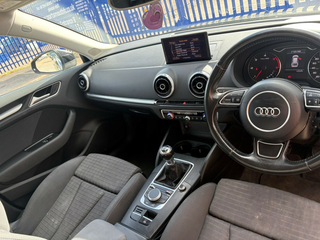 This 2014 Audi A3 2.0 TDI Sport Sportback 5dr Diesel Manual Euro 5 (s/s) (150 ps) is a reliable and fuel-efficient hatchback with a mileage of 131,286 miles. It comes with a valid MOT until 12/03/2026, making it ready for the road. This car features 5 seats and 5 doors, providing ample space for passengers and cargo. Equipped with a 2.0 TDI diesel engine, it offers a smooth and powerful driving experience. The interior includes modern amenities such as a 5.8-inch color display screen, DAB digital radio, AMI (Audi Music Interface), and MMI radio. Additionally, it has a 12V power socket in the center console for added convenience. With its sleek design and efficient performance, this Audi A3 is a practical and stylish choice for anyone in the market for a dependable hatchback. v power socket - centre console, ami - audi music interface, dab digital radio, display screen colour - 5.8in, mmi radio, mobile telephone preparation - bluetooth interface, preparation for sd card-based navigation system, sdhc card reader x2, speakers x8, usb connection, 17in alloy wheels - 5-arm design, anti theft locking wheel bolts, chrome-plated exhaust tailpipe trim, door mirrors - body coloured with integrated led indicators, door mirrors - electrically adjustable and heated, electric windows - front and rear, exhaust tailpipe - chrome plated, exhaust tailpipe - twin, fog lights - chrome surrounds, heated rear windscreen, heated windscreen washer jets, roof spoiler - painted in body colour with aerodynamic inserts in high-gloss black at the side, space saver spare wheel, spoiler - body coloured, spoiler - roof, window surrounds - aluminium, abs - anti-lock braking system, asr - anti slip regulation, active bonnet, adaptive brake lights, airbags - driver, airbags - drivers knee, airbags - front passenger, airbags - front side, airbags - head level side for front and rear, alarm - thatcham category 1, child locks - manual, ebd - electronic brakeforce distribution, esp - electronic stability programme, electromechanical parking brake, first aid kit, front passenger airbag deactivation switch, hydraulic brake assist, isofix child seat mounting for front passenger and rear outer seats, multi collision brake assist, remote central locking with 2 fold away keys, seat belt reminder for all seats, secondary collision brake assist, warning triangle, air vent sleeves - aluminium look, aluminium interior elements, car jack, cloth headlining, coat hooks - b pillar - both sides, cup holders - rear x2, cup holders - x2 in centre console, door sill trims, dual-zone electronic climate control, front centre armrest, front sports seats, front and rear floor mats, height adjustable boot floor, inlays - aluminium mistral, interior lighting, luggage compartment - lashing points x4, rear parcel shelf removable, seats - convenience entry - enhanced front folding function, seats - front height adjustment, seats - split folding rear - 60-40, smoking package, steering wheel - 3-spoke leather - multi-function - sports, steering wheel - height and reach adjustable, steering wheel - multi-function, storage compartments in the door side trims-centre console-under front passenger seat, sun visors - with covered vanity mirrors, tool kit, audi drive select, colour drivers information system - dis, edl - electronic differential lock, electromechanical power steering, rest recommendation system, sport suspension, voice control - navigation, washer fluid level indicator, daytime running lights, front fog lights, halogen headlights