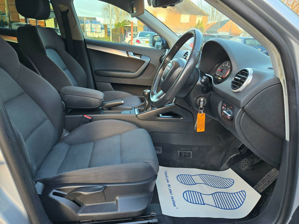 This 2010 Audi A3 TDI Sport. This particular model, with its 2.0 litre diesel engine and Sport trim, is designed for those who appreciate both economy and a dynamic driving experience. It features a generous boot space, making it practical for everyday use, heated seats, aftermarket touch screen radio fitted, aftermarket reversing camera also fitted, 2 keys, No service history with this as it's come in as a part ex, however a rather decent part ex, Only £35 Road tax, clean for the age, exterior some scuffs which can be seen in the photos, drives fine, any viewings welcome, test drives available, we accept debit cards, cash & bank transfer., in 5 arm kinetic design alloy wheels, 17in 5spoke star design alloy wheels, ashtray, auxiliary input socket, cigarette lighter, concert radio & single cd player with mp3 facility, deletion of model & engine designation at rear, front&rear floor mats, manual headlight levelling, medial aluminium inlay, non smoking pack, sports suspension