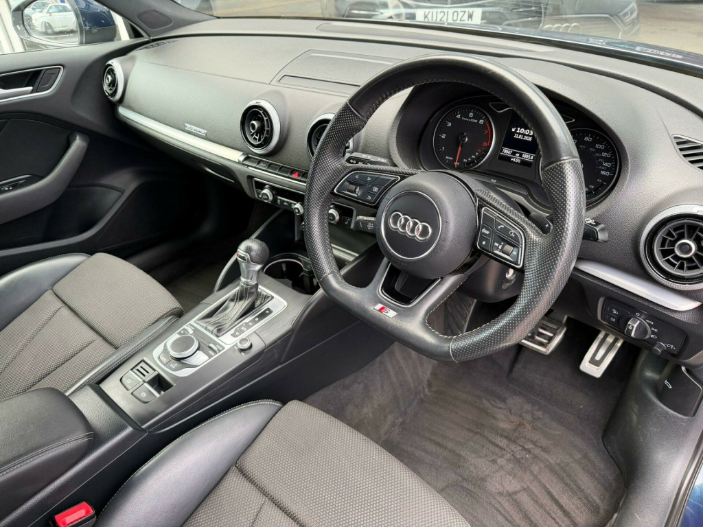 This 2019 Audi A3 TFSI S line boasts a clear vehicle history, ensuring peace of mind for its next owner. This particular model is a Euro 6 compliant, four wheel drive variant, powered by a responsive 2.0 litre petrol engine. You can expect 12 months MOT to be provided on purchase, further adding to its excellent provenance. Inside, you'll find a host of notable features designed for comfort and convenience, including Audi Connect, manual seat adjustment, Hill Hold Assist, a voice control system, and the impressive Audi Sound System.Experience exhilarating performance with this Audi A3, capable of accelerating from 0 to 62 miles per hour in just 6.2 seconds, a figure that sets it apart from many other vehicles in its class. This impressive acceleration is complemented by a generous boot space, offering practicality for all your needs. The combination of its dynamic capabilities, advanced technology, and ample storage makes this A3 a compelling choice for those seeking a refined and capable driving experience.. 18in Alloy Wheels - 5-Parallel Spoke Design with Diamond Cut Finish, 2 x USB Charging Ports and 1 x AUX-IN, 6-Airbag System with Knee Airbag for Driver, Aluminium Interior Elements, Aluminium Window Trims, Anti Theft Locking Wheel Bolts, Anti-Theft Alarm, Audi Connect, Audi Connect Infotainment Services - 3 Month Trial, Audi Drive Select, Audi Smartphone Interface, Audi Sound System, Auto-Dimming Rear-View Mirror with Light and Rain Sensor, Bluetooth Interface, Body Coloured Door Mirrors, CD Drive, Chrome-Plated Exhaust Tailpipe Trim, Cloth Headlining in Black, Colour Drivers Information System - DIS, Cruise Control, DAB Digital Radio, Door Mirrors - Electrically Adjustable and Heated with Integrated LED Side Indicators, Dual-Zone Electronic Climate Control, ESC - Electronic Stabilisation Control inc ABS - ASR and EDL, Electric Windows - Front and Rear, Electromechanical Parking Brake, Electromechanical Power Steering, First Aid Kit and Warning Triangle, Front Centre Armrest, Front and Rear Floor Mats, Heated Windscreen Washer Jets, Hill Hold Assist, ISOFIX Child Seat Mounting and Top Tether, Illuminated Door Sill Trims with S Logo, Inlays - Matt Brushed Aluminium, LED Headlights with LED Rear Lights and Dynamic Rear Indicators, LED Interior Light Package, Lashing Points in Luggage Compartment, MMI Navigation - SD Card Based, MMI Radio Plus with 7in Electrically Retractable Colour MMI Screen, Manual Seat Adjustment, Non-Smoking Package, Pedals in Stainless Steel, Rear Parking Sensors, Remote Central Locking with 2 Fold Away Keys, S Line Badges on the Front Wings, S Line Design Body Styling, Seat Belt Monitoring, Split Folding Rear Seat Bench - 60-40 or Fully, Sport Suspension, Steering Wheel - 3-Spoke Leather-Multifunction-Flat Bottomed-Shift Paddles, Storage Compartments in the Door Side Trims-Centre Console-Under Drivers Seat, Storage Package, Tool Kit, Tyre Pressure Warning Light, Tyre Repair Kit, Voice Control System, Space Saver Spare Wheel, Tool Kit and Car Jack.