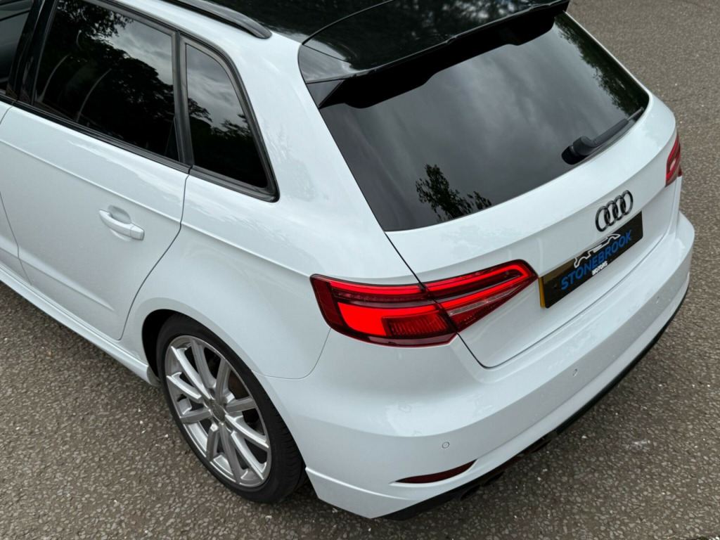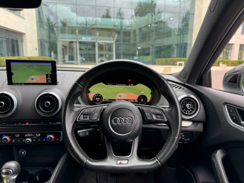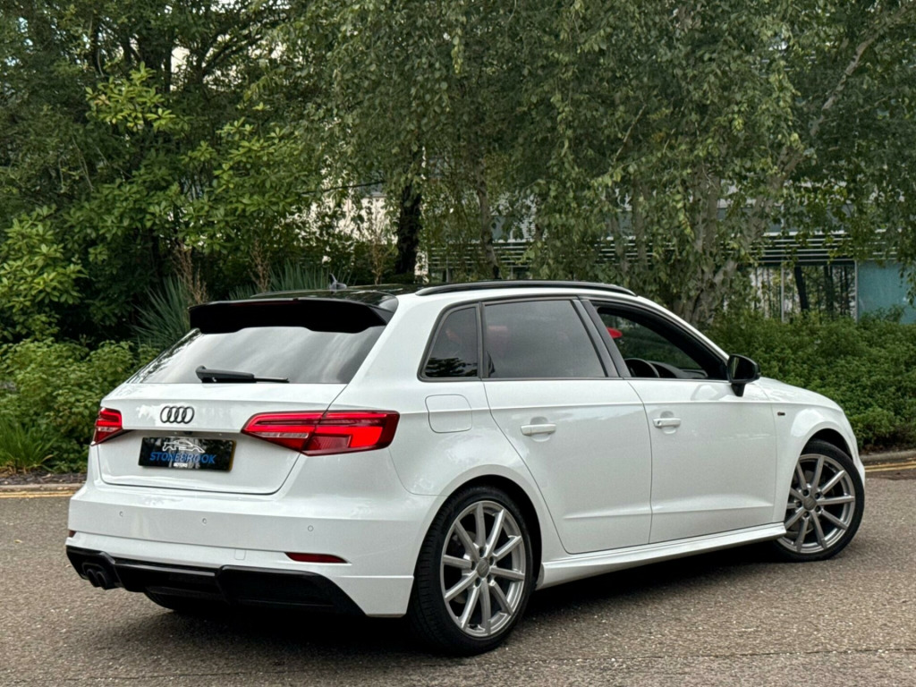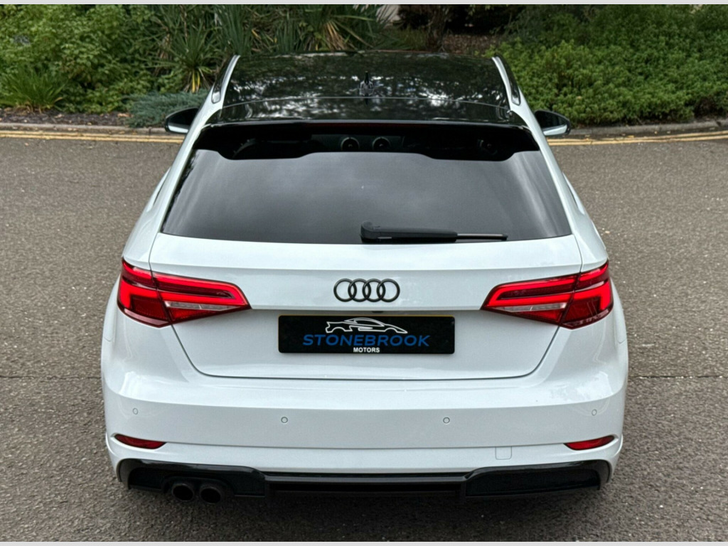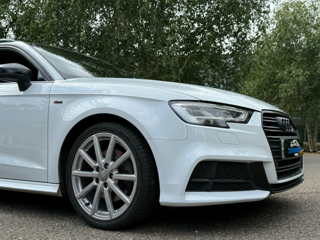 2017 Audi A3 2.0 TFSI Black Edition S tronic - 76,500 miles - £13,489This 2017 Audi A3  2.0 TFSI S line is a sharp, premium four-door that combines sleek styling, advanced tech, and refined performance. Finished in White with the sought-after Black Edition trim, Virtual Cockpit, and Apple CarPlay, this is a superb example of Audi's compact executive hatchback.Under the bonnet is a 2.0-litre TFSI petrol engine producing 150 PS, paired with the smooth and responsive S tronic automatic gearbox, delivering a perfect balance of performance and fuel efficiency  and it's ULEZ compliant.Spec highlights include:•Black Edition Styling Pack (Sportier bumpers, side skirts, badging)•Audi Virtual Cockpit (12.3'' Customisable Digital Display)        •     Bang & Olufsen Sound System        •     Heated Seats•Apple CarPlay & Android Auto        •     Folding Mirrors        •     Keyless Start & Entry        •     Rear View Camera        •     Black Roof Rails•MMI Navigation Plus with Touchpad Interface•S line Sports Seats with Embossed Logo & Part-Leather Trim•LED Headlights with LED Daytime Running Lights•Rear Parking Sensors•Cruise Control with Speed Limiter•Audi Drive Select (Comfort, Auto, Dynamic, Efficiency)•Dual-Zone Climate Control•Bluetooth with Audio Streaming & Voice Control•Flat-Bottom Leather Multifunction Steering Wheel•18''  Black Edition Alloy Wheels (original)Stylish, well-equipped and sporty, this A3  delivers premium Audi feel in a compact, efficient, and ULEZ-compliant package  perfect for commuting, long journeys, or professional use. di phone box with wireless charging, bang and olufsen sound system, rear parking sensors, rear-view camera, black roof rails, door mirrors - heated-electrically adjustable-folding, comfort and sound package, heated front seats, technology package, leather-alcantara - s embossed sports seats - black with rock grey stitching, headlights washers, 18in alloy wheels - 10-spoke design matt titanium look with diamond cut finish, 2 x usb charging ports and 1 x aux-in, 6-airbag system with knee airbag for driver, 8 passive speakers, aluminium interior elements, anti theft locking wheel bolts, anti-theft alarm, audi connect infotainment services - 3 month trial, audi drive select, audi smartphone interface, audi sound system, black styling package, bluetooth interface, cd drive, chrome-plated exhaust tailpipe trim, cloth headlining in black, colour drivers information system - dis, cruise control, dab digital radio, door mirrors - black housing, door mirrors - electrically adjustable and heated, dual-zone electronic climate control, esc - electronic stabilisation control inc abs - asr and edl, electric windows - front and rear, electromechanical parking brake, electromechanical power steering, first aid kit, front centre armrest, front and rear floor mats, isofix child seat mounting and top tether for front passenger and outer rear seats, illuminated door sill trims with s logo, immobiliser, inlays - matt brushed aluminium, led headlights with led rear lights and dynamic rear indicators, led interior light package, light and rain sensor, luggage compartment - lashing points x4, mmi navigation - sd card based, mmi radio plus with 7in electrically retractable colour mmi screen, manual front seat adjustment, non-smoking package, pedals in stainless steel, pollen filter, privacy glass, remote central locking with 2 fold away keys, s line design body styling, s line roof spoiler, seat belt monitoring, seats - split folding rear - 60-40, space saver spare wheel, sport suspension, steering wheel - 3-spoke leather-multifunction-flat bottomed-shift paddles, storage compartments in the door side trims-centre console-under drivers seat, storage package, tool kit and car jack, tyre pressure monitoring system, voice control, warning triangle