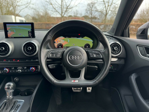 2017 Audi A3 2.0 TFSI Black Edition S tronic - 60,000 miles - £16189This 2017 Audi A3 2.0 TFSI S line is a sharp, premium four-door that combines sleek styling, advanced tech, and refined performance. Finished in grey with the sought-after Black Edition trim, Virtual Cockpit, and Apple CarPlay, this is a superb example of Audi's compact executive hatchback.Under the bonnet is a 2.0-litre TFSI petrol engine producing, paired with the smooth and responsive S tronic automatic gearbox, delivering a perfect balance of performance and fuel efficiency and it's ULEZ compliant.Spec highlights include:•Black Edition Styling Pack (Sportier bumpers, side skirts, badging)•Audi Virtual Cockpit (12.3'' Customisable Digital Display) • Bang & Olufsen Sound System • Rear view Camera • Heated seats•Apple CarPlay & Android Auto•MMI Navigation Plus with Touchpad Interface•S line Sports Seats with Embossed Logo & Part-Leather Trim•LED Headlights with LED Daytime Running Lights•Rear Parking Sensors•Cruise Control with Speed Limiter•Audi Drive Select (Comfort, Auto, Dynamic, Efficiency)•Dual-Zone Climate Control•Bluetooth with Audio Streaming & Voice Control•Flat-Bottom Leather Multifunction Steering Wheel•18'' Black Edition Alloy Wheels (original)Stylish, well-equipped and sporty, this A3 delivers premium Audi feel in a compact, efficient, and ULEZ-compliant package perfect for commuting, long journeys, or professional use. di phone box with wireless charging, audi side assist, park assist, rear-view camera, technology pack, bang and olufsen sound system, technology package - advanced, door mirrors - heated-electrically adjustable-folding-auto-dimming, door mirrors - heated-electrically adjustable-folding, comfort and sound package, heated front seats, seats - split folding rear - 40-20-40, technology package, audi hill hold assist, pre-sense basic, dynamic suspension, s line sports suspension, 18in alloy wheels - 10-spoke design matt titanium look with diamond cut finish, 2 x usb charging ports and 1 x aux-in, 6-airbag system with knee airbag for driver, 8 passive speakers, aluminium interior elements, anti theft locking wheel bolts, anti-theft alarm, audi connect infotainment services - 3 month trial, audi drive select, audi smartphone interface, audi sound system, black styling package, bluetooth interface, cd drive, chrome-plated exhaust tailpipe trim, cloth headlining in black, colour drivers information system - dis, cruise control, dab digital radio, door mirrors - black housing, door mirrors - electrically adjustable and heated, dual-zone electronic climate control, esc - electronic stabilisation control inc abs - asr and edl, electric windows - front and rear, electromechanical parking brake, electromechanical power steering, first aid kit, front centre armrest, front and rear floor mats, isofix child seat mounting and top tether for front passenger and outer rear seats, illuminated door sill trims with s logo, immobiliser, inlays - matt brushed aluminium, led headlights with led rear lights and dynamic rear indicators, led interior light package, light and rain sensor, luggage compartment - lashing points x4, mmi navigation - sd card based, mmi radio plus with 7in electrically retractable colour mmi screen, manual front seat adjustment, non-smoking package, pedals in stainless steel, pollen filter, privacy glass, remote central locking with 2 fold away keys, s line design body styling, s line roof spoiler, seat belt monitoring, seats - split folding rear - 60-40, space saver spare wheel, sport suspension, steering wheel - 3-spoke leather-multifunction-flat bottomed-shift paddles, storage compartments in the door side trims-centre console-under drivers seat, storage package, tool kit and car jack, tyre pressure monitoring system, voice control, warning triangle