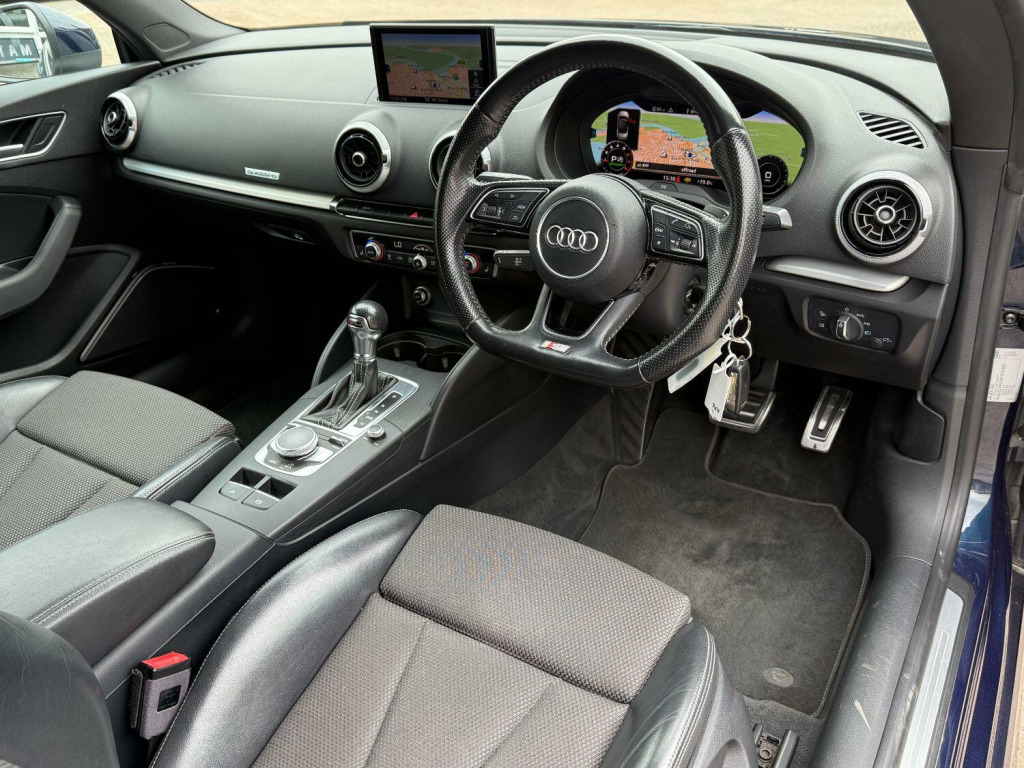 This stunning Audi A3 S Line Quattro Convertible is available from MATS Garage, a family owned used car dealership in Goole, East Yorkshire. Here at MATS Garage, we pride ourselves on the quality of our used cars which are all MOTd, serviced and prepared in-house at our workshop with over 100 years combined mechanical experience. MATS Garage has an on-site full time professional detailer as well, meaning all the cars we offer are mechanically sound and also look fantastic inside and outside. All our vehicles come with; 12 months MOT, service as required, HPI check, approved vehicle inspection and 3 months comprehensive in-house warranty. There is also the option to purchase a 12 month warranty, available from £300. We put our customers first, from the initial enquiries (no question is ever too small!), to our no pressure test drives and through to our after-sales service too. We offer finance (subject to status) and part exchange if required, please get in touch for more details. MATS Garage is located in the centre of Goole, a 1 minute walk away from the train station, or 5 minutes from Junction 36 of the M62. You can ask any questions, sort any paperwork etc either online, over the phone, or in person - whichever way you prefer. The gorgeous blue A3 Convertible was registered in 2017, has a mileage of 126,285 backed up with a full Audi Specialist service history. Beautiful inside & outside, it comes with 2 keys, heated seats, virtual dash, power roof, parking sensors, cruise control, bluetooth, air conditioning, and much more. Cars can be reserved from £200, and we accept BACS, all major credit/debit cards, or finance options are available if required. , Audi A3 S Line Quattro. , , Convertible With Power Roof. , 2017. , One Owner From New. , 2.0 Petrol. , Automatic With Paddles. , 126,285 Miles. , Full Audi Specialist Service History. , 2 Keys. , Sat Nav. , Virtual Dash. , Heated Seats. , Power Roof. , B & O Speaker Upgrade, , Wind Deflector, , Cruise Control. , Rear Parking Sensors. , DAB. , Bluetooth. , Finance Available - Ring For Best Prices. , Will Come With : - Service - 12 Months MOT - 3 Months Warranty. , 12 Months Warranty Available From £300. , We are located in Goole, East Yorkshire, DN14 5BS. , Easy access from M62, Junction 36. , Phone Mat on 01405 780935 or 07753 959899. , Full List of Cars For Sale at www.matsgarage.co.uk