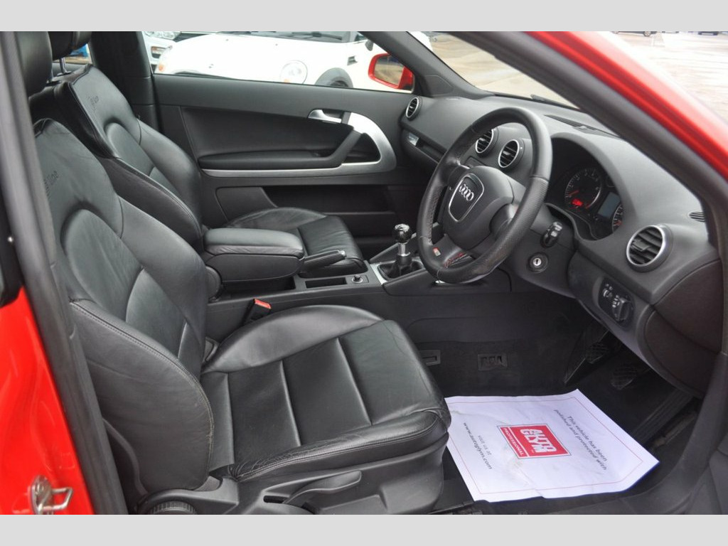 2013 AUDI A3 2.0 TFSI S-Line Hatchback 3 Door Petrol Manual Quattro - Finished In Stunning Brilliant Red Paint - S-Line Black Leather Interior - New MOT expires September 2026 - Documented service history - Alloy wheels - Electric windows - Audi RDS Radio - Cruise Control - Fully adjustable seats - Electric side mirrors - Leather Arm rest with storage - ISOFIX And More! Vienna Leather (Black), Cherry Red, Brilliant Red, A3 Exclusive Line Package, Audi Exclusive Inlays, Three Spoke Multi Function, Alloy Wheels - 7.5Jx17in 5 Spoke Design, Front Centre Armrest, Cruise Control, Audi Exclusive Leather Steering Wheel Tr, Audi Exclusive Aluminium Gear Lever, Audi Symphony II Radio/Cass/CD Changer, Exclusive Leather Trim (Fine Nappa), Adjustable Steering Column/Wheel, Air Bag Driver, Air Bag Passenger, Air Bag Side, Alarm, Alloy Wheels (18in), Anti-Lock Brakes, Body Coloured Bumpers, Central Door Locking, Centre Rear Seat Belt, Climate Control, Computer (Driver Information System), Electric Windows (Front), Electronic Brake Force Distribution, Electronic Stability