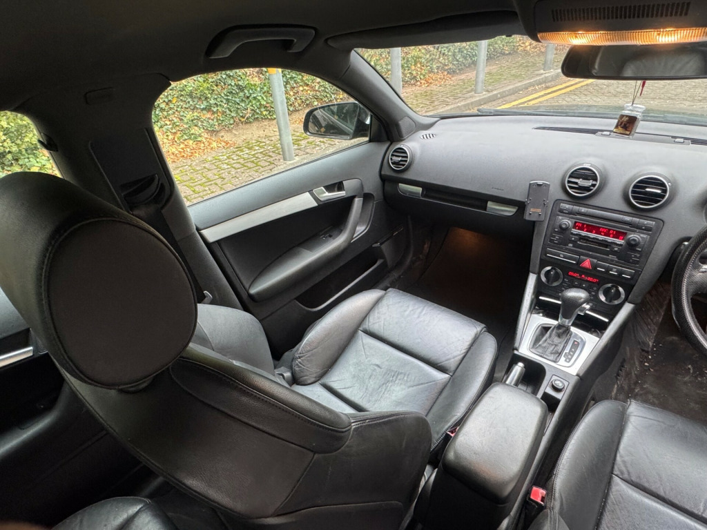 MOT 03/04/2026, CAT S, AUTOMATIC, 3 FORMER KEEPER, FRESH SERVICEFor sale is a 2006 Audi A3 2.0 TFSI S line Special Edition Sportback with 106000 miles on the clock. This hatchback runs on petrol and has an MOT that expires on 04/03/2026. It comes with 5 seats and 5 doors, making it perfect for a family or group of friends. Notably, this vehicle is ULEZ compliant, making it a great choice for city driving. The car also includes adjustable steering column/wheel, climate control, electric windows (front/rear), front sports seats with leather upholstery, and in car entertainment (radio/CD). With 190g/km emissions and 200 bhp, this Audi A3 is a powerful and stylish choice for anyone in the market for a reliable vehicle. justable steering column/wheel, climate control, electric windows (front/rear), front sports seats with leather upholstery, in car entertainment (radio/cd), seat height adjustment, upholstery leather, air bag driver, air bag passenger, air bag side, alarm, anti-lock brakes, central door locking, centre rear seat belt, deadlocks, electronic stability programme, front fog lights, head restraints, immobiliser, power-assisted steering, seat - isofix anchorage point, alloy wheels (18in), body coloured bumpers, mirrors external, spare wheel (space saver), computer (driver information system)