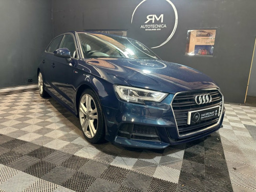 R & M Autotecnica are proud to present this opportunity to purchase a fantastic 2018 Audi A3 S-Line 2.0 TFSI. This has the desirable EURO 6 2.0 Turbocharged petrol engine with a manual gearbox. This is a genuine warranted mileage of only 46500 miles backed up with a comprehensive service history portfolio. Key Features & Specifications: • Cosmos Blue Paint • 2.0 Turbocharged 4-Cylinder Petrol Engine • Dynamic Stability Control (DSC) • Automatic Dimming Rear View Mirror • DAB • Bluetooth Phone Preparation • Climate control • Virtual Cockpit • Rain Sensor • Electric Folding Wing Mirrors • Speed Sensitive Power Steering • Bluetooth Phone Preparation • Voice Control • Leather Multi-Function Steering Wheel • On-Board Trip Computer System • 18" Diamond Cut Alloy Wheels • Rear Parking Sensors • Electric Front and Rear Windows • Electrically Heated Door Mirrors • Remote Central Locking • Front Armrest • Electronic Traction Control • Sun Protection Glass • ISOFIX Child Seat Mounting. Recent routine in house maintenance includes a full service and a full vehicle health check. The car comes with the full V5 registration document, HPi Clear Certificate, has all the original manufacturers handbooks and the locking wheel nut tool. Viewing is highly recommended and ANY inspection is welcome. At R & M Autotecnica we pride ourselves by preparing and testing Cosmos Blue, 18in Alloy Wheels - 10-Spoke Design Matt, 18in Alloy Wheels - 5-Parallel Spoke Des, 2 x USB Charging Ports and 1 x AUX-IN, 6-Airbag System with Knee Airbag for Dri, 8 Passive Speakers, Aluminium Interior Elements, Aluminium Window Trims, Anti Theft Locking Wheel Bolts, Anti-Theft Alarm, Audi Connect Infotainment Services - 3 M, Audi Drive Select, Audi Hill Hold Assist, Audi Smartphone Interface, Auto-Dimming Rear-View Mirror with Light, Bluetooth Interface, Body Coloured Door Mirrors, CD Drive, Chrome-Plated Exhaust Tailpipe Trim, Cloth Headlining in Black, Colour Drivers Information System - DIS, Cruise Control, DAB Digital Radio, Door Mirrors - Electrically Adjustable a, Dual-