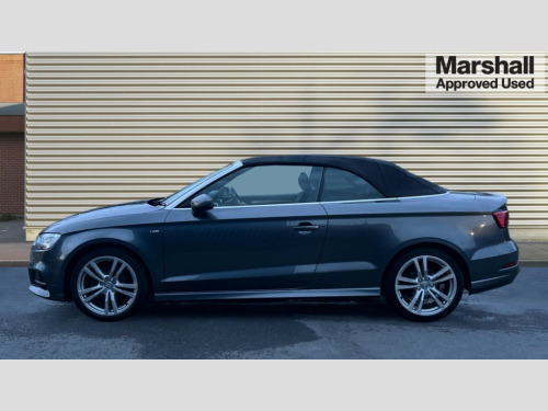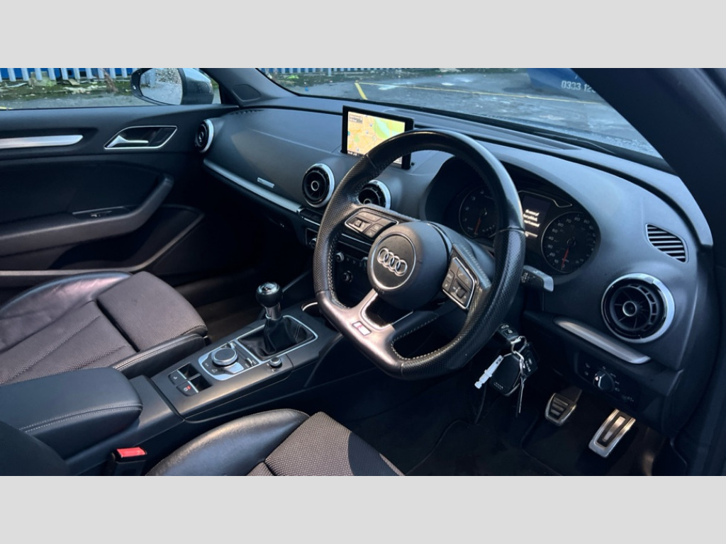 Audi A3 1.4 TFSI S Line 2dr Audi connect, Audi smartphone interface, Bluetooth interface, Colour driver's information system display, Rear parking sensors, Service interval indicator, 2 USB ports, Audi music interface, DAB Digital radio, Aluminium side window trim, Automatic lights and wipers, Body colour bumpers, Body colour door mirrors with integral indicators, Chrome exhaust tailpipes, Electric operated/heated door mirrors, Front and rear electric windows, Fully automatic acoustic hood, Heated rear window, Heated windscreen washer jets, Illuminated door sill inserts, LED daytime running lights, S Line body styling, 2 height adjustable rear headrests, 3 spoke flat bottomed multi-function leather steering wheel, 4 lashing points to secure luggage, 50/50 split folding rear seat, Adjustable front armrest, Driver/passenger sunvisors, Dual zone electronic climate control, Front/rear floor mats, Height adjustable front seats, Height/reach adjustable steering column, Illuminated glovebox, ISOFIX child seat preparation+airbag deactivation, Perforated leather gearknob, Stainless steel pedals, Storage compartment in centre console, Storage compartments in doors, LED interior light pack - A3/RS3, Light and rain sensor pack - A3 Cabriolet, Storage pack - A3 Cabriolet/Saloon, 3 point seatbelts on all seats, ABS/EBD, Active bonnet, Active front headrests, ASR, Automatic roll over protection, Driver and passenger side airbags, Driver/Front Passenger airbags, Drivers knee airbag, EDL, Electromechanical parking brake, ESC - Electronic Stability Control + traction control, Front passenger airbag deactivation, Seatbelt warning, Tyre pressure monitor, Warning triangle and first aid kit, Anti theft alarm, Anti-theft wheel bolts, Immobiliser, Remote control central locking, Aluminium air vent surrounds, Aluminium trim elements, Space saver spare wheel