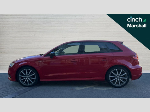Audi A3 1.5 TFSI Black Edition 5dr Audi connect, Audi drive select, Audi smartphone interface, Colour driver's information system display, Electro-mechanical PAS, HDD satellite navigation system radio single CD/DVD player MMI control system, Mobile telephone preparation - bluetooth interface, Service interval indicator, Speed limit display, Voice control system, 2 USB ports, Audi music interface, Audi sound system with 10 loudspeakers, Auxiliary input socket, CD player, DAB Digital radio, MMI radio plus with 7" colour MMI screen and MMI controller, Auto dimming rear view mirror with light and rain sensors, Black door mirrors, Black window surrounds, Body colour bumpers with black insert, Body colour roof spoiler, Chrome exhaust tailpipes, Electric front windows, Electric operated/heated door mirrors, Electric rear windows, Heated windscreen washer jets, LED daytime running lights, Matt black radiator grille, Privacy glass, Rear wiper, S Line body styling, Sport specific side air inlet grille and diffuser insert, 3 adjustable rear headrests, 3 spoke flat bottomed multi-function leather steering wheel, 4 lashing points to secure luggage, Adjustable front armrest, Black cloth headlining, Dual zone electronic climate control, Front and rear interior lights with delay, Front passenger seat isofix location point, Front sports seats, Front/rear floor mats, Height/depth adjustable steering column, Illuminated glovebox, ISOFIX child seat preparation+airbag deactivation, Jack and tool kit, Stainless steel pedals, Storage compartment in centre console, Storage compartment under front seats, Storage compartments in doors, Black styling pack - A3/S3, LED interior light pack - A3/RS3, Non smoking pack - A3, Storage and luggage pack - A3/RS3, 3 point seatbelts on all seats, ABS/EBD, Active bonnet, Active front headrests, ASR, Curtain airbags, Driver and passenger side airbags, Driver/Front Passenger airbags, Drivers knee airbag, EDL, Electromechanical parking brake, ESC - Electronic Stability Control + traction control, Front passenger airbag deactivation, Manual rear child locks, Multi-Collision braking, Seatbelt warning, Tyre pressure warning, Warning triangle and first aid kit, Anti theft alarm, Anti-theft wheel bolts, Remote control central locking, Thatcham category 1 alarm + immobiliser, Aluminium air vent surrounds, Aluminium trim elements, Matt brushed aluminium inlays, 18" 10 spoke design alloy wheels in matt titanium look with diamond cut finish, Space saver spare wheel