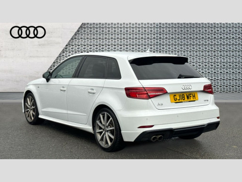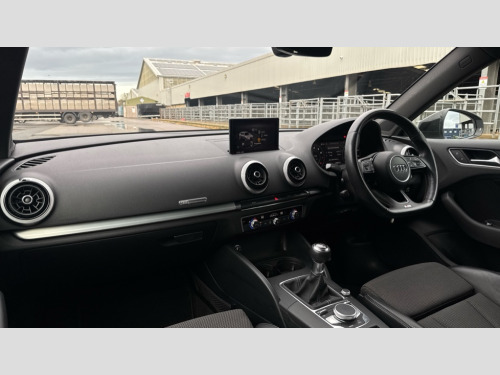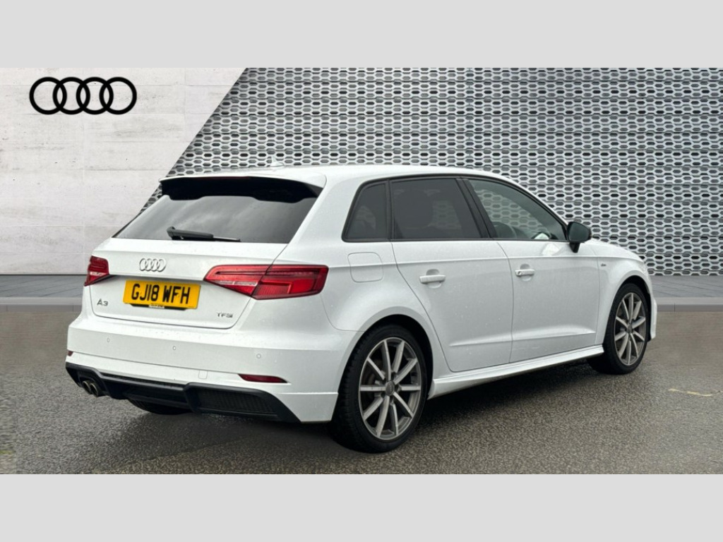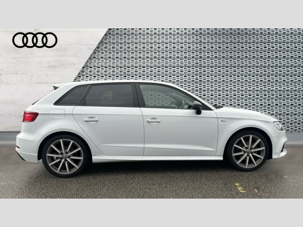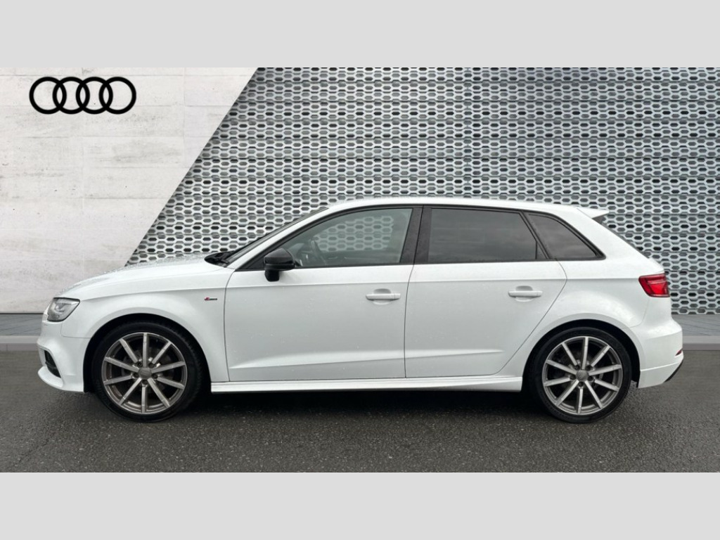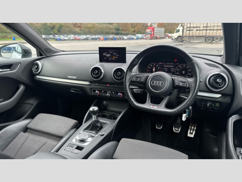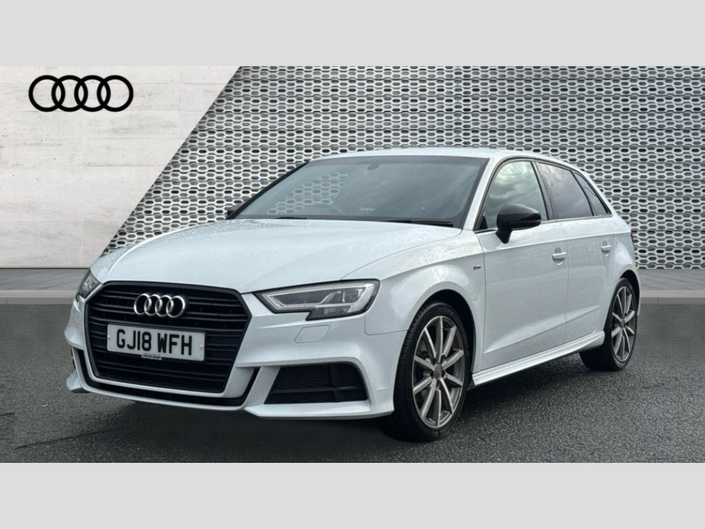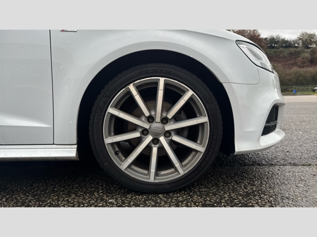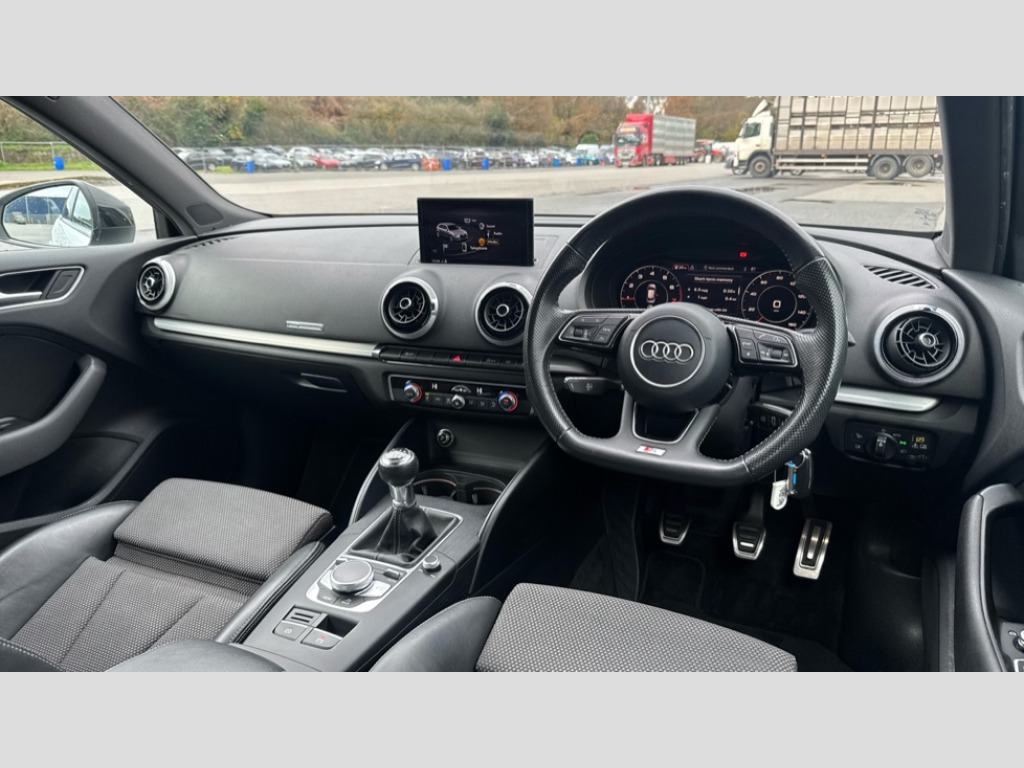 Audi A3 1.5 TFSI Black Edition 5dr Audi connect, Audi drive select, Audi smartphone interface, Colour driver's information system display, Electro-mechanical PAS, HDD satellite navigation system radio single CD/DVD player MMI control system, Mobile telephone preparation - bluetooth interface, Service interval indicator, Speed limit display, Voice control system, 2 USB ports, Audi music interface, Audi sound system with 10 loudspeakers, Auxiliary input socket, CD player, DAB Digital radio, MMI radio plus with 7" colour MMI screen and MMI controller, Auto dimming rear view mirror with light and rain sensors, Black door mirrors, Black window surrounds, Body colour bumpers with black insert, Body colour roof spoiler, Chrome exhaust tailpipes, Electric front windows, Electric operated/heated door mirrors, Electric rear windows, Heated windscreen washer jets, LED daytime running lights, Matt black radiator grille, Privacy glass, Rear wiper, S Line body styling, Sport specific side air inlet grille and diffuser insert, 3 adjustable rear headrests, 3 spoke flat bottomed multi-function leather steering wheel, 4 lashing points to secure luggage, Adjustable front armrest, Black cloth headlining, Dual zone electronic climate control, Front and rear interior lights with delay, Front passenger seat isofix location point, Front sports seats, Front/rear floor mats, Height/depth adjustable steering column, Illuminated glovebox, ISOFIX child seat preparation+airbag deactivation, Jack and tool kit, Stainless steel pedals, Storage compartment in centre console, Storage compartment under front seats, Storage compartments in doors, Black styling pack - A3/S3, LED interior light pack - A3/RS3, Non smoking pack - A3, Storage and luggage pack - A3/RS3, 3 point seatbelts on all seats, ABS/EBD, Active bonnet, Active front headrests, ASR, Curtain airbags, Driver and passenger side airbags, Driver/Front Passenger airbags, Drivers knee airbag, EDL, Electromechanical parking brake, ESC - Electronic Stability Control + traction control, Front passenger airbag deactivation, Manual rear child locks, Multi-Collision braking, Seatbelt warning, Tyre pressure warning, Warning triangle and first aid kit, Anti theft alarm, Anti-theft wheel bolts, Remote control central locking, Thatcham category 1 alarm + immobiliser, Aluminium air vent surrounds, Aluminium trim elements, Matt brushed aluminium inlays, 18" 10 spoke design alloy wheels in matt titanium look with diamond cut finish, Space saver spare wheel