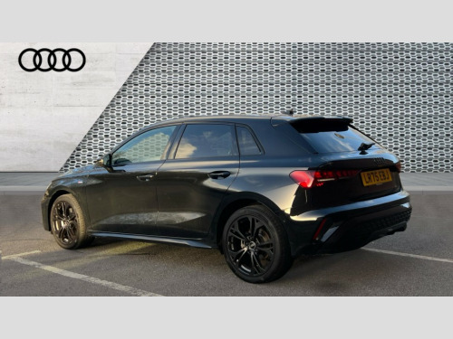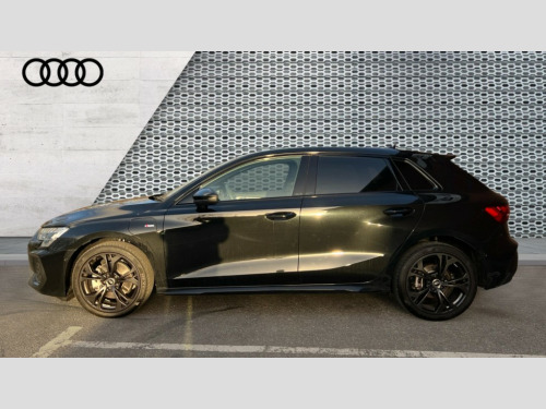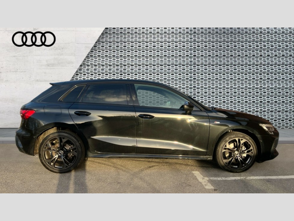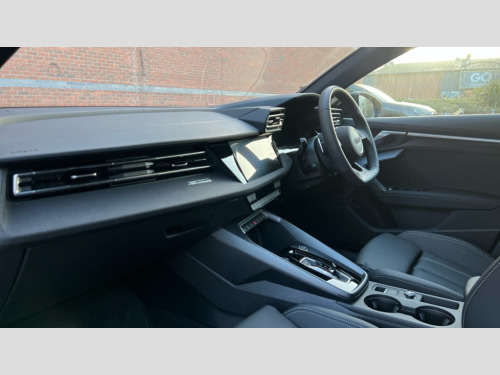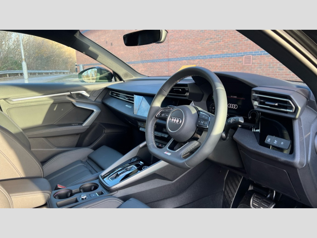 Audi A3 1.5 TFSI e 204 S Line 5dr S Tronic Adaptive cruise control (ACC), Adjustable speed limiter, Audi drive select (Auto, Comfort, Dynamic, Efficiency and Individual), Audi virtual cockpit plus - 12.3" full HD resolution dynamic digital instrument cluster, Automatic start/stop system with recuperation, Bluetooth interface, Camera based traffic sign recognition, Collision avoidance assistant, Driver attention and fatigue detection, e-Call (emergency call), Electromechanical power speed sensitive steering, Emergency assist, Intersection assist, Lane departure warning system, MMI Navigation Plus with high resolution 10.1" colour touch screen display, Park Assist with parking system Plus, Reversing camera, Service indicator, Smartphone interface with app store includes wireless Apple carplay, Android auto and Amazon alexa integration, Trip computer, Voice control system with natural language interaction, 3 pin 10 amp domestic charging cable, CCS socket for DC charging, Charging cable for public charging, mode 3 (type 2), 32 A, Compact charging system, Industrial connector CEE 32 A, 230 V, length 1.6 m, Standard suspension, Type 2 socket for AC charging, Audi Phonebox light with wireless charging, Audi sound system - 10 loudspeakers including centre loudspeaker and subwoofer, DAB Digital radio, USB ports with charging function in the rear, Acoustic glass windscreen, All weather light, Anthracite grey Audi rings (front and rear), Audi beam uses LEDs to project the Audi logo onto the ground as you exit your A3, Auto dimming frameless rear view mirror, Automatic dynamic range control, Black accents front and rear bumpers, Black accents in the area of the Audi single frame grille, Black accents window trims strips, Dipped beam, main beam, position light and turning light, Electrically adjustable/heated/folding/auto dimming door mirrors with integrated LED indications + kerb view function for passenger side, Exterior model badging, Front and rear side air inlets in grained matt black with dark liquid chrome frame, Front electric windows, Front radiator grill in high gloss dark chrome, Heat insulating glass windscreen, Illuminated door sills with aluminium inserts at the front with S logo, Intersection light, LED 3rd brake light, LED brake lights, LED daytime running x3, LED headlights with LED rear lights and dynamic rear indicators, LED rear number plate lights, LED reverse light, LED tail lights, Light and rain sensors, Manoeuvring light, Motorway light, Privacy glass - dark tinted rear window, rear door and side windows, Rear diffuser and grill in grained matt black with inlay in dark liquid chrome, Rear electric windows, Rear side wing doors, Rear wiper, S roof spoiler, Side sill trim in dark liquid chrome, Static cornering light, 12V socket and storage compartment in front centre console, 3 seat bench in 2nd row, 3 spoke flat bottomed leather multifunction sport steering wheel with gear shift paddles, 3-zone deluxe automatic air conditioning, 4 way electrically adjustable lumbar support for driver and front passenger, 40/20/40 split folding rear seat bench, Black cloth headlining, Black front and rear floor mats, Convenience auxiliary air conditioning, Front and rear centre armrest in artificial leather with contrasting stitching on armrests and instrument panel, Front and rear headrests, Heated front seats, Height and reach adjustable steering wheel, i-Size child seat mounting on the front passenger side and outer rear seats, i-Size and top tether on the outer rear seats, Manual boot compartment lid, Manually adjustable front seats, Rear centre armrest with cupholder, S badging on the steering wheel, Seat side bolsters, Single front passenger seat, Stainless steel pedals and front footrest in black, Twin leather upholstery with front sports seats S embossed logo, Aluminium interior elements pack - A3, 3x3 point rear seat belts, Acoustic vehicle alerting system, Driver and front passenger airbag with passenger airbag deactivation, Electronic Stabilisation Control (ESC) including ABS, ASR and EDL, First aid kit with warning triangle and 2 safety vests, Front side airbags with head airbags and interaction airbag, Hill hold assist, Pre-sense front with pedestrian and cyclist detection, Seatbelt monitoring, Tyre pressure loss indicator, Anti theft alarm, Anti-theft wheel bolts, Electronically operated child locks, Immobiliser, Black dashboard, 18" 5 Y twin spoke style alloy wheel in metallic black, Tyre repair kit