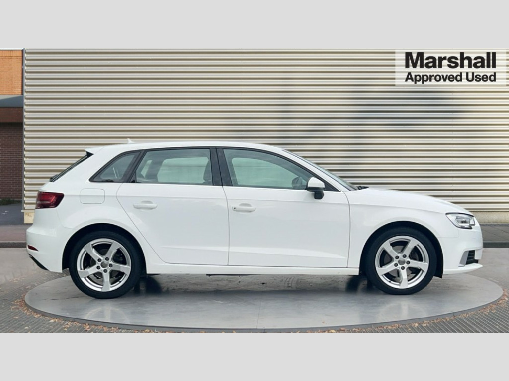 Audi A3 1.5 TFSI Sport 5dr Audi connect, Audi drive select, Audi smartphone interface, Colour driver's information system display, Electro-mechanical PAS, HDD satellite navigation system radio single CD/DVD player MMI control system, Mobile telephone preparation - bluetooth interface, Service interval indicator, Speed limit display, Voice control system, 2 USB ports, Audi music interface, Auxiliary input socket, CD player, DAB Digital radio, MMI radio plus with 7" colour MMI screen and MMI controller, Aluminium window trim, Auto dimming rear view mirror with light and rain sensors, Body colour bumpers, Body colour door mirrors with integral indicators, Body colour roof spoiler, Chrome exhaust tailpipes, Electric front windows, Electric operated/heated door mirrors, Electric rear windows, Heated windscreen washer jets, LED daytime running lights, Matt black radiator grille, Rear wiper, Sport specific side air inlet grille and diffuser insert, Xenon headlights, 3 adjustable rear headrests, 4 lashing points to secure luggage, Adjustable front armrest, Aluminium door sill trims, Dual zone electronic climate control, Front and rear interior lights with delay, Front passenger seat isofix location point, Front sports seats, Front/rear floor mats, Height/depth adjustable steering column, Illuminated glovebox, ISOFIX child seat preparation+airbag deactivation, Jack and tool kit, Rock grey headlining, Storage compartment in centre console, Storage compartment under front seats, Storage compartments in doors, Non smoking pack - A3, 3 point seatbelts on all seats, ABS/EBD, Active bonnet, Active front headrests, ASR, Curtain airbags, Driver and passenger side airbags, Driver/Front Passenger airbags, Drivers knee airbag, EDL, Electromechanical parking brake, ESC - Electronic Stability Control + traction control, Front passenger airbag deactivation, Manual rear child locks, Multi-Collision braking, Seatbelt warning, Tyre pressure warning, Warning triangle and first aid kit, Anti theft alarm, Anti-theft wheel bolts, Remote control central locking, Thatcham category 1 alarm + immobiliser, Aluminium air vent surrounds, Aluminium mistral silver inlay, Aluminium trim elements, 17" 5 Arm design alloy wheels, Space saver spare wheel