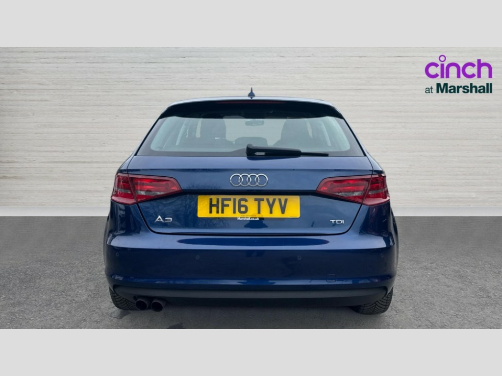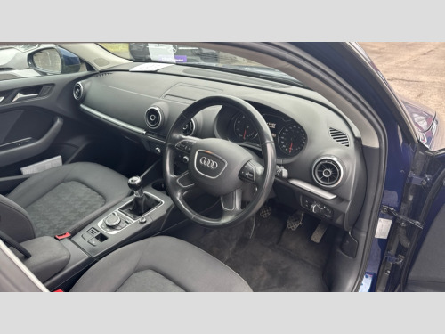 Audi A3 2.0 TDI SE Technik 5dr Colour driver's information system display, Electro-mechanical PAS, Low washer fluid indicator, Service interval indicator, Voice control system, Diesel particulate filter, Audi music interface, DAB Digital radio, Speed dependent audio volume control, Body colour bumpers, Body colour door mirrors with integral indicators, Body colour roof spoiler, Front and rear electric windows, Front fog lights, Heated rear window, Heated windscreen washer jets, Rear wiper, Twin exhaust tailpipe, 3 adjustable rear headrests, 4 lashing points to secure luggage, 4 spoke leather multi-function steering wheel, 60/40 split folding rear seat, Adjustable front armrest, Coat hooks on both sides, Cup holders, Driver seat undertray, Driver/passenger sunvisors, Front and rear interior lights with delay, Front/rear floor mats, Height adjustable front seats, Height/depth adjustable steering column, Illuminated glovebox, Illuminated luggage compartment, Isofix attachments on outer rear seats, Jack and tool kit, Removable rear parcel shelf, Storage compartment in centre console, Storage compartments in doors, Storage drawer under driver's seat, 3 point seatbelts on all seats, ABS/EBD, Active bonnet, Active front headrests, ASR, Curtain airbags, Driver and passenger side airbags, Driver/Front Passenger airbags, Drivers knee airbag, EDL, Electromechanical parking brake, ESC - Electronic Stability Control + traction control, Front passenger airbag deactivation, Manual rear child locks, Seatbelt warning, Tyre pressure monitor, Warning triangle and first aid kit, Anti-theft wheel bolts, Remote control central locking, Thatcham category 1 alarm + immobiliser, Aluminium air vent surrounds, Space saver spare wheel