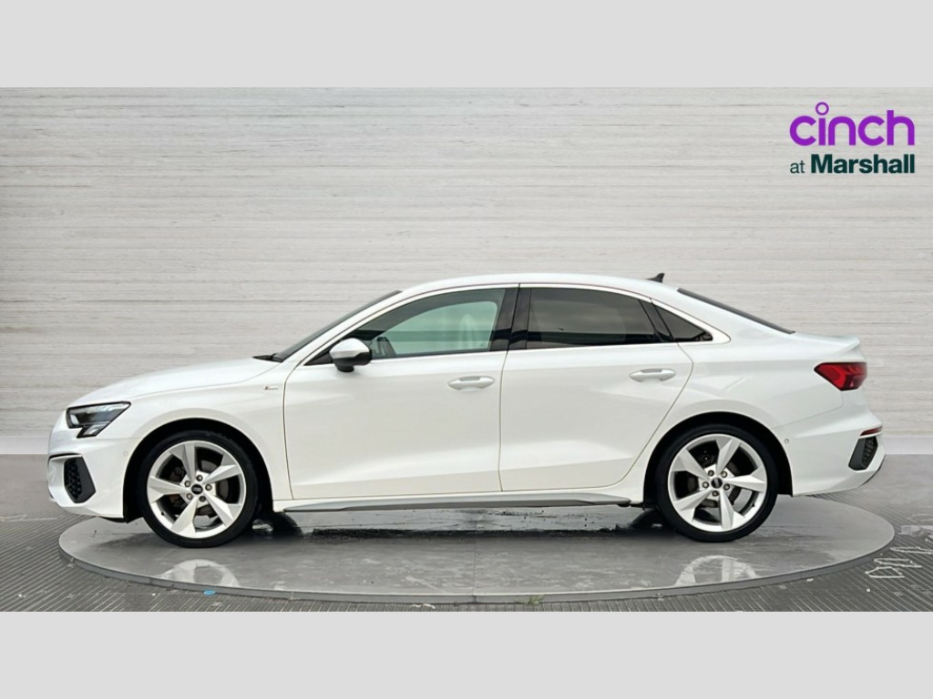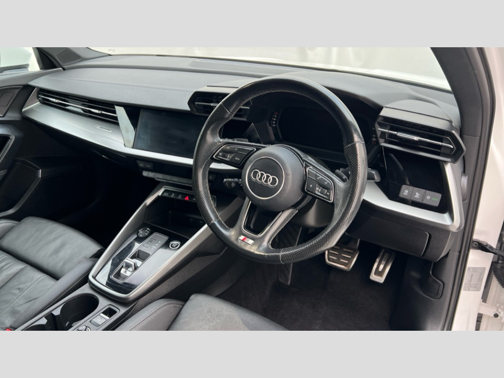 Audi A3 30 TFSI S Line 4dr S Tronic Audi connect emergency call and service, Audi drive select (Auto, Comfort, Dynamic and Individual), Audi smartphone interface, Audi Virtual Cockpit - 10.25" digital and colour instrument cluster, Automatic start/stop system with recuperation, Bluetooth interface, Collision avoidance assistant, Electromechanical power speed sensitive steering, Lane departure warning system, MMI Navigation Plus with high resolution 10.1" colour touch screen display, Service indicator, Voice control system with natural language interaction, 2x USB Type C ports (for charging and data transfer), 6 passive loudspeakers, CD player, DAB Digital radio, 3rd brake light, Acoustic glass windscreen, Aluminium window trim, Auto dimming frameless rear view mirror, Electrically adjustable/heated/folding/auto dimming door mirrors with integrated LED indications + kerb view function for passenger side, Front electric windows, Illuminated door sills with aluminium inserts at the front with S logo, LED daytime running lights, LED headlights with LED rear lights and dynamic rear indicators, Light and rain sensors, Model and engine designation badges at rear, Privacy glass - dark tinted rear window, rear door and side windows, Rear electric windows, S line bumpers, S roof spoiler, 12V socket and storage compartment in front centre console, 40/20/40 split folding rear seat bench with cupholder, Black cloth headlining, Dual zone electronic climate control, Front and rear centre armrest in leather, Front and rear headrests, Front/rear floor mats, Height and reach adjustable steering wheel, Interior lighting - glove compartment light and right hand side, Luggage compartment floor covering, Manual boot compartment lid, Manually adjustable front sport seats, Seat side bolsters, Stainless steel pedals and front footrest in black, Twin leather upholstery with front sports seats S embossed logo, Aluminium interior elements pack - A3, S line styling pack - A3 Saloon, 3x3 point rear seat belts, Driver and front passenger airbag with passenger airbag deactivation, Electronic Stabilisation Control (ESC) including ABS, ASR and EDL, First aid kit with warning triangle and 2 safety vests, Front side airbags with head airbags and interaction airbag, Hill hold assist, Pre-sense front with pedestrian and cyclist detection, Seatbelt monitoring, Tyre pressure loss indicator, Anti theft alarm, Anti-theft wheel bolts, Electronically operated child lock, Immobiliser, Remote control central locking, Aluminium air vent surrounds, Aluminium trim elements, Dark spectrum aluminium inlays, accent surfaces in the dashboard and centre console in platinum grey silk effect paint finish