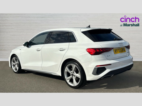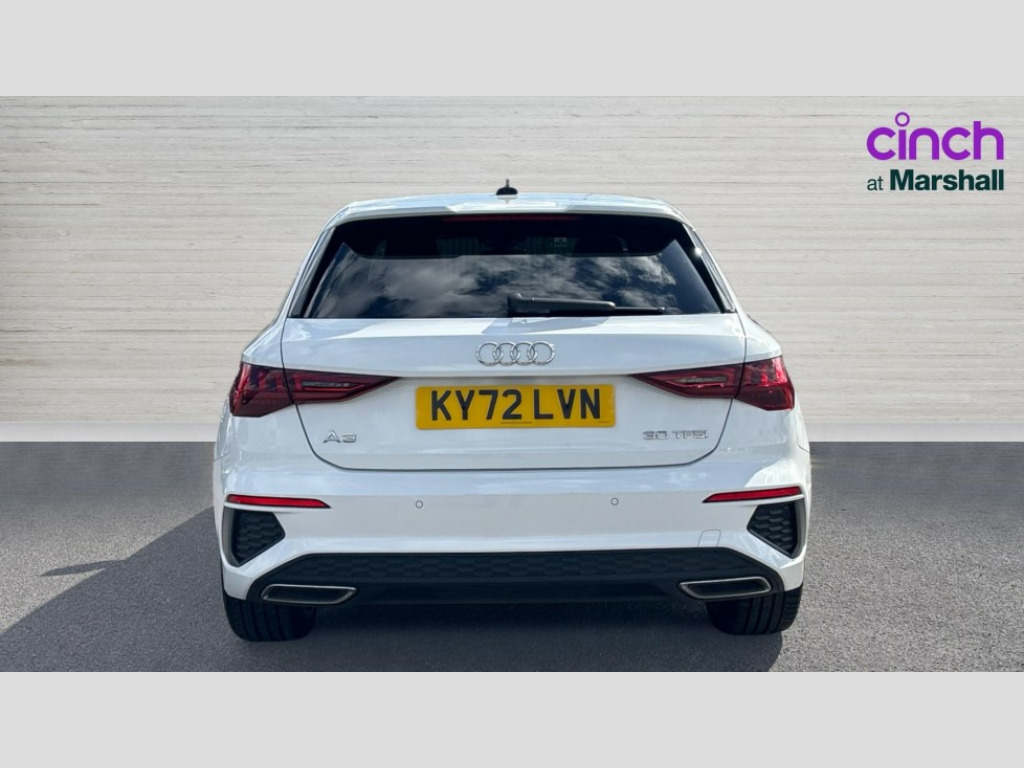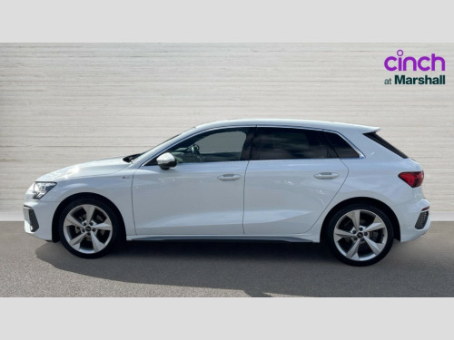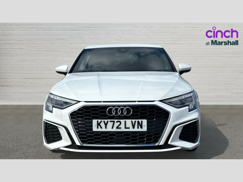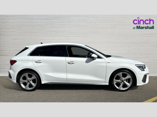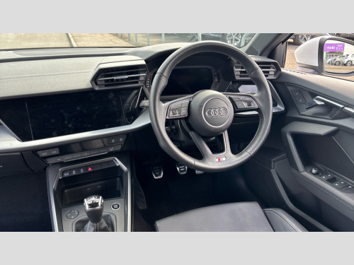 Audi A3 30 TFSI S Line 5dr Audi drive select (Auto, Comfort, Dynamic and Individual), Audi smartphone interface, Audi Virtual Cockpit - 10.25" digital and colour instrument cluster, Automatic start/stop system with recuperation, Bluetooth interface, Collision avoidance assistant, Cruise control, e-Call (emergency call), Electromechanical power speed sensitive steering, Lane departure warning system, MMI Navigation Plus with high resolution 10.1" colour touch screen display, Rear parking sensors, Service indicator, Trip computer, Voice control system with natural language interaction, 2xUSB-C connection with data and charging functions, 6 passive loudspeakers, DAB Digital radio, 3rd brake light, Acoustic glass windscreen, Aluminium window trim, Auto dimming frameless rear view mirror, Electrically adjustable/heated/folding/auto dimming door mirrors with integrated LED indications + kerb view function for passenger side, Front electric windows, Illuminated aluminium inserts front door sills with S logo, LED daytime running lights, LED headlights with LED rear lights and dynamic rear indicators, Light and rain sensors, Privacy glass - dark tinted rear window, rear door and side windows, Rear electric windows, Rear side air outlets in grained matt black, Rear side wing doors, Rear wiper, S line bumpers, S roof spoiler, 12V socket and storage compartment in front centre console, 3 seat bench in 2nd row, 40/20/40 split folding rear seat bench with cupholder, Black cloth headlining, Dual zone electronic climate control, Front and rear centre armrest in leather, Front and rear headrests, Front/rear floor mats, Height and reach adjustable steering wheel, Illuminated vanity mirror, Interior lighting - glove compartment light and right hand side, Luggage compartment floor covering, Manual boot compartment lid, Manually adjustable front seats, Seat side bolsters, Single front passenger seat, Stainless steel pedals and front footrest in black, Twin leather upholstery with front sports seats S embossed logo, Aluminium interior elements pack - A3 Sportback, S line styling pack - A3 Sportback, 3x3 point rear seat belts, Audi pre sense front, Driver and front passenger airbag with passenger airbag deactivation, Electronic Stabilisation Control (ESC) including ABS, ASR and EDL, First aid kit with warning triangle and 2 safety vests, Front side airbags with head airbags and interaction airbag, Pre-sense front with pedestrian and cyclist detection, Seatbelt monitoring, Tyre pressure loss indicator, Anti theft alarm, Anti-theft wheel bolts, Immobiliser, Manual child locks, Remote control central locking, Accent surfaces in the dashboard and centre console in platinum grey silk effect paint finish, Dark spectrum aluminium inlays