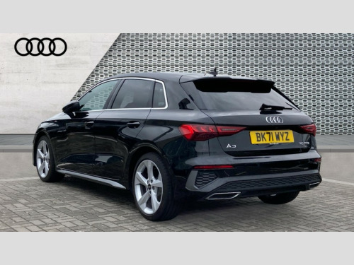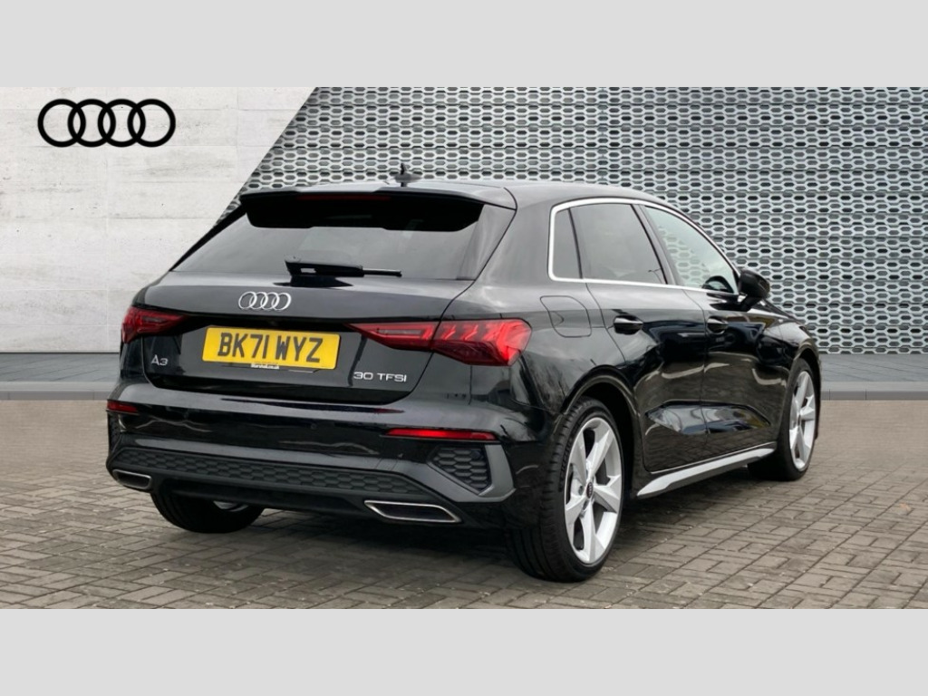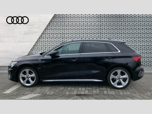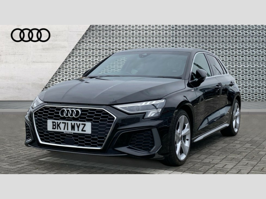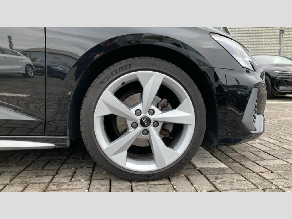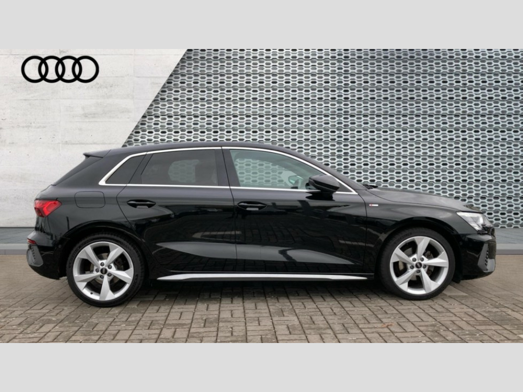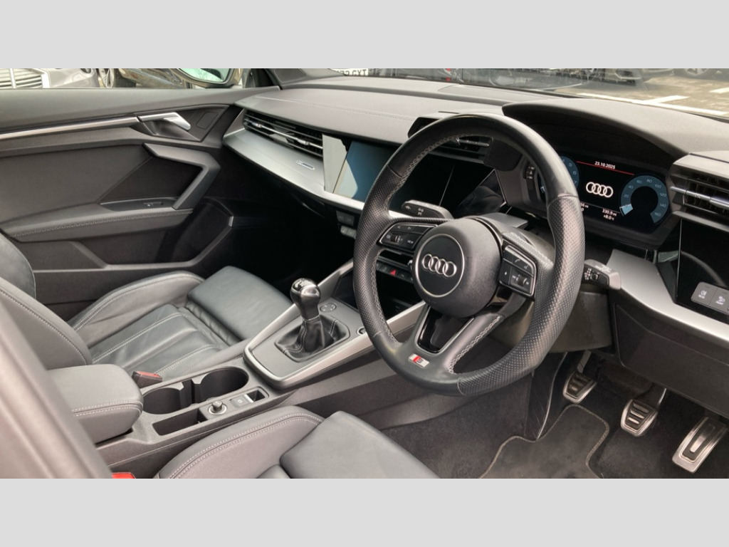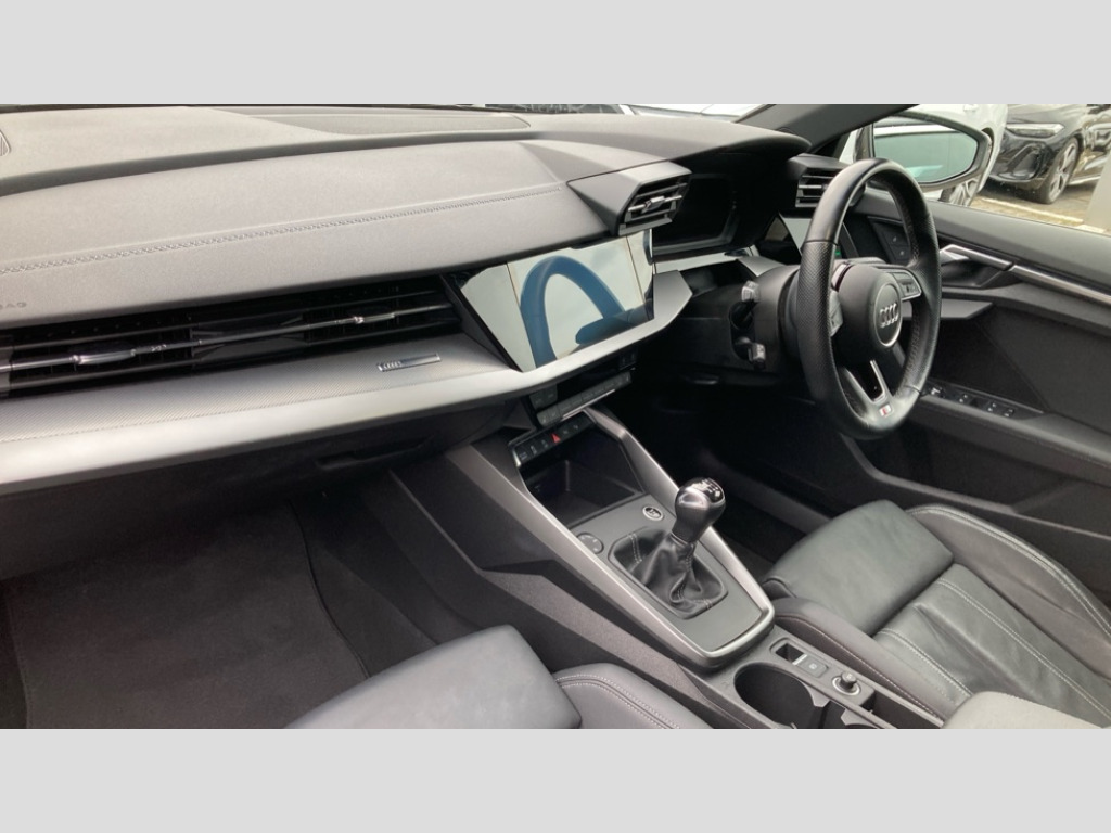 Audi A3 30 TFSI S Line 5dr Audi connect emergency call and service, Audi drive select (Auto, Comfort, Dynamic and Individual), Audi smartphone interface, Audi Virtual Cockpit - 10.25" digital and colour instrument cluster, Automatic start/stop system with recuperation, Bluetooth interface, Collision avoidance assistant, Electromechanical power speed sensitive steering, Lane departure warning system, MMI Navigation Plus with high resolution 10.1" colour touch screen display, Service indicator, Trip computer, Voice control system with natural language interaction, 2xUSB-C connection with data and charging functions, 6 passive loudspeakers, DAB Digital radio, 3rd brake light, Acoustic glass windscreen, Aluminium window trim, Auto dimming frameless rear view mirror, Electrically adjustable/heated/folding/auto dimming door mirrors with integrated LED indications + kerb view function for passenger side, Front electric windows, Illuminated aluminium inserts front door sills with S logo, LED daytime running lights, LED headlights with LED rear lights and dynamic rear indicators, Light and rain sensors, Privacy glass - dark tinted rear window, rear door and side windows, Rear electric windows, Rear side air outlets in grained matt black, Rear wiper, S line bumpers, S roof spoiler, 12V socket and storage compartment in front centre console, 40/20/40 split folding rear seat bench with cupholder, Black cloth headlining, Dual zone electronic climate control, Front and rear centre armrest in leather, Front and rear headrests, Front/rear floor mats, Height and reach adjustable steering wheel, Interior lighting - glove compartment light and right hand side, Luggage compartment floor covering, Manual boot compartment lid, Manually adjustable front seats, Seat side bolsters, Stainless steel pedals and front footrest, Twin leather upholstery with front sports seats S embossed logo, Aluminium interior elements pack - A3 Sportback, S line styling pack - A3 Sportback, 3x3 point rear seat belts, Driver and front passenger airbag with passenger airbag deactivation, Electronic Stabilisation Control (ESC) including ABS, ASR and EDL, First aid kit with warning triangle and 2 safety vests, Front side airbags with head airbags and interaction airbag, Hill hold assist, Pre-sense front with pedestrian and cyclist detection, Seatbelt monitoring, Tyre pressure loss indicator, Anti theft alarm, Anti-theft wheel bolts, Electronically operated child lock, Immobiliser, Remote control central locking, Accent surfaces in the dashboard and centre console in platinum grey silk effect paint finish, Dark spectrum aluminium inlays