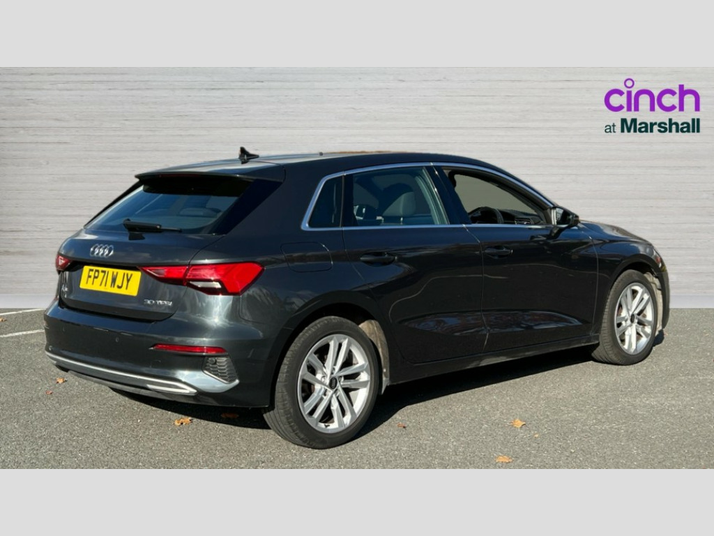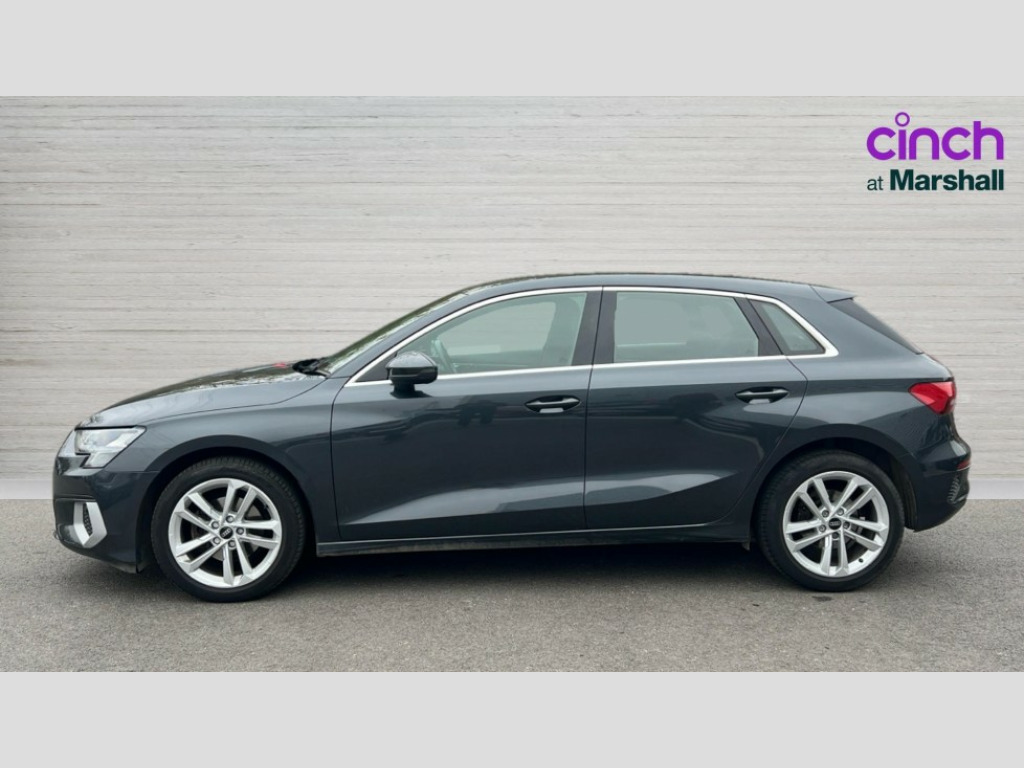Audi A3 30 TFSI Sport 5dr Audi connect emergency call and service, Audi drive select (Auto, Comfort, Dynamic and Individual), Audi smartphone interface, Audi Virtual Cockpit - 10.25" digital and colour instrument cluster, Automatic start/stop system with recuperation, Bluetooth interface, Collision avoidance assistant, Electromechanical power speed sensitive steering, Lane departure warning system, MMI Navigation Plus with high resolution 10.1" colour touch screen display, Service indicator, Trip computer, Voice control system with natural language interaction, Standard suspension, 2xUSB-C connection with data and charging functions, 6 passive loudspeakers, DAB Digital radio, 3rd brake light, Acoustic glass windscreen, Aluminium window trim, Auto dimming frameless rear view mirror, Body colour exterior mirrors, Body colour roof spoiler, Electrically adjustable/heated/folding/auto dimming door mirrors with integrated LED indications + kerb view function for passenger side, Front electric windows, LED daytime running lights, LED headlights and halogen rear lights, Light and rain sensors, Rear electric windows, Rear window, rear door windows and rear side windows in clear glass, Rear wiper, 12V socket and storage compartment in front centre console, 40/20/40 split folding rear seat bench with cupholder, Dual zone electronic climate control, Front and rear centre armrest, Front and rear headrests, Front door sill trims with aluminium inlay, Front/rear floor mats, Height and reach adjustable steering wheel, Interior lighting - Front and rear roof module including reading lights, glove compartment light and right hand side, Luggage compartment floor covering, Manual boot compartment lid, Manually adjustable front seats, Seat side bolsters, Steel grey cloth headlining, Twin leather upholstery, Aluminium interior elements pack - A3 Sportback, Sport styling pack - A3 Sportback, 3x3 point rear seat belts, Driver and front passenger airbag with passenger airbag deactivation, Electronic Stabilisation Control (ESC) including ABS, ASR and EDL, First aid kit with warning triangle and 2 safety vests, Front side airbags with head airbags and interaction airbag, Hill hold assist, Pre-sense front with pedestrian and cyclist detection, Seatbelt monitoring, Tyre pressure loss indicator, Anti theft alarm, Anti-theft wheel bolts, Electronically operated child lock, Immobiliser, Remote control central locking, Inlays with silk effect paint in platinum grey