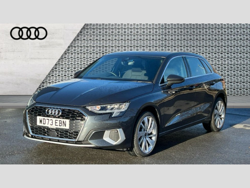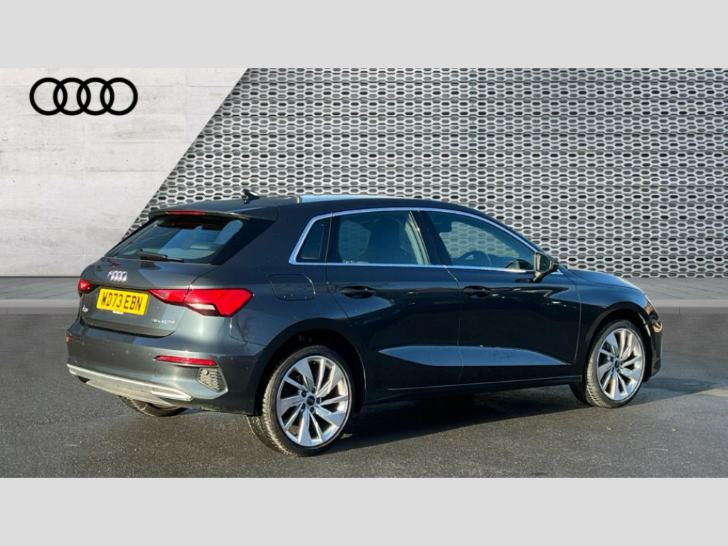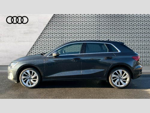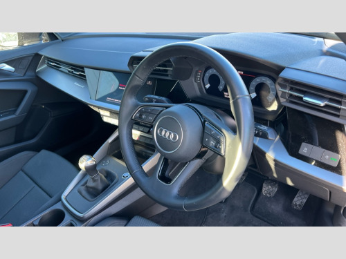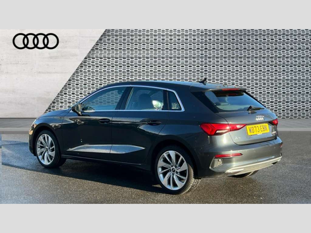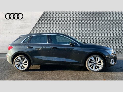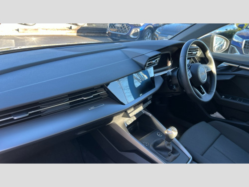 Audi A3 30 TFSI Sport 5dr Audi drive select (Auto, Comfort, Dynamic and Individual), Audi smartphone interface, Audi Virtual Cockpit - 10.25" digital and colour instrument cluster, Automatic start/stop system with recuperation, Bluetooth interface, Camera based traffic sign recognition, Collision avoidance assistant, Cruise control, e-Call (emergency call), Electromechanical power speed sensitive steering, Lane departure warning system, MMI Navigation Plus with high resolution 10.1" colour touch screen display, Rear parking sensors, Service indicator, Trip computer, Voice control system with natural language interaction, Standard suspension, 2xUSB-C connection with data and charging functions, 6 passive loudspeakers, DAB Digital radio, 3rd brake light, Acoustic glass windscreen, Aluminium window trim, Auto dimming frameless rear view mirror, Body colour exterior mirrors, Body colour roof spoiler, Electrically adjustable/heated/folding/auto dimming door mirrors with integrated LED indications + kerb view function for passenger side, Front electric windows, LED daytime running lights, LED headlights and halogen rear lights, Light and rain sensors, Rear electric windows, Rear side wing doors, Rear window, rear door windows and rear side windows in clear glass, Rear wiper, 12V socket and storage compartment in front centre console, 3 seat bench in 2nd row, 3 spoke leather multifunction steering wheel, 4 way electrically adjustable lumbar support for driver and front passenger, 60/40 split folding rear seat bench, Dual zone electronic climate control, Front and rear headrests, Front centre armrest, Front door sill trims with aluminium inlay, Front/rear floor mats, Height and reach adjustable steering wheel, Interior lighting - Front and rear roof module including reading lights, glove compartment light and right hand side, Interior lighting - glove compartment light and right hand side, Luggage compartment floor covering, Manual boot compartment lid, Manually adjustable front seats, Routine cloth upholstery with front sports seats, Seat side bolsters, Single front passenger seat, Steel grey cloth headlining, Aluminium interior elements pack - A3 Sportback, LED interior lighting pack - A3 Sportback, Sport styling pack - A3 Sportback, 3x3 point rear seat belts, Driver and front passenger airbag with passenger airbag deactivation, Electronic Stabilisation Control (ESC) including ABS, ASR and EDL, First aid kit with warning triangle and 2 safety vests, Front side airbags with head airbags and interaction airbag, Pre-sense front with pedestrian and cyclist detection, Seatbelt monitoring, Tyre pressure loss indicator, Anti theft alarm, Anti-theft wheel bolts, Electronically operated child locks, Immobiliser, Remote control central locking, Inlays with silk effect paint in platinum grey