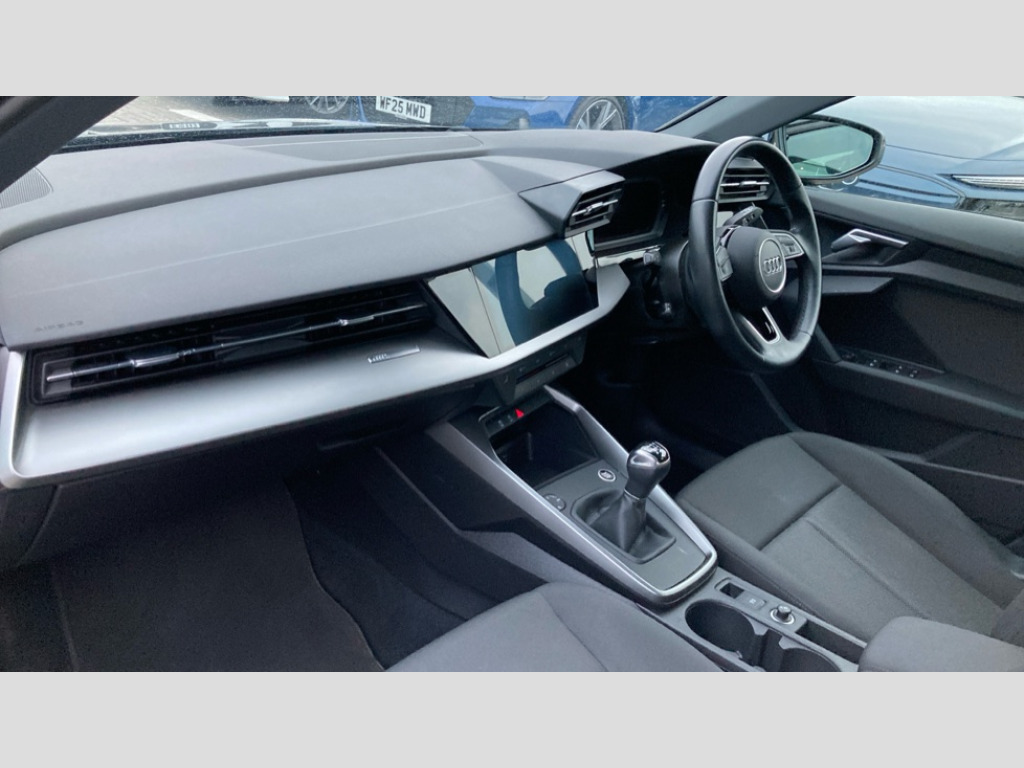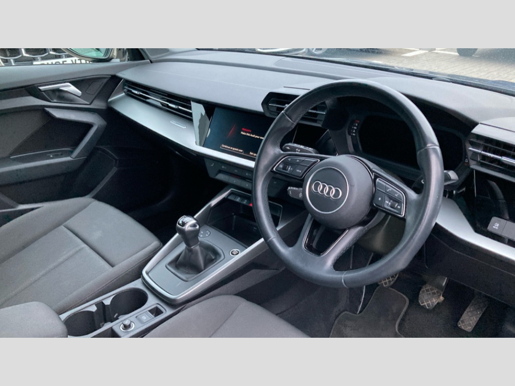 Audi A3 30 TFSI Technik 5dr Audi connect emergency call and service, Audi smartphone interface, Audi Virtual Cockpit - 10.25" digital and colour instrument cluster, Automatic start/stop system with recuperation, Bluetooth interface, Collision avoidance assistant, Electromechanical power speed sensitive steering, Lane departure warning system, MMI Navigation Plus with high resolution 10.1" colour touch screen display, Service indicator, Trip computer, Voice control system with natural language interaction, Standard suspension, 2xUSB-C connection with data and charging functions, 6 passive loudspeakers, DAB Digital radio, 3rd brake light, Acoustic glass windscreen, Auto dimming frameless rear view mirror, Body colour exterior mirrors, Body colour front spoiler blade, Body colour roof spoiler, Electrically adjustable/heated/folding/auto dimming door mirrors with integrated LED indications + kerb view function for passenger side, Front electric windows, LED daytime running lights, LED headlights and halogen rear lights, Light and rain sensors, Radiator grille and frame in grained matt black and honeycomb look, Rear diffuser in grained matt black, Rear electric windows, Rear side air outlets in grained matt black, Rear window, rear door windows and rear side windows in clear glass, Rear wiper, Side air inlets in grained matt black, 12V socket and storage compartment in front centre console, 3 spoke leather multifunction steering wheel, 60/40 split folding rear seat bench, Front and rear headrests, Front centre armrest, Front/rear floor mats, Height and reach adjustable steering wheel, Interior lighting - Front and rear roof module including reading lights, glove compartment light and right hand side, Luggage compartment floor covering, Manual air conditioning, Manual boot compartment lid, Manually adjustable front seats, Seat side bolsters, Steel grey cloth headlining, 3x3 point rear seat belts, Driver and front passenger airbag with passenger airbag deactivation, Electronic Stabilisation Control (ESC) including ABS, ASR and EDL, First aid kit with warning triangle and 2 safety vests, Front side airbags with head airbags and interaction airbag, Hill hold assist, Pre-sense front with pedestrian and cyclist detection, Seatbelt monitoring, Tyre pressure loss indicator, Anti theft alarm, Anti-theft wheel bolts, Electronically operated child lock, Immobiliser, Remote control central locking, Black decorative window trim, Inlays with silk effect paint in platinum grey, 16" 5 double arm alloy wheels