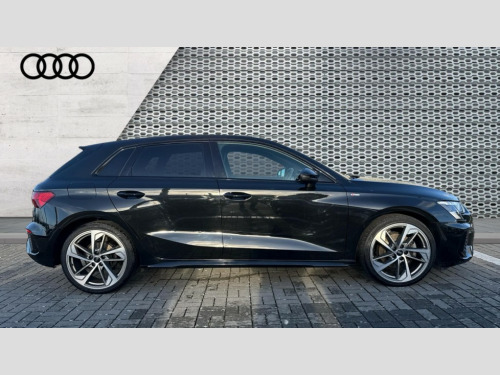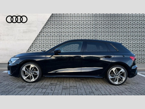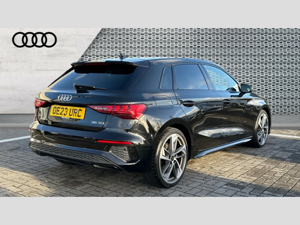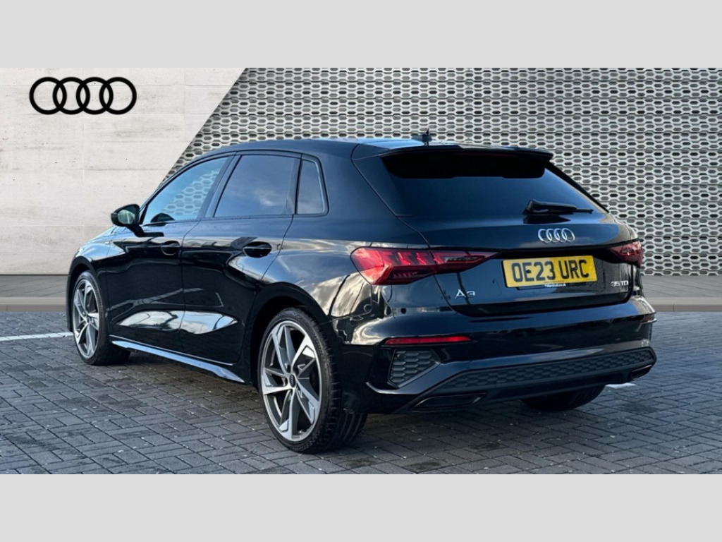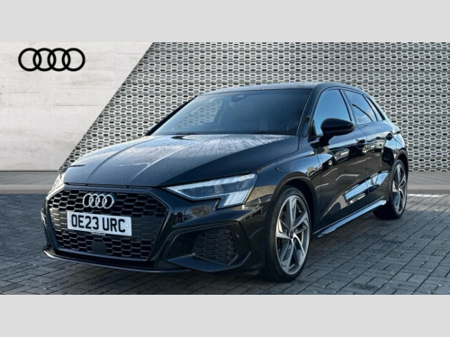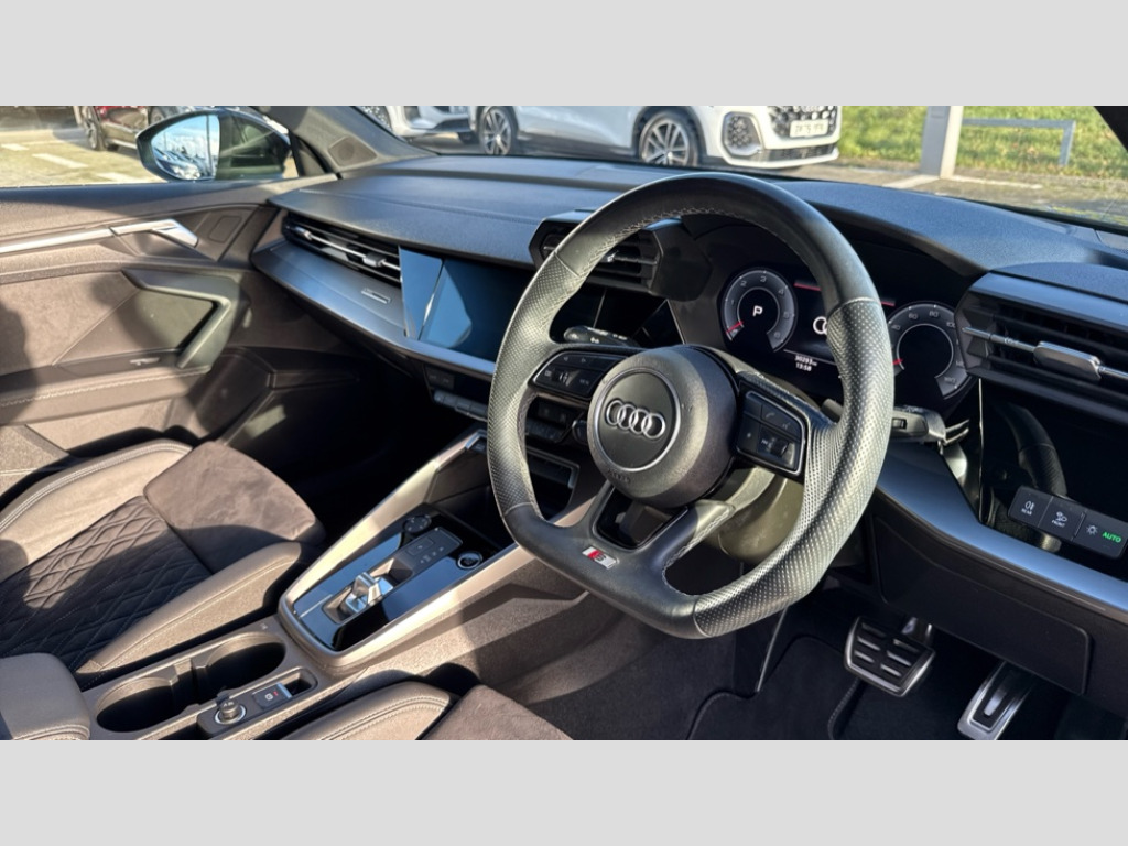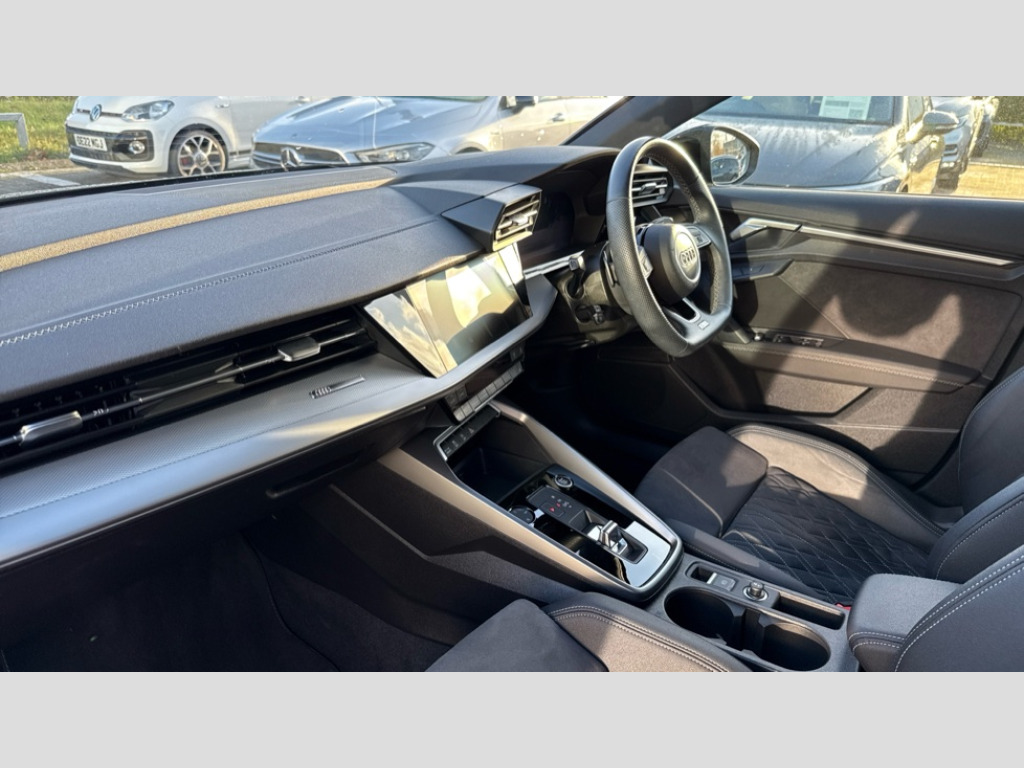 Audi A3 35 TDI Edition 1 5dr S Tronic Audi drive select (Auto, Comfort, Dynamic, Efficiency and Individual), Audi smartphone interface, Audi virtual cockpit plus - 12.3" full HD resolution dynamic digital instrument cluster, Automatic start/stop system with recuperation, Bluetooth interface, Collision avoidance assistant, e-Call (emergency call), Electromechanical power speed sensitive steering, Lane departure warning system, MMI Navigation Plus with high resolution 10.1" colour touch screen display, Service indicator, Trip computer, Voice control system with natural language interaction, Sports suspension, 2xUSB-C connection with data and charging functions, DAB Digital radio, 3rd brake light, Acoustic glass windscreen, Audi matrix LED headlights, LED rear lights, dynamic front and rear indicators and headlight cleaning system, Auto dimming frameless rear view mirror, Body colour front spoiler blade, Electrically adj heated/folding + automatically dimming exterior mirrors with memory + automatic kerb side function for passenger side exterior mirror, Front electric windows, Illuminated aluminium inserts front door sills with S logo, Integrated LED indicators in door mirrors, LED daytime running lights, Light and rain sensors, Privacy glass - dark tinted rear window, rear door and side windows, Rear diffuser in grained matt black, Rear electric windows, Rear side air outlets in grained matt black, Rear side wing doors, Rear wiper, S roof spoiler, 12V socket and storage compartment in front centre console, 3 seat bench in 2nd row, 4 way electrically adjustable lumbar support for driver and front passenger, 40/20/40 split folding rear seat bench with cupholder, Black cloth headlining, Dual zone electronic climate control, Electrically adjustable front seats with memory function for driver's side, Front and rear headrests, Front/rear floor mats, Height and reach adjustable steering wheel, Illuminated vanity mirror, Interior lighting - glove compartment light and right hand side, Luggage compartment floor covering, Manual boot compartment lid, Seat side bolsters, Single front passenger seat, Stainless steel pedals and front footrest in black, Aluminium interior elements pack - A3 Sportback, Black styling pack - A3 Sportback, Comfort and sound pack - A3, Dinamica microfibre/mono.pur 550 artificial leather pack - A3 Sportback, Extended ambient lighting pack - A3 Sportback, LED interior lighting pack - A3 Sportback, 3x3 point rear seat belts, Audi pre sense front, Driver and front passenger airbag with passenger airbag deactivation, Electronic Stabilisation Control (ESC) including ABS, ASR and EDL, First aid kit with warning triangle and 2 safety vests, Front side airbags with head airbags and interaction airbag, Pre-sense front with pedestrian and cyclist detection, Seatbelt monitoring, Tyre pressure loss indicator, Anti theft alarm, Anti-theft wheel bolts, Electronically operated child lock, Immobiliser, Remote control central locking, Accent surfaces in the dashboard and centre console in platinum grey silk effect paint finish, Dark spectrum aluminium inlays, 19" 5 arm trapezoid design alloy wheels in matt grey with diamond cut finish