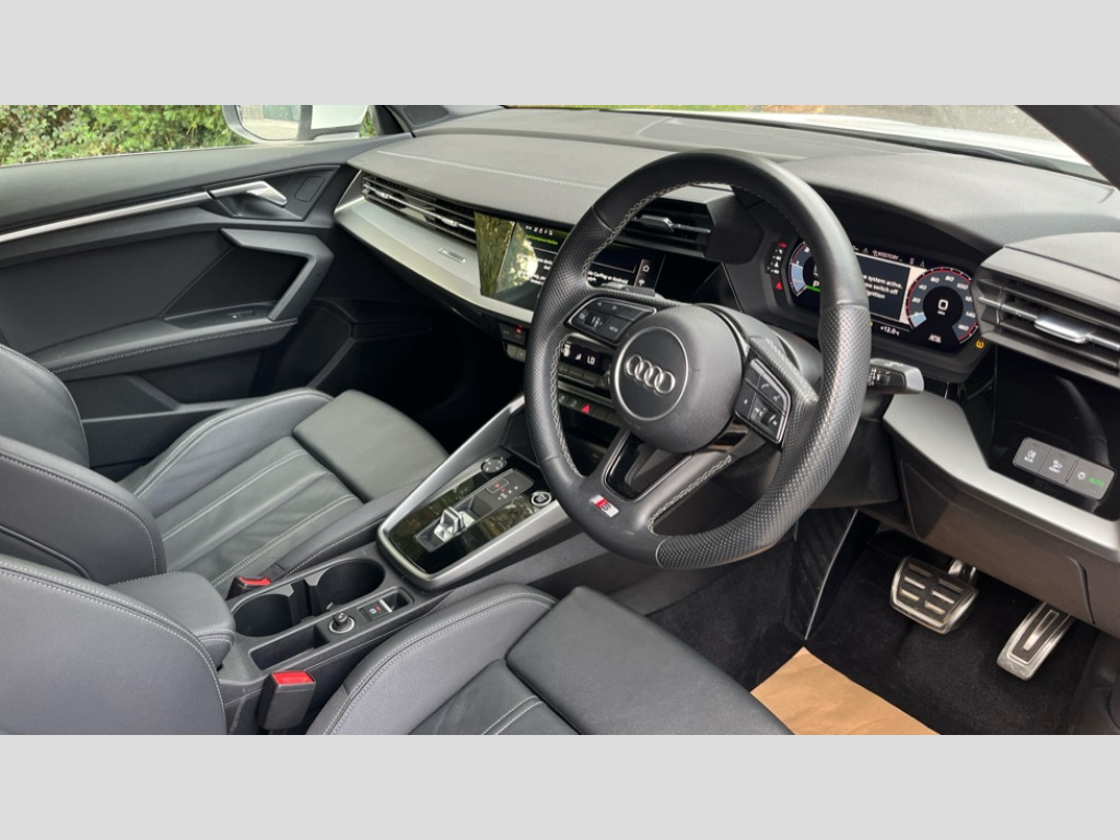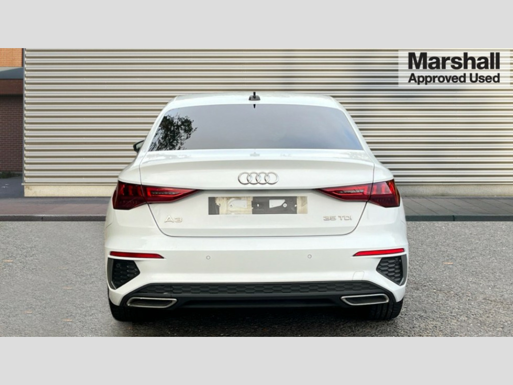 Audi A3 35 TDI S Line 4dr S Tronic Audi connect emergency call and service, Audi drive select (Auto, Comfort, Dynamic, Efficiency and Individual), Audi smartphone interface, Audi Virtual Cockpit - 10.25" digital and colour instrument cluster, Automatic start/stop system with recuperation, Bluetooth interface, Collision avoidance assistant, Electromechanical power speed sensitive steering, Lane departure warning system, MMI Navigation Plus with high resolution 10.1" colour touch screen display, Service indicator, Voice control system with natural language interaction, Diesel particulate filter, 2x USB Type C ports (for charging and data transfer), 6 passive loudspeakers, CD player, DAB Digital radio, 3rd brake light, Acoustic glass windscreen, Aluminium window trim, Auto dimming frameless rear view mirror, Electrically adjustable/heated/folding/auto dimming door mirrors with integrated LED indications + kerb view function for passenger side, Front electric windows, Illuminated door sills with aluminium inserts at the front with S logo, LED daytime running lights, LED headlights with LED rear lights and dynamic rear indicators, Light and rain sensors, Model and engine designation badges at rear, Privacy glass - dark tinted rear window, rear door and side windows, Rear boot, Rear electric windows, Rear side wing doors, S line bumpers, S roof spoiler, 12V socket and storage compartment in front centre console, 3 seat bench in 2nd row, 40/20/40 split folding rear seat bench with cupholder, Black cloth headlining, Dual zone electronic climate control, Front and rear centre armrest in leather, Front and rear headrests, Front/rear floor mats, Height and reach adjustable steering wheel, Illuminated vanity mirror, Interior lighting - glove compartment light and right hand side, Luggage compartment floor covering, Manual boot compartment lid, Manually adjustable front sport seats, Seat side bolsters, Single front passenger seat, Stainless steel pedals and front footrest in black, Twin leather upholstery with front sports seats S embossed logo, Aluminium interior elements pack - A3, LED interior lighting pack - A3 Saloon, S line styling pack - A3 Saloon, 3x3 point rear seat belts, Driver and front passenger airbag with passenger airbag deactivation, Electronic Stabilisation Control (ESC) including ABS, ASR and EDL, First aid kit with warning triangle and 2 safety vests, Front side airbags with head airbags and interaction airbag, Hill hold assist, Pre-sense front with pedestrian and cyclist detection, Seatbelt monitoring, Tyre pressure loss indicator, Anti theft alarm, Anti-theft wheel bolts, Electronically operated child locks, Immobiliser, Remote control central locking, Aluminium air vent surrounds, Aluminium trim elements, Dark spectrum aluminium inlays, accent surfaces in the dashboard and centre console in platinum grey silk effect paint finish