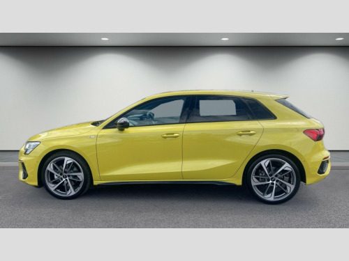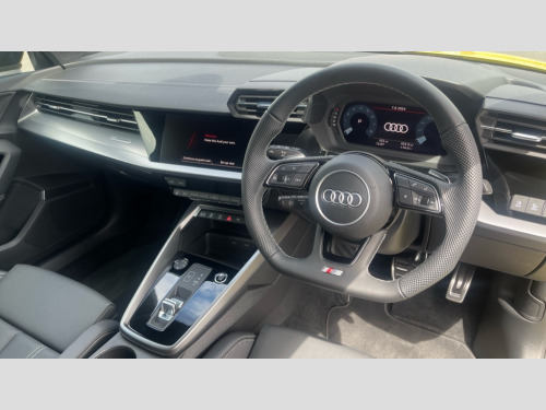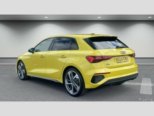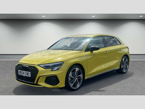 Audi A3 35 TFSI Black Edition 5dr S Tronic Audi drive select (Auto, Comfort, Dynamic, Efficiency and Individual), Audi smartphone interface, Audi Virtual Cockpit - 10.25" digital and colour instrument cluster, Automatic start/stop system with recuperation, Bluetooth interface, Camera based traffic sign recognition, Collision avoidance assistant, e-Call (emergency call), Electromechanical power speed sensitive steering, Lane departure warning system, MMI Navigation Plus with high resolution 10.1" colour touch screen display, Service indicator, Trip computer, Voice control system with natural language interaction, Sports suspension, 2xUSB-C connection with data and charging functions, 6 passive loudspeakers, DAB Digital radio, 3rd brake light, Acoustic glass windscreen, Audi beam uses LEDs to project the Audi logo onto the ground as you exit your A3, Auto dimming frameless rear view mirror, Electrically adjustable/heated/folding/auto dimming door mirrors with integrated LED indications + kerb view function for passenger side, Front electric windows, Illuminated door sills with aluminium inserts at the front with S logo, LED daytime running lights, LED headlights with LED rear lights and dynamic rear indicators, Light and rain sensors, Privacy glass - dark tinted rear window, rear door and side windows, Rear electric windows, Rear side air outlets in grained matt black, Rear side wing doors, Rear wiper, S roof spoiler, 12V socket and storage compartment in front centre console, 3 seat bench in 2nd row, 3 spoke flat bottomed leather multifunction sport steering wheel with gear shift paddles, 4 way electrically adjustable lumbar support for driver and front passenger, 60/40 split folding rear seat bench, Black cloth headlining, Dual zone electronic climate control, Front and rear centre armrest in artificial leather, Front and rear headrests, Front/rear floor mats, Height and reach adjustable steering wheel, Interior lighting - glove compartment light and right hand side, Luggage compartment floor covering, Manual boot compartment lid, Seat side bolsters, Single front passenger seat, Stainless steel pedals and front footrest in black, Twin leather upholstery with front sports seats S embossed logo, Aluminium interior elements pack - A3 Sportback, Black styling pack - A3 Sportback/Black edition, LED interior lighting pack - A3 Sportback, 3x3 point rear seat belts, Driver and front passenger airbag with passenger airbag deactivation, Electronic Stabilisation Control (ESC) including ABS, ASR and EDL, First aid kit with warning triangle and 2 safety vests, Front side airbags with head airbags and interaction airbag, Pre-sense front with pedestrian and cyclist detection, Seatbelt monitoring, Tyre pressure loss indicator, Anti theft alarm, Anti-theft wheel bolts, Electronically operated child locks, Immobiliser, Remote control central locking, Dark spectrum aluminium inlays, accent surfaces in the dashboard and centre console in platinum grey silk effect paint finish, 19" 5 arm trapezoid design alloy wheels in matt grey with diamond cut finish
