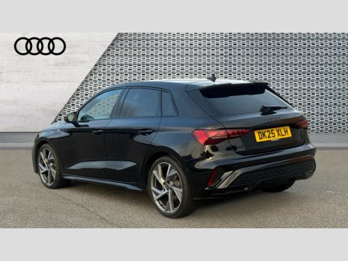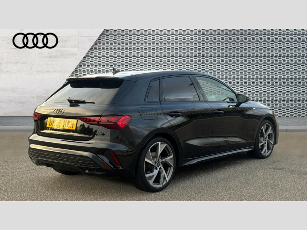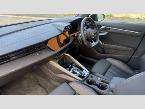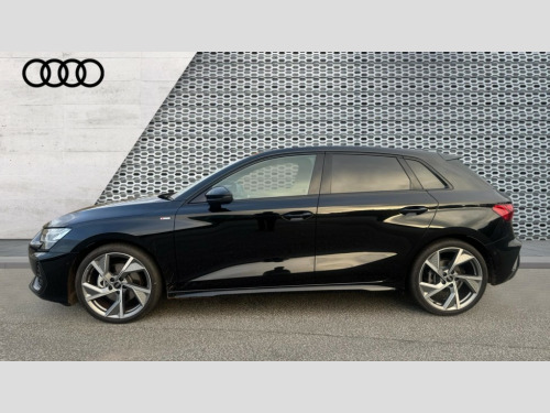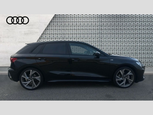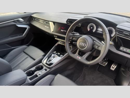 Audi A3 35 TFSI Black Edition 5dr S Tronic Adjustable speed limiter, Audi drive select, Audi smartphone interface with app store includes wireless Apple carplay, Android auto and Amazon alexa integration, Audi virtual cockpit plus - 12.3" full HD resolution dynamic digital instrument cluster, Automatic start/stop system with recuperation, Bluetooth interface, Camera based traffic sign recognition, Collision avoidance assistant, Cruise control, Distraction and Fatigue warning, e-Call (emergency call), Electromechanical power speed sensitive steering, Lane departure warning system, MMI Navigation Plus with high resolution 10.1" colour touch screen display, Park Assist with parking system Plus, Service indicator, Tailgate, Trip computer, Voice control system with natural language interaction, Sports suspension, Audi Phonebox light with wireless charging, Audi sound system - 10 loudspeakers including centre loudspeaker and subwoofer, DAB Digital radio, USB ports with charging function in the rear, Acoustic glass windscreen, Anthracite grey Audi rings (front and rear), Audi beam uses LEDs to project the Audi logo onto the ground as you exit your A3, Auto dimming frameless rear view mirror, Black accents front and rear bumpers, Black accents in the area of the Audi single frame grille, Black accents window trims strips, Electrically adjustable/heated/folding/auto dimming door mirrors with integrated LED indications + kerb view function for passenger side, Exterior model badging, Front electric windows, Heat insulating glass windscreen, Illuminated door sills with aluminium inserts at the front with S logo, LED 3rd brake light, LED daytime running lights, LED headlights with LED rear lights and dynamic rear indicators, Light and rain sensors, Privacy glass - dark tinted rear window, rear door and side windows, Rear electric windows, Rear side wing doors, Rear wiper, S roof spoiler, 12V socket and storage compartment in front centre console, 3 seat bench in 2nd row, 3 spoke flat bottomed leather multifunction sport steering wheel with gear shift paddles, 3-zone deluxe automatic air conditioning, 4 way electrically adjustable lumbar support for driver and front passenger, 40/20/40 split folding rear seat bench, Black cloth headlining, Front and rear centre armrest in artificial leather, Front and rear centre armrest in artificial leather with contrasting stitching on armrests and instrument panel, Front and rear headrests, Front/rear floor mats, Heated front seats, Height and reach adjustable steering wheel, Manual boot compartment lid, Manually adjustable front seats, Rear cup holders, S badging on the steering wheel, Seat side bolsters, Single front passenger seat, Stainless steel pedals and front footrest in black, Twin leather upholstery with front sports seats S embossed logo, Aluminium interior elements pack - A3 Sportback, Multi-coloured LED interior lighting package - A3 Black Edition, 3x3 point rear seat belts, Driver and front passenger airbag with passenger airbag deactivation, Electronic Stabilisation Control (ESC) including ABS, ASR and EDL, First aid kit with warning triangle and 2 safety vests, Front side airbags with head airbags and interaction airbag, Hill hold assist, Pre-sense front with pedestrian and cyclist detection, Seatbelt monitoring, Tyre pressure loss indicator, Anti theft alarm, Anti-theft wheel bolts, Electronically operated child locks, Immobiliser, Remote central locking with safelock, Inlays in black Impressum woven textile