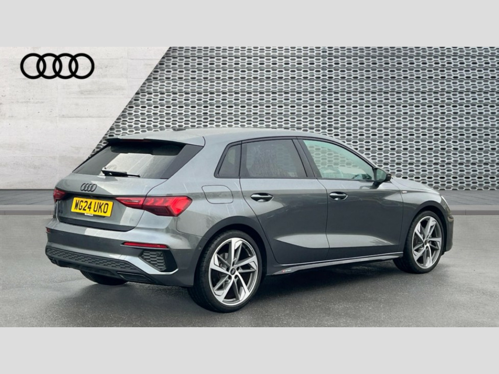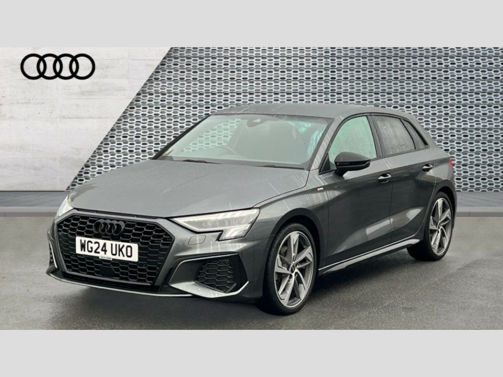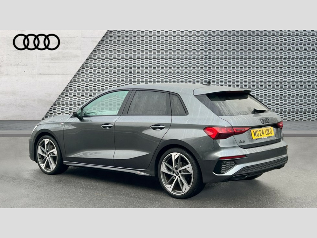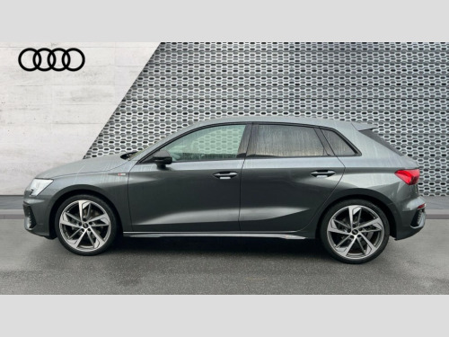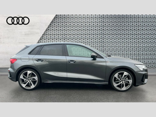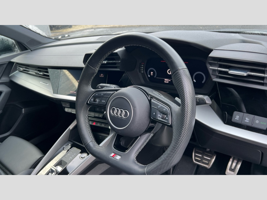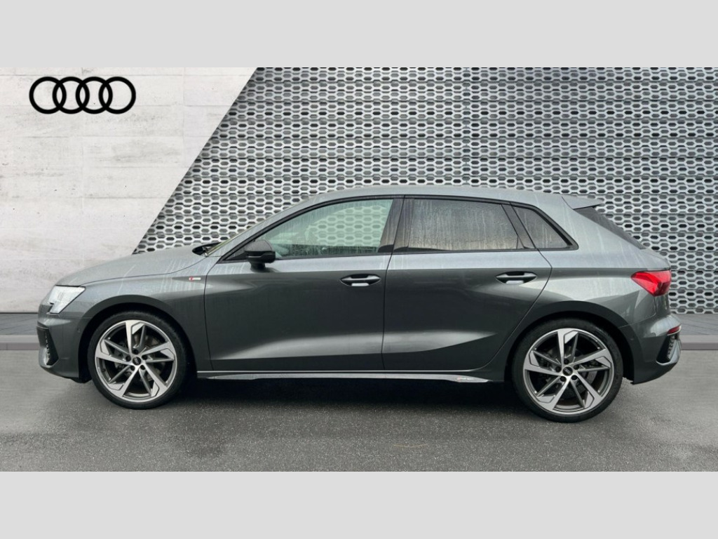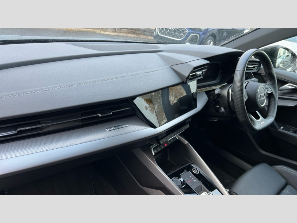 Audi A3 35 TFSI Black Edition 5dr S Tronic Audi drive select (Auto, Comfort, Dynamic, Efficiency and Individual), Audi smartphone interface, Audi Virtual Cockpit - 10.25" digital and colour instrument cluster, Automatic start/stop system with recuperation, Bluetooth interface, Camera based traffic sign recognition, Collision avoidance assistant, e-Call (emergency call), Electromechanical power speed sensitive steering, Lane departure warning system, MMI Navigation Plus with high resolution 10.1" colour touch screen display, Service indicator, Trip computer, Voice control system with natural language interaction, Sports suspension, 2xUSB-C connection with data and charging functions, 6 passive loudspeakers, DAB Digital radio, 3rd brake light, Acoustic glass windscreen, Audi beam uses LEDs to project the Audi logo onto the ground as you exit your A3, Auto dimming frameless rear view mirror, Electrically adjustable/heated/folding/auto dimming door mirrors with integrated LED indications + kerb view function for passenger side, Front electric windows, Illuminated door sills with aluminium inserts at the front with S logo, LED daytime running lights, LED headlights with LED rear lights and dynamic rear indicators, Light and rain sensors, Privacy glass - dark tinted rear window, rear door and side windows, Rear electric windows, Rear side air outlets in grained matt black, Rear side wing doors, Rear wiper, S roof spoiler, 12V socket and storage compartment in front centre console, 3 seat bench in 2nd row, 3 spoke flat bottomed leather multifunction sport steering wheel with gear shift paddles, 4 way electrically adjustable lumbar support for driver and front passenger, 60/40 split folding rear seat bench, Black cloth headlining, Dual zone electronic climate control, Front and rear centre armrest in artificial leather, Front and rear headrests, Front/rear floor mats, Height and reach adjustable steering wheel, Interior lighting - glove compartment light and right hand side, Luggage compartment floor covering, Manual boot compartment lid, Seat side bolsters, Single front passenger seat, Stainless steel pedals and front footrest in black, Twin leather upholstery with front sports seats S embossed logo, Aluminium interior elements pack - A3 Sportback, Black styling pack - A3 Sportback/Black edition, LED interior lighting pack - A3 Sportback, 3x3 point rear seat belts, Driver and front passenger airbag with passenger airbag deactivation, Electronic Stabilisation Control (ESC) including ABS, ASR and EDL, First aid kit with warning triangle and 2 safety vests, Front side airbags with head airbags and interaction airbag, Pre-sense front with pedestrian and cyclist detection, Seatbelt monitoring, Tyre pressure loss indicator, Anti theft alarm, Anti-theft wheel bolts, Electronically operated child locks, Immobiliser, Remote control central locking, Dark spectrum aluminium inlays, accent surfaces in the dashboard and centre console in platinum grey silk effect paint finish, 19" 5 arm trapezoid design alloy wheels in matt grey with diamond cut finish
