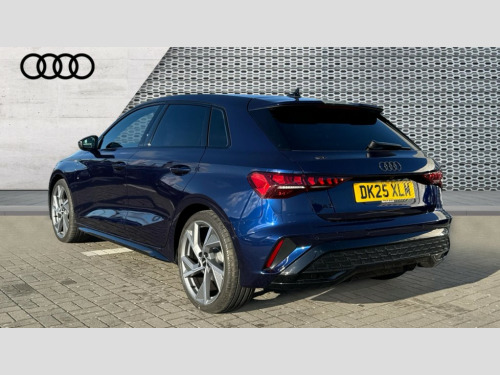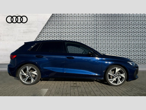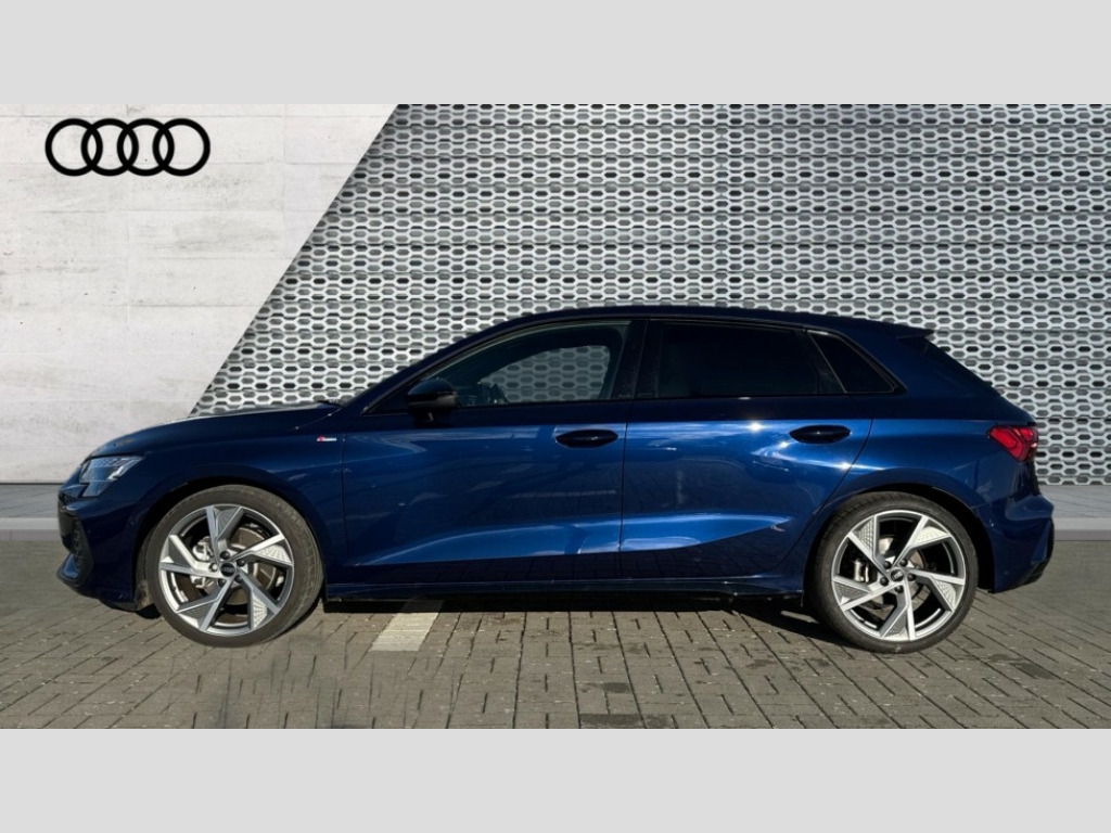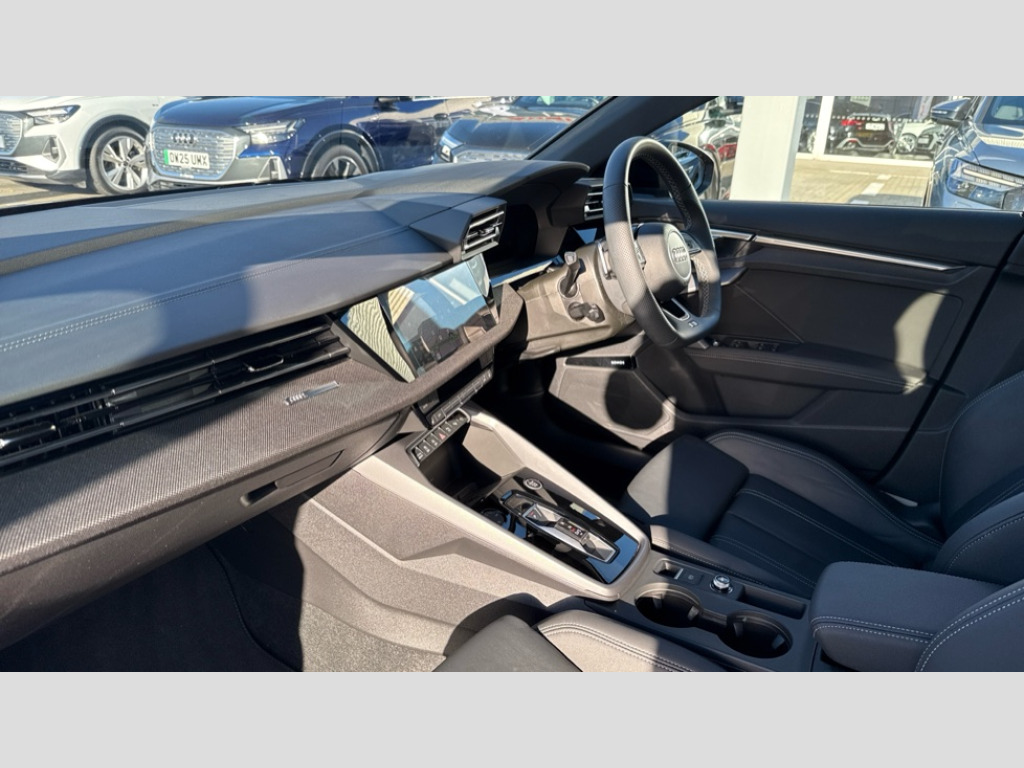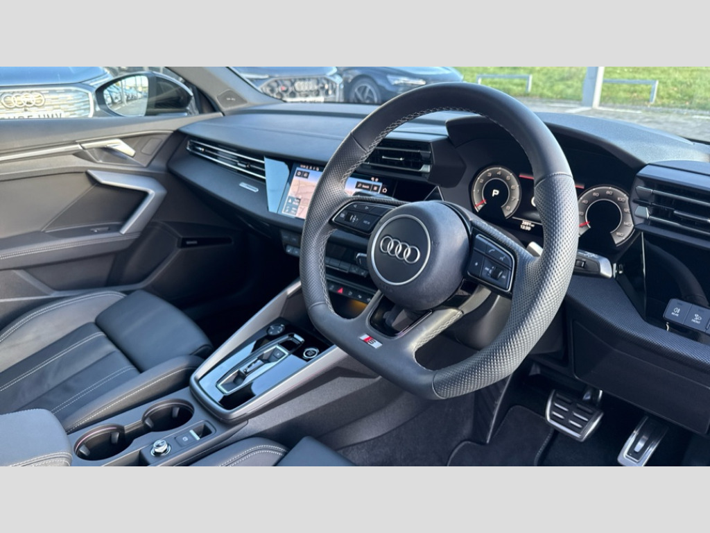Audi A3 35 TFSI Black Edition 5dr S Tronic Adjustable speed limiter, Audi drive select, Audi smartphone interface with app store includes wireless Apple carplay, Android auto and Amazon alexa integration, Audi virtual cockpit plus - 12.3" full HD resolution dynamic digital instrument cluster, Automatic start/stop system with recuperation, Bluetooth interface, Camera based traffic sign recognition, Collision avoidance assistant, Cruise control, Distraction and Fatigue warning, e-Call (emergency call), Electromechanical power speed sensitive steering, Lane departure warning system, MMI Navigation Plus with high resolution 10.1" colour touch screen display, Park Assist with parking system Plus, Service indicator, Tailgate, Trip computer, Voice control system with natural language interaction, Sports suspension, Audi Phonebox light with wireless charging, Audi sound system - 10 loudspeakers including centre loudspeaker and subwoofer, DAB Digital radio, USB ports with charging function in the rear, Acoustic glass windscreen, Anthracite grey Audi rings (front and rear), Audi beam uses LEDs to project the Audi logo onto the ground as you exit your A3, Auto dimming frameless rear view mirror, Black accents front and rear bumpers, Black accents in the area of the Audi single frame grille, Black accents window trims strips, Electrically adjustable/heated/folding/auto dimming door mirrors with integrated LED indications + kerb view function for passenger side, Exterior model badging, Front electric windows, Heat insulating glass windscreen, Illuminated door sills with aluminium inserts at the front with S logo, LED 3rd brake light, LED daytime running lights, LED headlights with LED rear lights and dynamic rear indicators, Light and rain sensors, Privacy glass - dark tinted rear window, rear door and side windows, Rear electric windows, Rear side wing doors, Rear wiper, S roof spoiler, 12V socket and storage compartment in front centre console, 3 seat bench in 2nd row, 3 spoke flat bottomed leather multifunction sport steering wheel with gear shift paddles, 3-zone deluxe automatic air conditioning, 4 way electrically adjustable lumbar support for driver and front passenger, 40/20/40 split folding rear seat bench, Black cloth headlining, Front and rear centre armrest in artificial leather, Front and rear centre armrest in artificial leather with contrasting stitching on armrests and instrument panel, Front and rear headrests, Front/rear floor mats, Heated front seats, Height and reach adjustable steering wheel, Manual boot compartment lid, Manually adjustable front seats, Rear cup holders, S badging on the steering wheel, Seat side bolsters, Single front passenger seat, Stainless steel pedals and front footrest in black, Twin leather upholstery with front sports seats S embossed logo, Aluminium interior elements pack - A3 Sportback, Multi-coloured LED interior lighting package - A3 Black Edition, 3x3 point rear seat belts, Driver and front passenger airbag with passenger airbag deactivation, Electronic Stabilisation Control (ESC) including ABS, ASR and EDL, First aid kit with warning triangle and 2 safety vests, Front side airbags with head airbags and interaction airbag, Hill hold assist, Pre-sense front with pedestrian and cyclist detection, Seatbelt monitoring, Tyre pressure loss indicator, Anti theft alarm, Anti-theft wheel bolts, Electronically operated child locks, Immobiliser, Remote central locking with safelock, Inlays in black Impressum woven textile