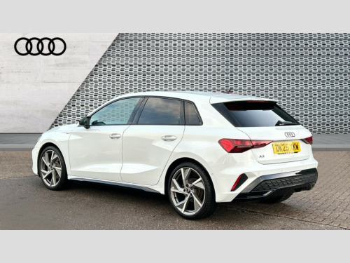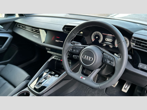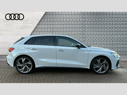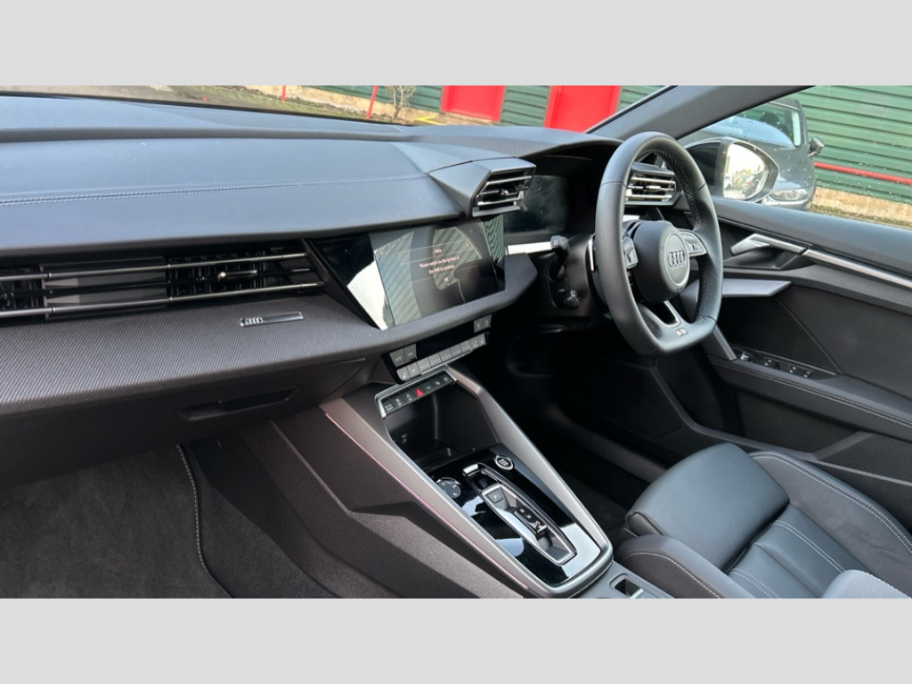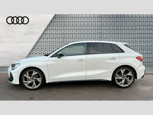 Audi A3 35 TFSI Black Edition 5dr S Tronic Adjustable speed limiter, Audi drive select, Audi smartphone interface with app store includes wireless Apple carplay, Android auto and Amazon alexa integration, Audi virtual cockpit plus - 12.3" full HD resolution dynamic digital instrument cluster, Automatic start/stop system with recuperation, Bluetooth interface, Camera based traffic sign recognition, Collision avoidance assistant, Cruise control, Distraction and Fatigue warning, e-Call (emergency call), Electromechanical power speed sensitive steering, Lane departure warning system, MMI Navigation Plus with high resolution 10.1" colour touch screen display, Park Assist with parking system Plus, Service indicator, Tailgate, Trip computer, Voice control system with natural language interaction, Sports suspension, Audi Phonebox light with wireless charging, Audi sound system - 10 loudspeakers including centre loudspeaker and subwoofer, DAB Digital radio, USB ports with charging function in the rear, Acoustic glass windscreen, Anthracite grey Audi rings (front and rear), Audi beam uses LEDs to project the Audi logo onto the ground as you exit your A3, Auto dimming frameless rear view mirror, Black accents front and rear bumpers, Black accents in the area of the Audi single frame grille, Black accents window trims strips, Electrically adjustable/heated/folding/auto dimming door mirrors with integrated LED indications + kerb view function for passenger side, Exterior model badging, Front electric windows, Heat insulating glass windscreen, Illuminated door sills with aluminium inserts at the front with S logo, LED 3rd brake light, LED daytime running lights, LED headlights with LED rear lights and dynamic rear indicators, Light and rain sensors, Privacy glass - dark tinted rear window, rear door and side windows, Rear electric windows, Rear side wing doors, Rear wiper, S roof spoiler, 12V socket and storage compartment in front centre console, 3 seat bench in 2nd row, 3 spoke flat bottomed leather multifunction sport steering wheel with gear shift paddles, 3-zone deluxe automatic air conditioning, 4 way electrically adjustable lumbar support for driver and front passenger, 40/20/40 split folding rear seat bench, Black cloth headlining, Front and rear centre armrest in artificial leather, Front and rear centre armrest in artificial leather with contrasting stitching on armrests and instrument panel, Front and rear headrests, Front/rear floor mats, Heated front seats, Height and reach adjustable steering wheel, Manual boot compartment lid, Manually adjustable front seats, Rear cup holders, S badging on the steering wheel, Seat side bolsters, Single front passenger seat, Stainless steel pedals and front footrest in black, Twin leather upholstery with front sports seats S embossed logo, Aluminium interior elements pack - A3 Sportback, Multi-coloured LED interior lighting package - A3 Black Edition, 3x3 point rear seat belts, Driver and front passenger airbag with passenger airbag deactivation, Electronic Stabilisation Control (ESC) including ABS, ASR and EDL, First aid kit with warning triangle and 2 safety vests, Front side airbags with head airbags and interaction airbag, Hill hold assist, Pre-sense front with pedestrian and cyclist detection, Seatbelt monitoring, Tyre pressure loss indicator, Anti theft alarm, Anti-theft wheel bolts, Electronically operated child locks, Immobiliser, Remote central locking with safelock, Inlays in black Impressum woven textile