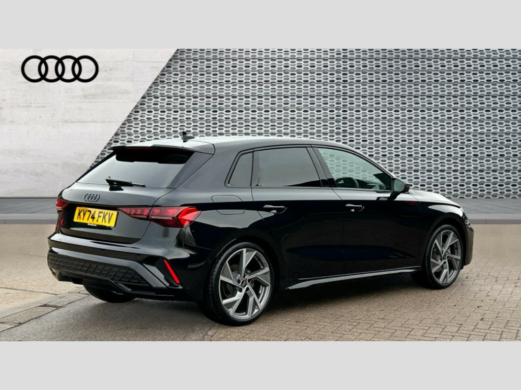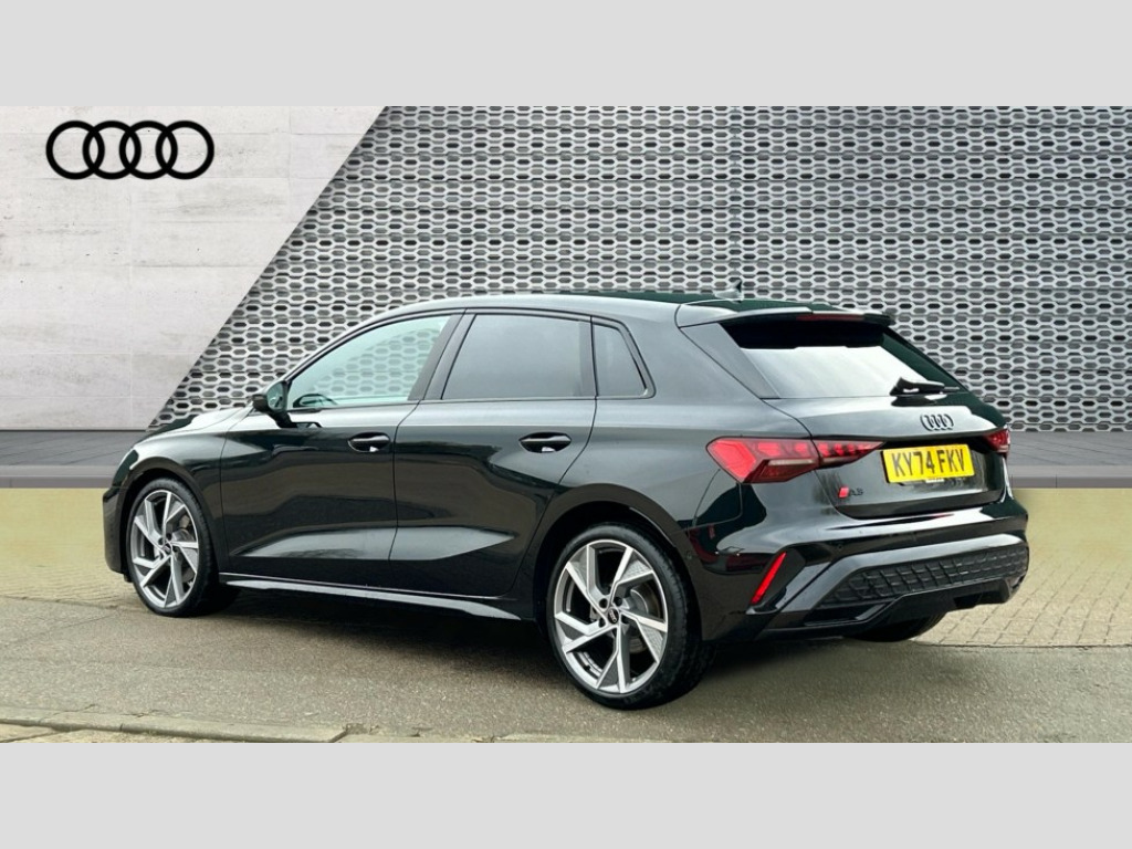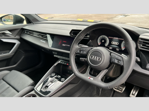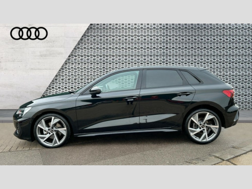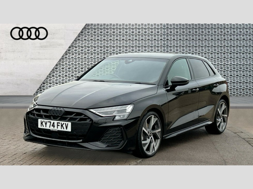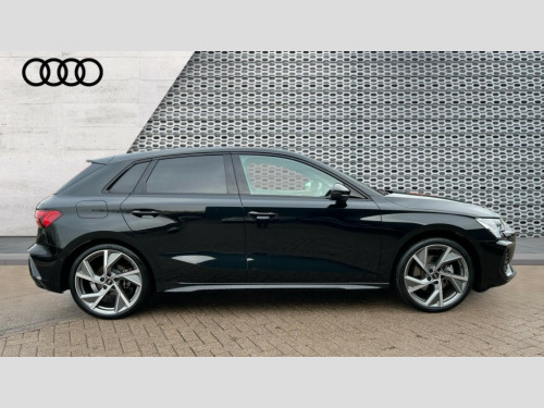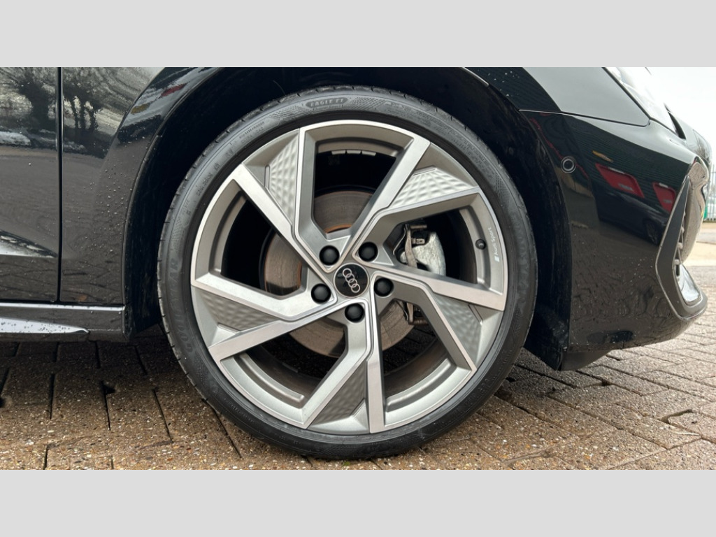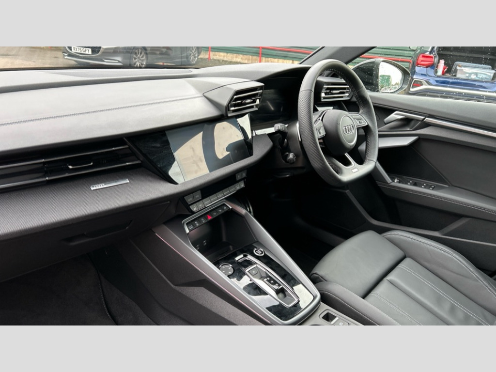 Audi A3 35 TFSI Black Edition 5dr S Tronic Adjustable speed limiter, Audi drive select, Audi smartphone interface with app store includes wireless Apple carplay, Android auto and Amazon alexa integration, Audi virtual cockpit plus - 12.3" full HD resolution dynamic digital instrument cluster, Automatic start/stop system with recuperation, Bluetooth interface, Camera based traffic sign recognition, Collision avoidance assistant, Cruise control, Distraction and Fatigue warning, e-Call (emergency call), Electromechanical power speed sensitive steering, Lane departure warning system, MMI Navigation Plus with high resolution 10.1" colour touch screen display, Park Assist with parking system Plus, Service indicator, Tailgate, Trip computer, Voice control system with natural language interaction, Sports suspension, Audi Phonebox light with wireless charging, Audi sound system - 10 loudspeakers including centre loudspeaker and subwoofer, DAB Digital radio, USB ports with charging function in the rear, Acoustic glass windscreen, Anthracite grey Audi rings (front and rear), Audi beam uses LEDs to project the Audi logo onto the ground as you exit your A3, Auto dimming frameless rear view mirror, Black accents front and rear bumpers, Black accents in the area of the Audi single frame grille, Black accents window trims strips, Electrically adjustable/heated/folding/auto dimming door mirrors with integrated LED indications + kerb view function for passenger side, Exterior model badging, Front electric windows, Heat insulating glass windscreen, Illuminated door sills with aluminium inserts at the front with S logo, LED 3rd brake light, LED daytime running lights, LED headlights with LED rear lights and dynamic rear indicators, Light and rain sensors, Privacy glass - dark tinted rear window, rear door and side windows, Rear electric windows, Rear side wing doors, Rear wiper, S roof spoiler, 12V socket and storage compartment in front centre console, 3 seat bench in 2nd row, 3 spoke flat bottomed leather multifunction sport steering wheel with gear shift paddles, 3-zone deluxe automatic air conditioning, 4 way electrically adjustable lumbar support for driver and front passenger, 40/20/40 split folding rear seat bench, Black cloth headlining, Front and rear centre armrest in artificial leather, Front and rear headrests, Front/rear floor mats, Heated front seats, Height and reach adjustable steering wheel, Manual boot compartment lid, Manually adjustable front seats, Rear cup holders, S badging on the steering wheel, Seat side bolsters, Single front passenger seat, Stainless steel pedals and front footrest in black, Twin leather upholstery with front sports seats S embossed logo, Aluminium interior elements pack - A3 Sportback, Multi-coloured LED interior lighting package - A3 Black Edition, 3x3 point rear seat belts, Driver and front passenger airbag with passenger airbag deactivation, Electronic Stabilisation Control (ESC) including ABS, ASR and EDL, First aid kit with warning triangle and 2 safety vests, Front side airbags with head airbags and interaction airbag, Hill hold assist, Pre-sense front with pedestrian and cyclist detection, Seatbelt monitoring, Tyre pressure loss indicator, Anti theft alarm, Anti-theft wheel bolts, Electronically operated child locks, Immobiliser, Remote central locking with safelock, Inlays in black Impressum woven textile