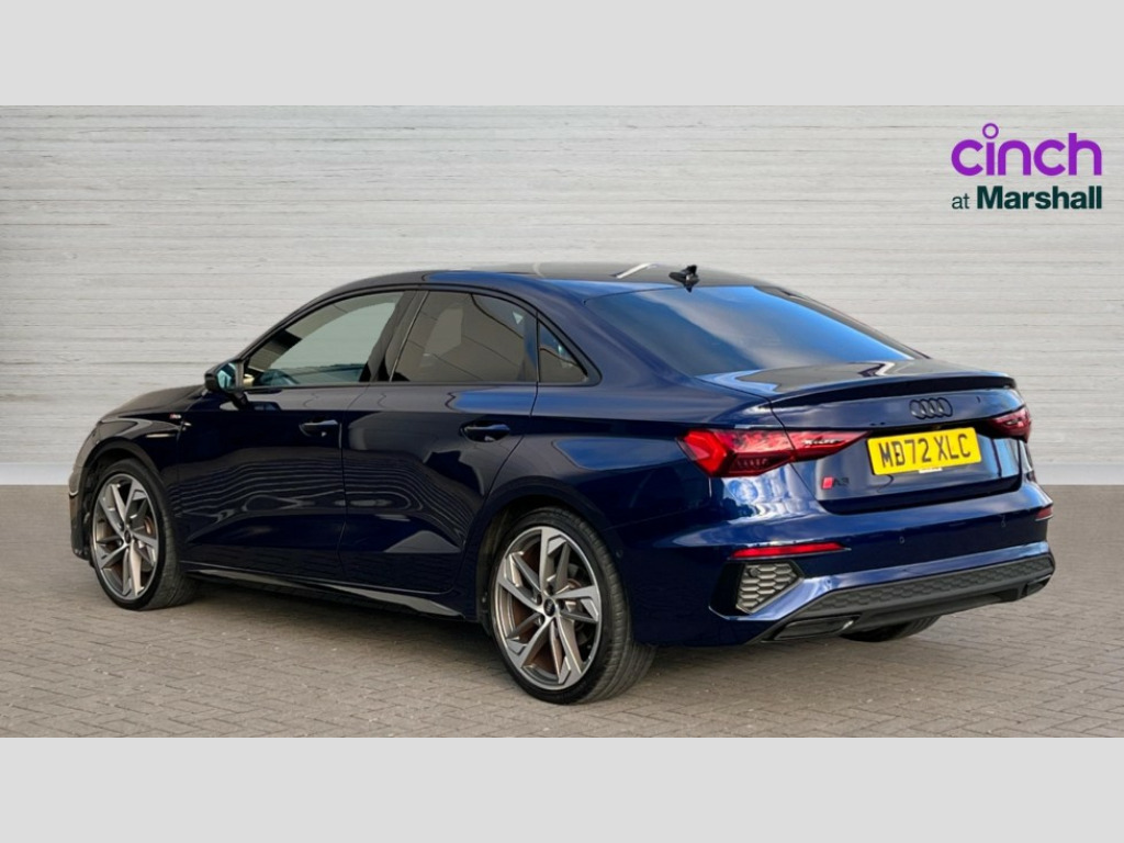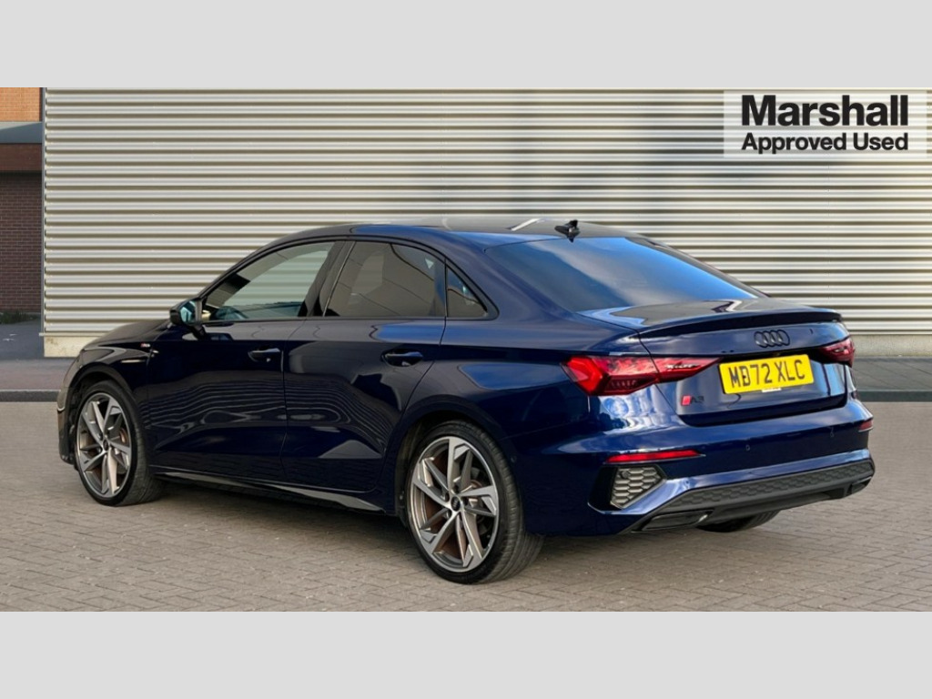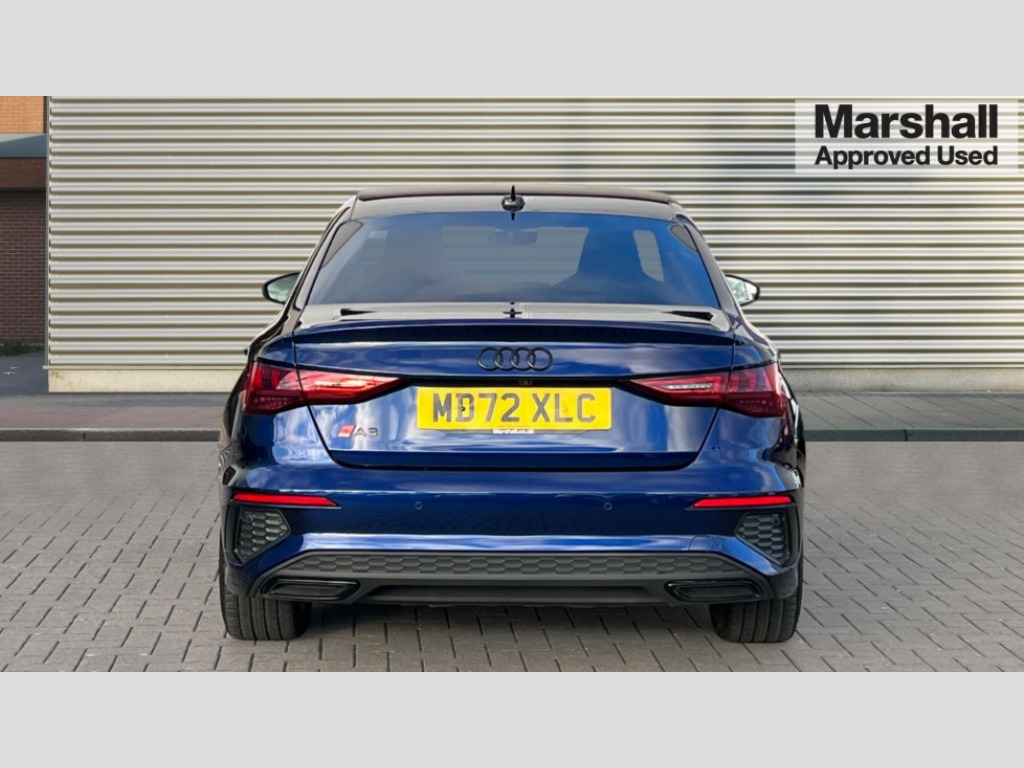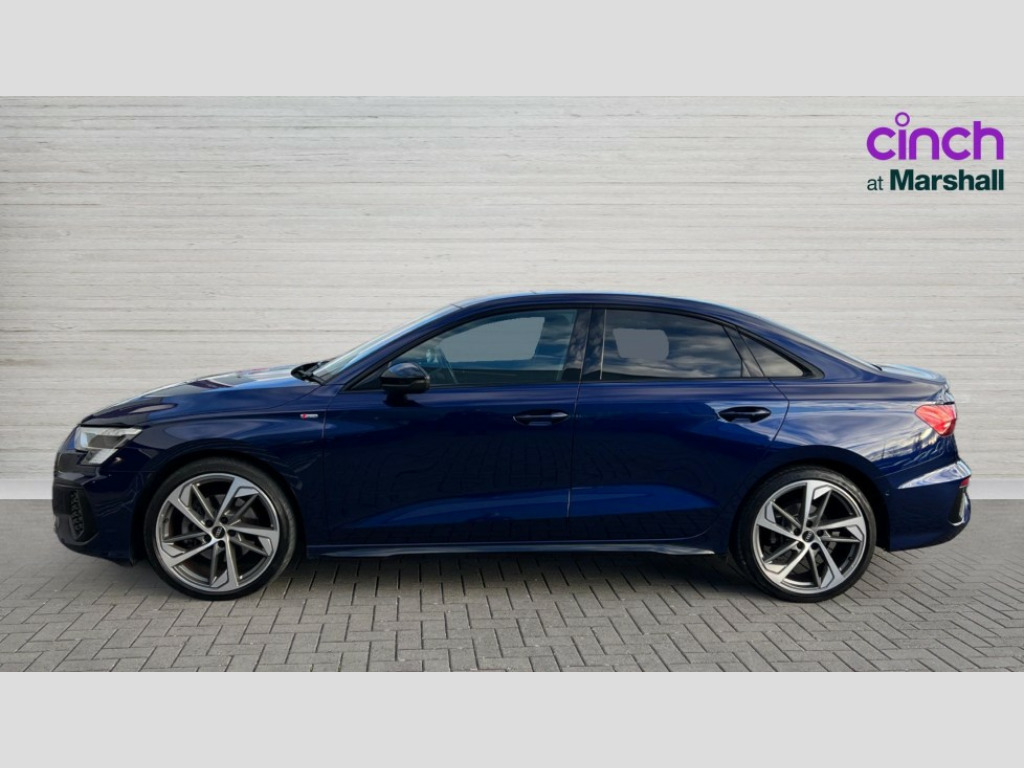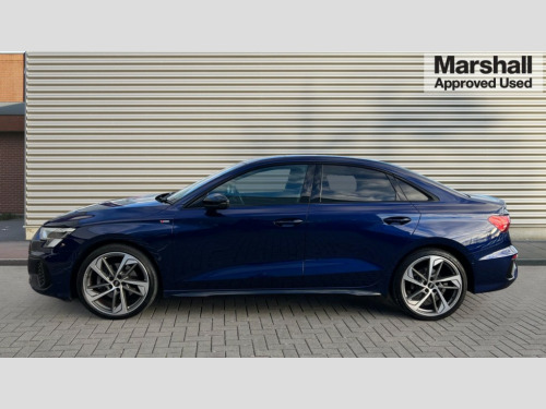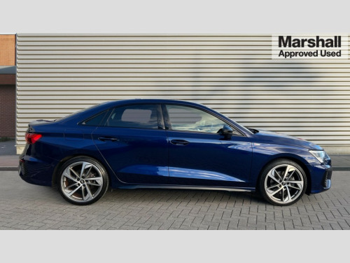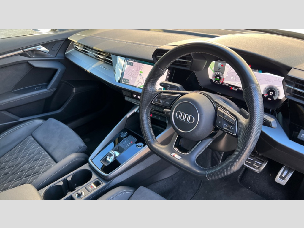Audi A3 35 TFSI Edition 1 4dr S Tronic Audi connect emergency call and service, Audi drive select (Auto, Comfort, Dynamic, Efficiency and Individual), Audi smartphone interface, Audi virtual cockpit plus - 12.3" dynamic digital instrument cluster, Automatic start/stop system with recuperation, Bluetooth interface, Collision avoidance assistant, Electromechanical power speed sensitive steering, Lane departure warning system, MMI Navigation Plus with high resolution 10.1" colour touch screen display, Service indicator, Voice control system with natural language interaction, Sports suspension, 2x USB Type C ports (for charging and data transfer), 6 passive loudspeakers, CD player, DAB Digital radio, 3rd brake light, Acoustic glass windscreen, Audi matrix LED headlights, LED rear lights, dynamic front and rear indicators and headlight cleaning system, Auto dimming frameless rear view mirror, Electrically adj heated/folding + automatically dimming exterior mirrors + automatic kerb side function for passenger side exterior mirror, Front electric windows, Illuminated door sills with aluminium inserts at the front with S logo, Integrated LED indicators in door mirrors, LED daytime running lights, Light and rain sensors, Model and engine designation badges at rear, Privacy glass - dark tinted rear window, rear door and side windows, Rear boot, Rear electric windows, Rear side wing doors, S roof spoiler, 12V socket and storage compartment in front centre console, 3 seat bench in 2nd row, 4 way electrically adjustable lumbar support for driver and front passenger, 40/20/40 split folding rear seat bench with cupholder, Black cloth headlining, Dual zone electronic climate control, Electrically adjustable front seats, Front and rear centre armrest in leather, Front and rear headrests, Front/rear floor mats, Heated front seats, Height and reach adjustable steering wheel, Illuminated vanity mirror, Interior lighting - glove compartment light and right hand side, Luggage compartment floor covering, Single front passenger seat, Stainless steel pedals and front footrest in black, Aluminium interior elements pack - A3, Dinamica microfibre/mono.pur 550 artificial leather pack - A3 Saloon, Extended ambient lighting pack - A3/S3 Saloon, LED interior lighting pack - A3 Saloon, 3x3 point rear seat belts, Driver and front passenger airbag with passenger airbag deactivation, Electronic Stabilisation Control (ESC) including ABS, ASR and EDL, First aid kit with warning triangle and 2 safety vests, Front side airbags with head airbags and interaction airbag, Hill hold assist, Pre-sense front with pedestrian and cyclist detection, Seatbelt monitoring, Tyre pressure loss indicator, Anti theft alarm, Anti-theft wheel bolts, Electronically operated child locks, Immobiliser, Remote control central locking, Aluminium air vent surrounds, Aluminium trim elements, Dark spectrum aluminium inlays, accent surfaces in the dashboard and centre console in platinum grey silk effect paint finish, 19" 5 arm trapezoid design alloy wheels in titanium matt grey with diamond cut finish