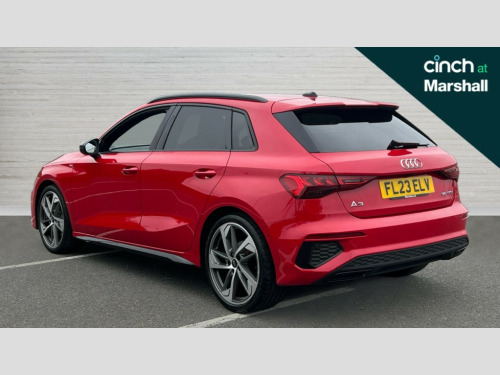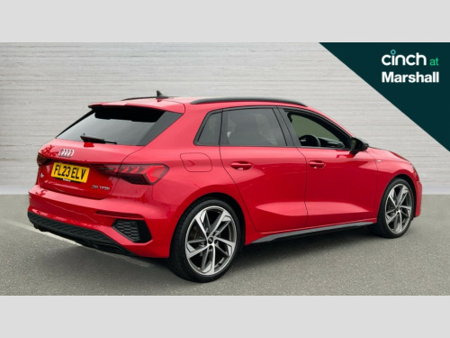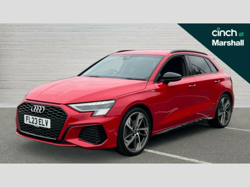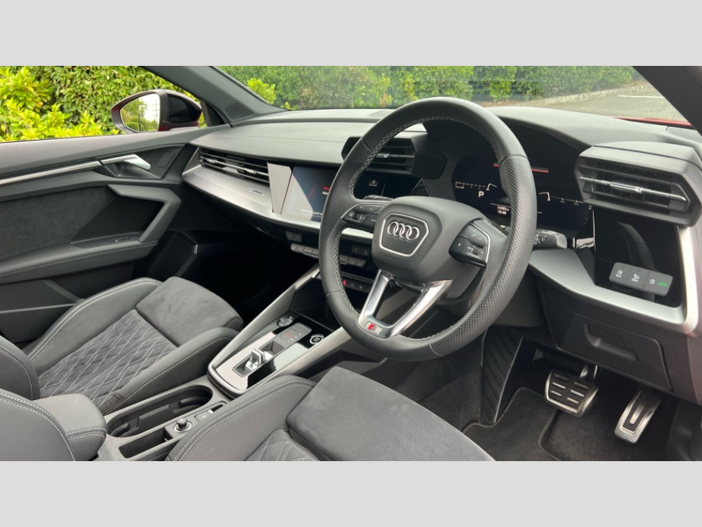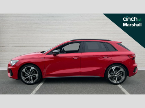 Audi A3 35 TFSI Edition 1 5dr S Tronic Audi drive select (Auto, Comfort, Dynamic, Efficiency and Individual), Audi smartphone interface, Audi virtual cockpit plus - 12.3" full HD resolution dynamic digital instrument cluster, Automatic start/stop system with recuperation, Bluetooth interface, Collision avoidance assistant, e-Call (emergency call), Electromechanical power speed sensitive steering, Lane departure warning system, MMI Navigation Plus with high resolution 10.1" colour touch screen display, Service indicator, Trip computer, Voice control system with natural language interaction, Sports suspension, 2xUSB-C connection with data and charging functions, 6 passive loudspeakers, DAB Digital radio, 3rd brake light, Acoustic glass windscreen, Audi matrix LED headlights, LED rear lights, dynamic front and rear indicators and headlight cleaning system, Auto dimming frameless rear view mirror, Body colour front spoiler blade, Electrically adj heated/folding + automatically dimming exterior mirrors + automatic kerb side function for passenger side exterior mirror, Front electric windows, Illuminated aluminium inserts front door sills with S logo, Integrated LED indicators in door mirrors, LED daytime running lights, Light and rain sensors, Privacy glass - dark tinted rear window, rear door and side windows, Rear diffuser in grained matt black, Rear electric windows, Rear side air outlets in grained matt black, Rear side wing doors, Rear wiper, S roof spoiler, 12V socket and storage compartment in front centre console, 3 seat bench in 2nd row, 4 way electrically adjustable lumbar support for driver and front passenger, 40/20/40 split folding rear seat bench with cupholder, Black cloth headlining, Dual zone electronic climate control, Electrically adjustable front seats for driver's side, Front and rear headrests, Front/rear floor mats, Heated front seats, Height and reach adjustable steering wheel, Illuminated vanity mirror, Interior lighting - glove compartment light and right hand side, Luggage compartment floor covering, Manual boot compartment lid, Seat side bolsters, Single front passenger seat, Stainless steel pedals and front footrest in black, Aluminium interior elements pack - A3 Sportback, Black styling pack - A3 Sportback, Dinamica microfibre/mono.pur 550 artificial leather pack - A3 Sportback, Extended ambient lighting pack - A3 Sportback, LED interior lighting pack - A3 Sportback, 3x3 point rear seat belts, Audi pre sense front, Driver and front passenger airbag with passenger airbag deactivation, Electronic Stabilisation Control (ESC) including ABS, ASR and EDL, First aid kit with warning triangle and 2 safety vests, Front side airbags with head airbags and interaction airbag, Pre-sense front with pedestrian and cyclist detection, Seatbelt monitoring, Tyre pressure loss indicator, Anti theft alarm, Anti-theft wheel bolts, Electronically operated child lock, Immobiliser, Remote control central locking, Accent surfaces in the dashboard and centre console in platinum grey silk effect paint finish, Dark spectrum aluminium inlays, 19" 5 arm trapezoid design alloy wheels in matt grey with diamond cut finish
