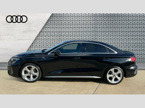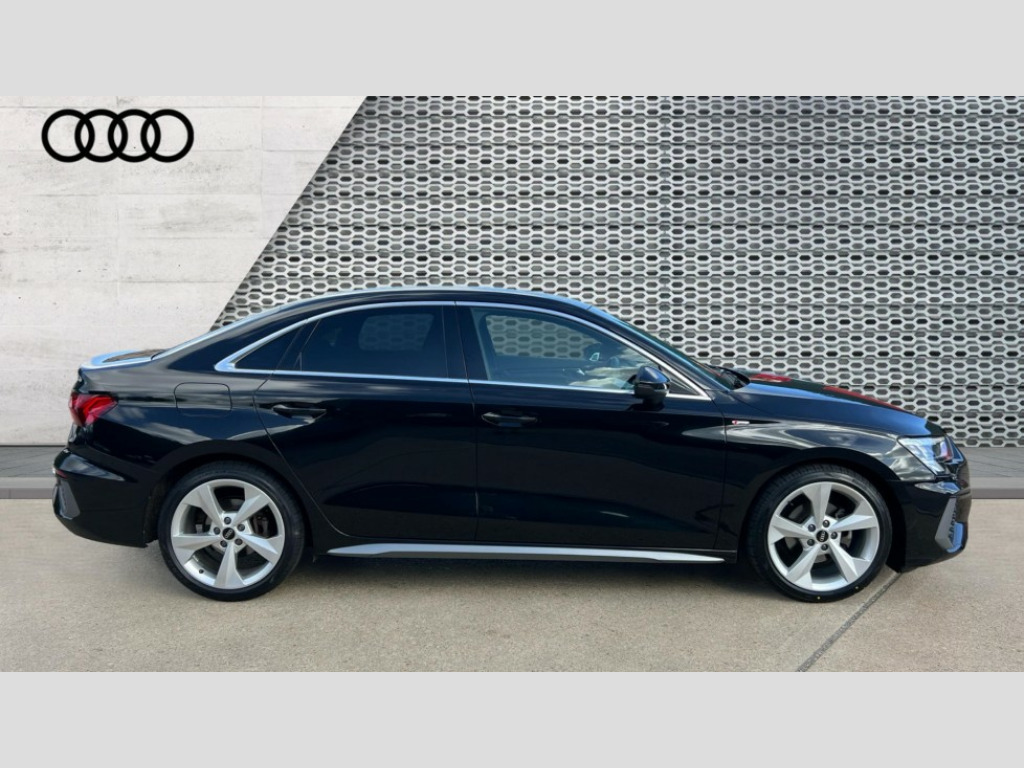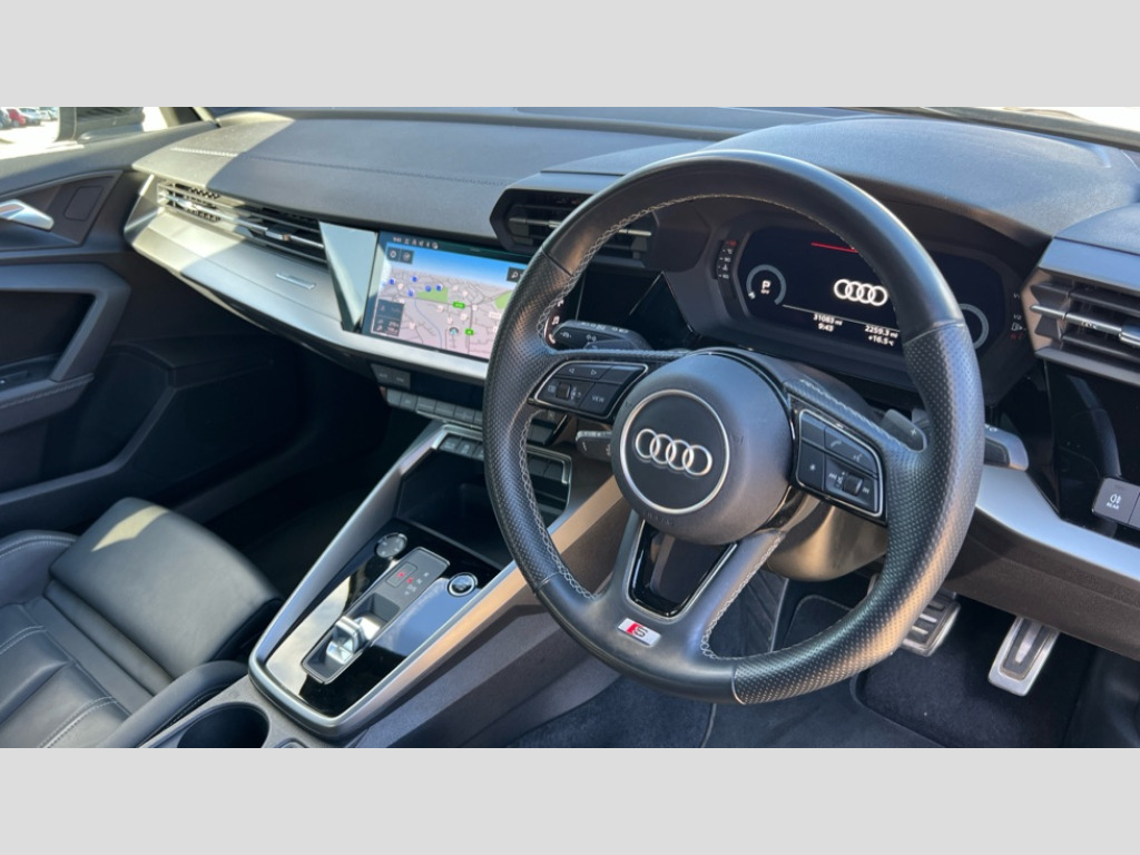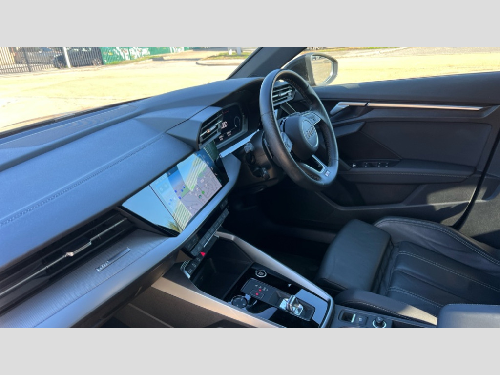 Audi A3 35 TFSI S Line 4dr S Tronic Audi connect emergency call and service, Audi drive select (Auto, Comfort, Dynamic, Efficiency and Individual), Audi smartphone interface, Audi Virtual Cockpit - 10.25" digital and colour instrument cluster, Automatic start/stop system with recuperation, Bluetooth interface, Collision avoidance assistant, Electromechanical power speed sensitive steering, Lane departure warning system, MMI Navigation Plus with high resolution 10.1" colour touch screen display, Service indicator, Voice control system with natural language interaction, 2x USB Type C ports (for charging and data transfer), 6 passive loudspeakers, CD player, DAB Digital radio, 3rd brake light, Acoustic glass windscreen, Aluminium window trim, Auto dimming frameless rear view mirror, Electrically adjustable/heated/folding/auto dimming door mirrors with integrated LED indications + kerb view function for passenger side, Front electric windows, Illuminated door sills with aluminium inserts at the front with S logo, LED daytime running lights, LED headlights with LED rear lights and dynamic rear indicators, Light and rain sensors, Model and engine designation badges at rear, Privacy glass - dark tinted rear window, rear door and side windows, Rear electric windows, S line bumpers, S roof spoiler, 12V socket and storage compartment in front centre console, 40/20/40 split folding rear seat bench with cupholder, Black cloth headlining, Dual zone electronic climate control, Front and rear centre armrest in leather, Front and rear headrests, Front/rear floor mats, Height and reach adjustable steering wheel, Interior lighting - glove compartment light and right hand side, Luggage compartment floor covering, Manual boot compartment lid, Manually adjustable front sport seats, Seat side bolsters, Stainless steel pedals and front footrest, Twin leather upholstery with front sports seats S embossed logo, Aluminium interior elements pack - A3, S line styling pack - A3 Saloon, 3x3 point rear seat belts, Driver and front passenger airbag with passenger airbag deactivation, Electronic Stabilisation Control (ESC) including ABS, ASR and EDL, First aid kit with warning triangle and 2 safety vests, Front side airbags with head airbags and interaction airbag, Hill hold assist, Pre-sense front with pedestrian and cyclist detection, Seatbelt monitoring, Tyre pressure loss indicator, Anti theft alarm, Anti-theft wheel bolts, Electronically operated child lock, Immobiliser, Remote control central locking, Aluminium air vent surrounds, Aluminium trim elements, Dark spectrum aluminium inlays, accent surfaces in the dashboard and centre console in platinum grey silk effect paint finish