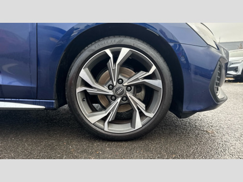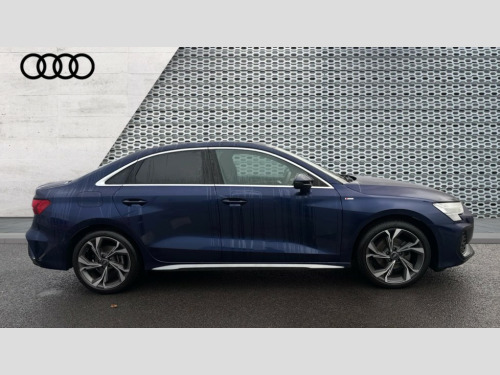 Audi A3 35 TFSI S Line 4dr S Tronic Adjustable speed limiter, Audi drive select, Audi smartphone interface with app store includes wireless Apple carplay, Android auto and Amazon alexa integration, Audi virtual cockpit plus - 12.3" full HD resolution dynamic digital instrument cluster, Automatic start/stop system with recuperation, Bluetooth interface, Camera based traffic sign recognition, Collision avoidance assistant, Cruise control, Distraction and Fatigue warning, e-Call (emergency call), Electromechanical power speed sensitive steering, Emergency assist, Lane departure warning system, MMI Navigation Plus with high resolution 10.1" colour touch screen display, Park Assist with parking system Plus, Service indicator, Trip computer, Voice control system with natural language interaction, Sports suspension, Audi Phonebox light with wireless charging, Audi sound system - 10 loudspeakers including centre loudspeaker and subwoofer, DAB Digital radio, USB ports with charging function in the rear, Acoustic glass windscreen, All weather light, Aluminium window trim, Auto dimming frameless rear view mirror, Automatic dynamic range control, Body colour exterior mirrors, Chrome exhaust tailpipes, Dipped beam, main beam, position light and turning light, Electrically adjustable/heated/folding/auto dimming door mirrors with integrated LED indications + kerb view function for passenger side, Exterior model badging, Front and rear side air inlets in grained matt black with dark liquid chrome frame, Front electric windows, Front radiator grill in high gloss dark chrome, Heat insulating glass windscreen, Illuminated door sills with aluminium inserts at the front with S logo, Intersection light, LED 3rd brake light, LED brake lights, LED daytime running x3, LED headlights with LED rear lights and dynamic rear indicators, LED rear number plate lights, LED reverse light, LED tail lights, Light and rain sensors, Manoeuvring light, Motorway light, Privacy glass - dark tinted rear window, rear door and side windows, Rear boot, Rear diffuser and grill in grained matt black with inlay in dark liquid chrome, Rear electric windows, Rear side wing doors, S line bumpers, Side S line emblems on front wings, Side sill trim in dark liquid chrome, Static cornering light, 12V socket and storage compartment in front centre console, 3 seat bench in 2nd row, 3 spoke flat bottomed leather multifunction sport steering wheel with gear shift paddles, 3-zone deluxe automatic air conditioning, 4 way electrically adjustable lumbar support for driver and front passenger, 40/20/40 split folding rear seat bench, Black cloth headlining, Black front and rear floor mats, Front and rear centre armrest in artificial leather with contrasting stitching on armrests and instrument panel, Front and rear headrests, Heated front seats, Height and reach adjustable steering wheel, Manual boot compartment lid, Manually adjustable front seats, Rear centre armrest with cupholder, S badging on the steering wheel, Seat side bolsters, Single front passenger seat, Stainless steel pedals and front footrest in black, Twin leather upholstery with front sports seats S embossed logo, Aluminium interior elements pack - A3, Multi-coloured LED interior lighting package with Multi-coloured contour lighting of instrument panel - A3, 3x3 point rear seat belts, Driver and front passenger airbag with passenger airbag deactivation, Electronic Stabilisation Control (ESC) including ABS, ASR and EDL, First aid kit with warning triangle and 2 safety vests, Front side airbags with head airbags and interaction airbag, Hill hold assist, Pre-sense front with pedestrian and cyclist detection, Seatbelt monitoring, Tyre pressure loss indicator, Anti theft alarm, Anti-theft wheel bolts, Electronically operated child locks, Immobiliser, Remote central locking with safelock, Black dashboard, Inlay in dark aluminium spectrum