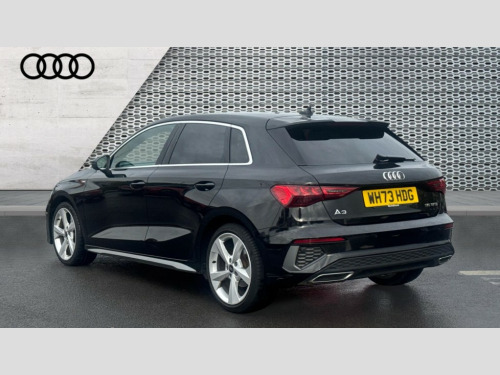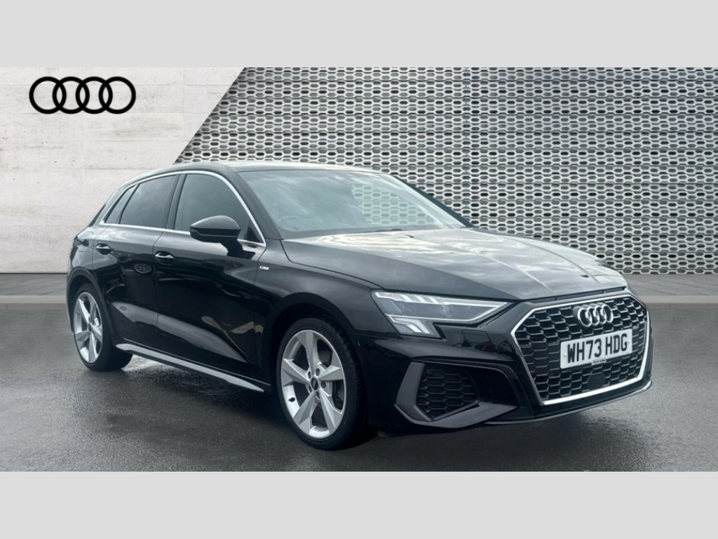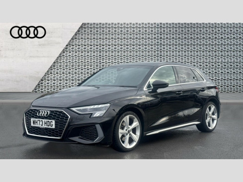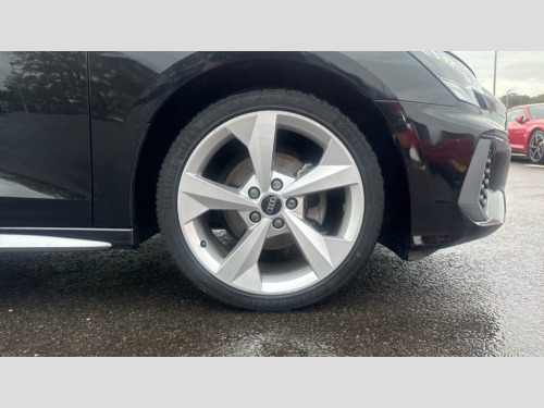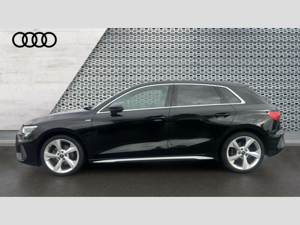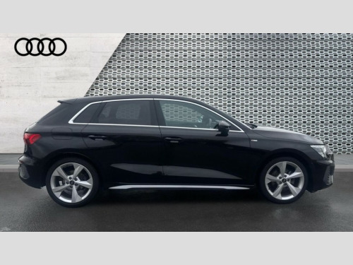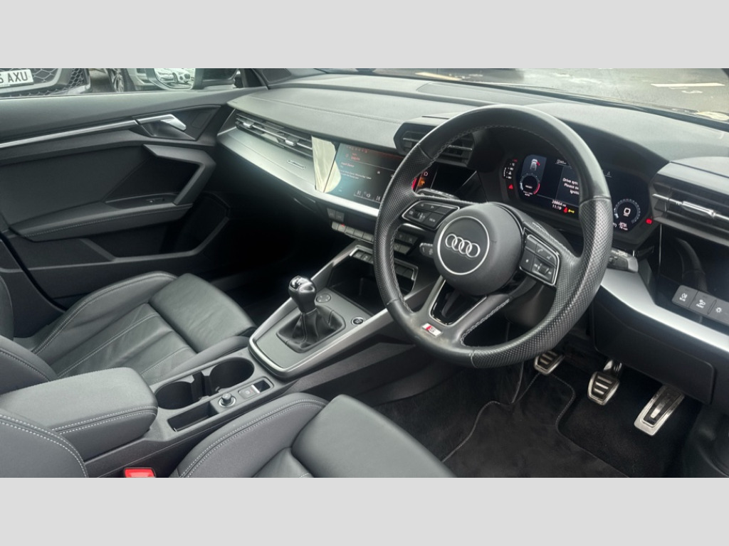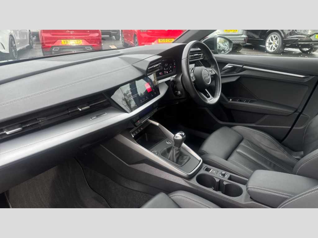 Audi A3 35 TFSI S Line 5dr Audi drive select (Auto, Comfort, Dynamic, Efficiency and Individual), Audi smartphone interface, Audi Virtual Cockpit - 10.25" digital and colour instrument cluster, Automatic start/stop system with recuperation, Bluetooth interface, Camera based traffic sign recognition, Collision avoidance assistant, Cruise control, e-Call (emergency call), Electromechanical power speed sensitive steering, Lane departure warning system, MMI Navigation Plus with high resolution 10.1" colour touch screen display, Rear parking sensors, Service indicator, Trip computer, Voice control system with natural language interaction, Sports suspension, 2xUSB-C connection with data and charging functions, 6 passive loudspeakers, DAB Digital radio, 3rd brake light, Acoustic glass windscreen, Aluminium window trim, Auto dimming frameless rear view mirror, Body colour exterior mirrors, Electrically adjustable/heated/folding/auto dimming door mirrors with integrated LED indications + kerb view function for passenger side, Front electric windows, Illuminated door sills with aluminium inserts at the front with S logo, LED daytime running lights, LED headlights with LED rear lights and dynamic rear indicators, Light and rain sensors, Privacy glass - dark tinted rear window, rear door and side windows, Rear electric windows, Rear side air outlets in grained matt black, Rear side wing doors, Rear wiper, S line bumpers, S roof spoiler, 12V socket and storage compartment in front centre console, 3 seat bench in 2nd row, 3 spoke leather multifunction steering wheel, 4 way electrically adjustable lumbar support for driver and front passenger, 60/40 split folding rear seat bench, Black cloth headlining, Dual zone electronic climate control, Front and rear centre armrest in artificial leather, Front and rear headrests, Front/rear floor mats, Height and reach adjustable steering wheel, Interior lighting - glove compartment light and right hand side, Luggage compartment floor covering, Manual boot compartment lid, Manually adjustable front seats, Seat side bolsters, Single front passenger seat, Stainless steel pedals and front footrest in black, Twin leather upholstery with front sports seats S embossed logo, Aluminium interior elements pack - A3 Sportback, LED interior lighting pack - A3 Sportback, S line styling pack - A3 Sportback, 3x3 point rear seat belts, Driver and front passenger airbag with passenger airbag deactivation, Electronic Stabilisation Control (ESC) including ABS, ASR and EDL, First aid kit with warning triangle and 2 safety vests, Front side airbags with head airbags and interaction airbag, Pre-sense front with pedestrian and cyclist detection, Seatbelt monitoring, Tyre pressure loss indicator, Anti theft alarm, Anti-theft wheel bolts, Electronically operated child locks, Immobiliser, Remote control central locking, Dark spectrum aluminium inlays, accent surfaces in the dashboard and centre console in platinum grey silk effect paint finish