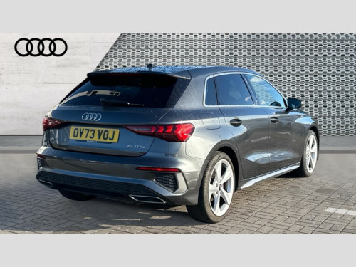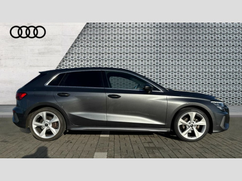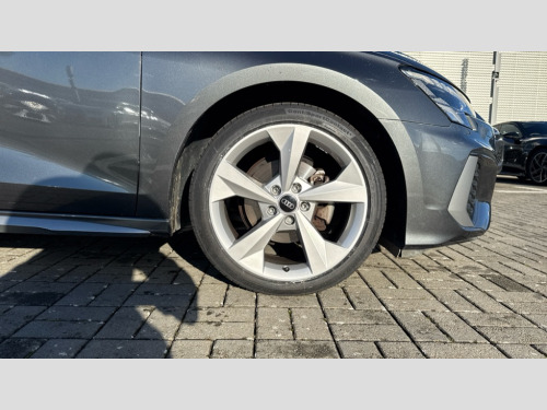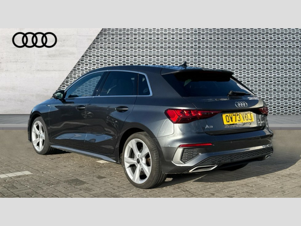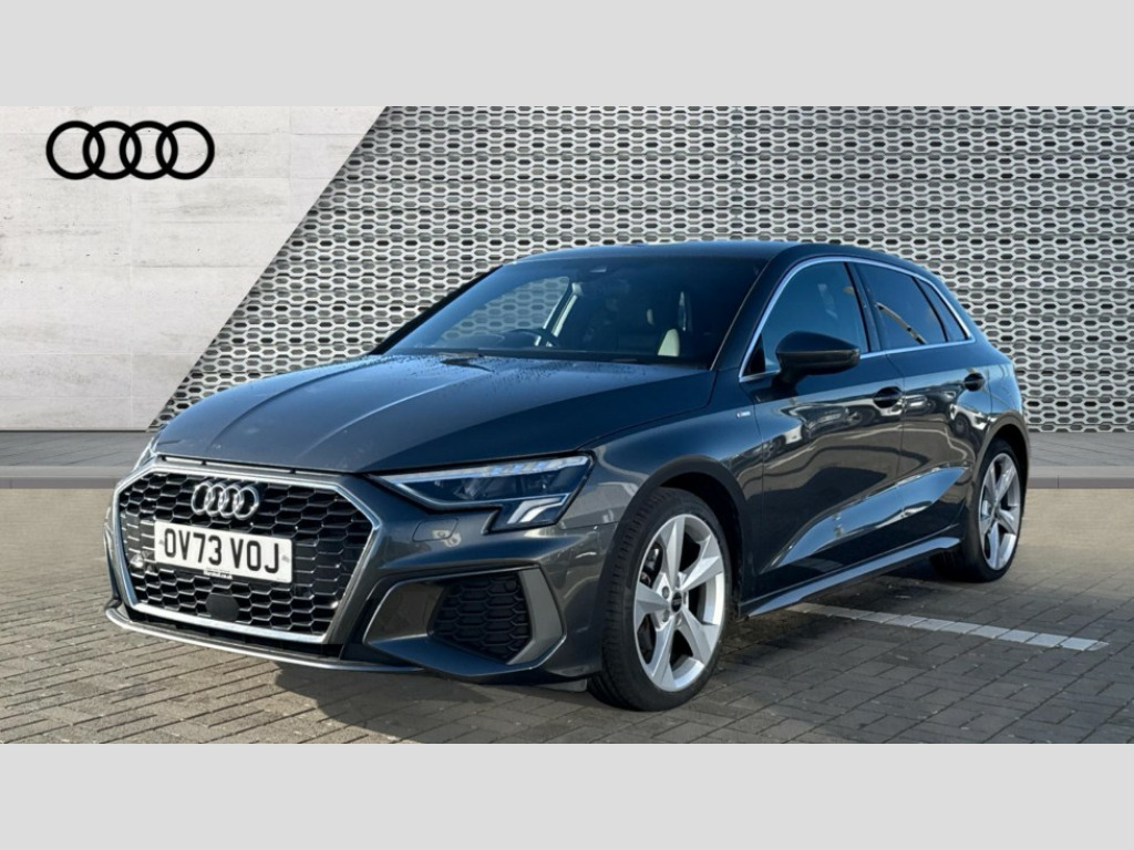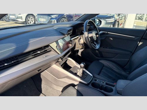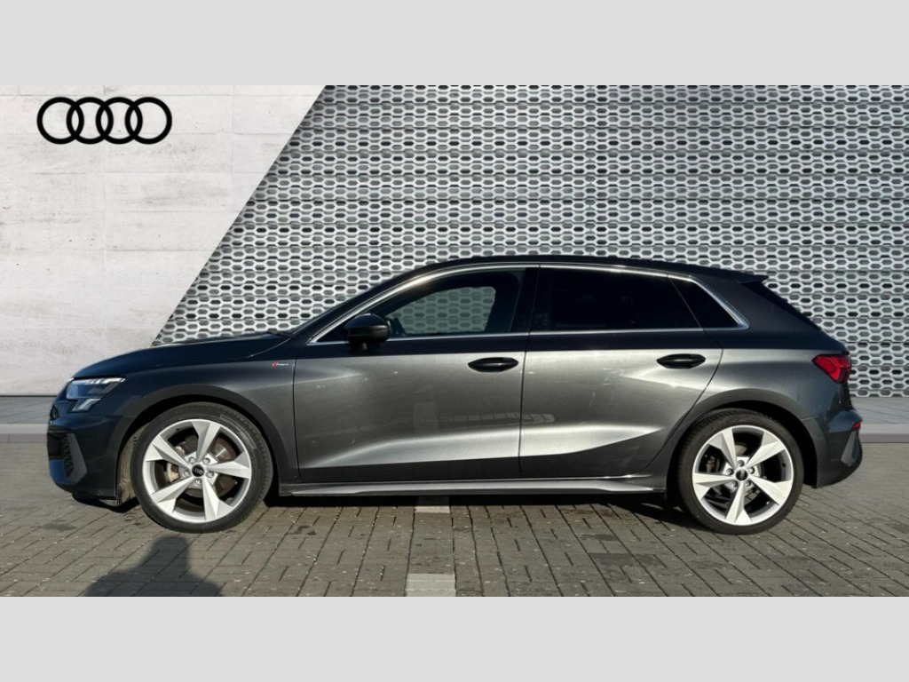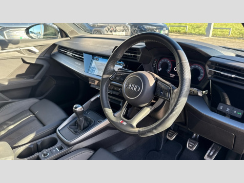 Audi A3 35 TFSI S Line 5dr Audi drive select (Auto, Comfort, Dynamic, Efficiency and Individual), Audi smartphone interface, Audi Virtual Cockpit - 10.25" digital and colour instrument cluster, Automatic start/stop system with recuperation, Bluetooth interface, Camera based traffic sign recognition, Collision avoidance assistant, Cruise control, e-Call (emergency call), Electromechanical power speed sensitive steering, Lane departure warning system, MMI Navigation Plus with high resolution 10.1" colour touch screen display, Rear parking sensors, Service indicator, Trip computer, Voice control system with natural language interaction, Sports suspension, 2xUSB-C connection with data and charging functions, 6 passive loudspeakers, DAB Digital radio, 3rd brake light, Acoustic glass windscreen, Aluminium window trim, Auto dimming frameless rear view mirror, Body colour exterior mirrors, Electrically adjustable/heated/folding/auto dimming door mirrors with integrated LED indications + kerb view function for passenger side, Front electric windows, Illuminated door sills with aluminium inserts at the front with S logo, LED daytime running lights, LED headlights with LED rear lights and dynamic rear indicators, Light and rain sensors, Privacy glass - dark tinted rear window, rear door and side windows, Rear electric windows, Rear side air outlets in grained matt black, Rear side wing doors, Rear wiper, S line bumpers, S roof spoiler, 12V socket and storage compartment in front centre console, 3 seat bench in 2nd row, 3 spoke leather multifunction steering wheel, 4 way electrically adjustable lumbar support for driver and front passenger, 60/40 split folding rear seat bench, Black cloth headlining, Dual zone electronic climate control, Front and rear centre armrest in artificial leather, Front and rear headrests, Front/rear floor mats, Height and reach adjustable steering wheel, Interior lighting - glove compartment light and right hand side, Luggage compartment floor covering, Manual boot compartment lid, Manually adjustable front seats, Seat side bolsters, Single front passenger seat, Stainless steel pedals and front footrest in black, Twin leather upholstery with front sports seats S embossed logo, Aluminium interior elements pack - A3 Sportback, LED interior lighting pack - A3 Sportback, S line styling pack - A3 Sportback, 3x3 point rear seat belts, Driver and front passenger airbag with passenger airbag deactivation, Electronic Stabilisation Control (ESC) including ABS, ASR and EDL, First aid kit with warning triangle and 2 safety vests, Front side airbags with head airbags and interaction airbag, Pre-sense front with pedestrian and cyclist detection, Seatbelt monitoring, Tyre pressure loss indicator, Anti theft alarm, Anti-theft wheel bolts, Electronically operated child locks, Immobiliser, Remote control central locking, Dark spectrum aluminium inlays, accent surfaces in the dashboard and centre console in platinum grey silk effect paint finish