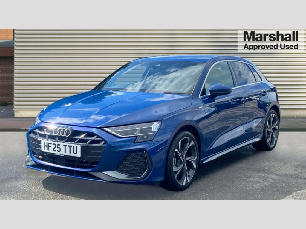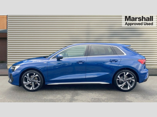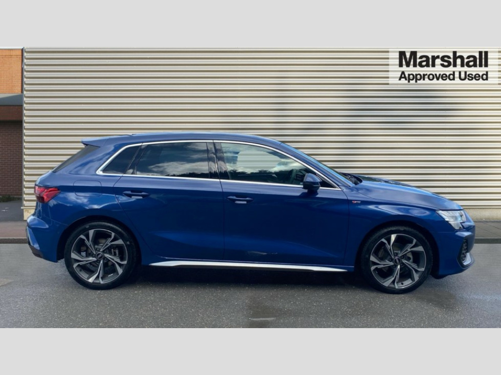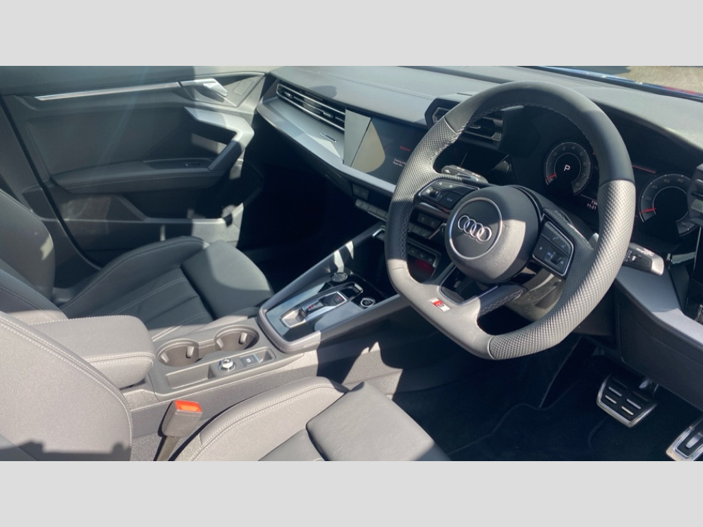 Audi A3 35 TFSI S Line 5dr S Tronic Adjustable speed limiter, Audi drive select, Audi smartphone interface with app store includes wireless Apple carplay, Android auto and Amazon alexa integration, Audi virtual cockpit plus - 12.3" full HD resolution dynamic digital instrument cluster, Automatic start/stop system with recuperation, Bluetooth interface, Camera based traffic sign recognition, Collision avoidance assistant, Cruise control, Distraction and Fatigue warning, e-Call (emergency call), Electromechanical power speed sensitive steering, Lane departure warning system, MMI Navigation Plus with high resolution 10.1" colour touch screen display, Park Assist with parking system Plus, Service indicator, Tailgate, Trip computer, Voice control system with natural language interaction, Sports suspension, Audi Phonebox light with wireless charging, Audi sound system - 10 loudspeakers including centre loudspeaker and subwoofer, DAB Digital radio, USB ports with charging function in the rear, Acoustic glass windscreen, Aluminium window trim, Auto dimming frameless rear view mirror, Body colour exterior mirrors, Chrome exhaust tailpipes, Electrically adjustable/heated/folding/auto dimming door mirrors with integrated LED indications + kerb view function for passenger side, Exterior model badging, Front and rear side air inlets in grained matt black with dark liquid chrome frame, Front electric windows, Front radiator grill in high gloss dark chrome, Heat insulating glass windscreen, Illuminated door sills with aluminium inserts at the front with S logo, LED 3rd brake light, LED daytime running lights, LED headlights with LED rear lights and dynamic rear indicators, Light and rain sensors, Privacy glass - dark tinted rear window, rear door and side windows, Rear diffuser and grill in grained matt black with inlay in dark liquid chrome, Rear electric windows, Rear side wing doors, Rear wiper, S line bumpers, S roof spoiler, Side S line emblems on front wings, Side sill trim in dark liquid chrome, 12V socket and storage compartment in front centre console, 3 seat bench in 2nd row, 3 spoke flat bottomed leather multifunction sport steering wheel with gear shift paddles, 3-zone deluxe automatic air conditioning, 4 way electrically adjustable lumbar support for driver and front passenger, 40/20/40 split folding rear seat bench, Black cloth headlining, Front and rear centre armrest in artificial leather, Front and rear centre armrest in artificial leather with contrasting stitching on armrests and instrument panel, Front and rear headrests, Front/rear floor mats, Heated front seats, Height and reach adjustable steering wheel, Manual boot compartment lid, Manually adjustable front seats, Rear cup holders, S badging on the steering wheel, Seat side bolsters, Single front passenger seat, Stainless steel pedals and front footrest in black, Twin leather upholstery with front sports seats S embossed logo, Aluminium interior elements pack - A3 Sportback, Multi-coloured LED interior lighting package - A3, 3x3 point rear seat belts, Driver and front passenger airbag with passenger airbag deactivation, Electronic Stabilisation Control (ESC) including ABS, ASR and EDL, First aid kit with warning triangle and 2 safety vests, Front side airbags with head airbags and interaction airbag, Hill hold assist, Pre-sense front with pedestrian and cyclist detection, Seatbelt monitoring, Tyre pressure loss indicator, Anti theft alarm, Anti-theft wheel bolts, Electronically operated child locks, Immobiliser, Remote central locking with safelock, Dash & door Inlay in dark aluminium Spectrum
