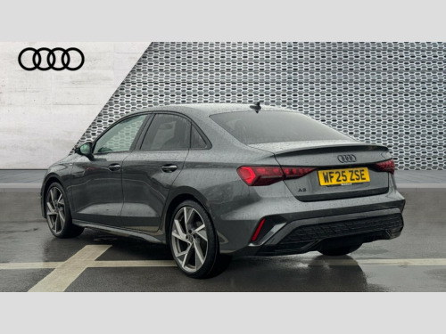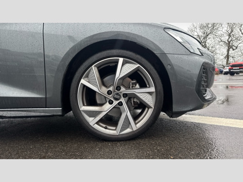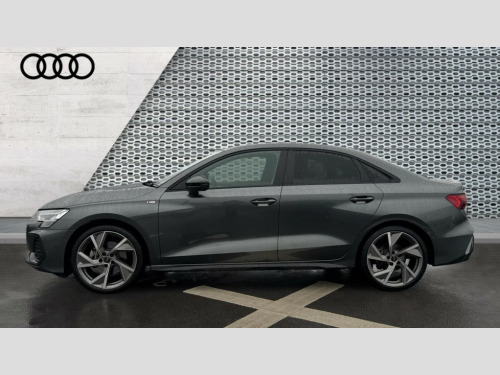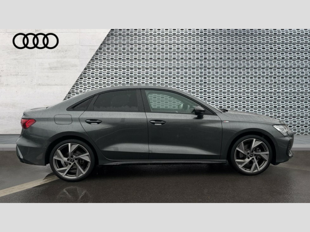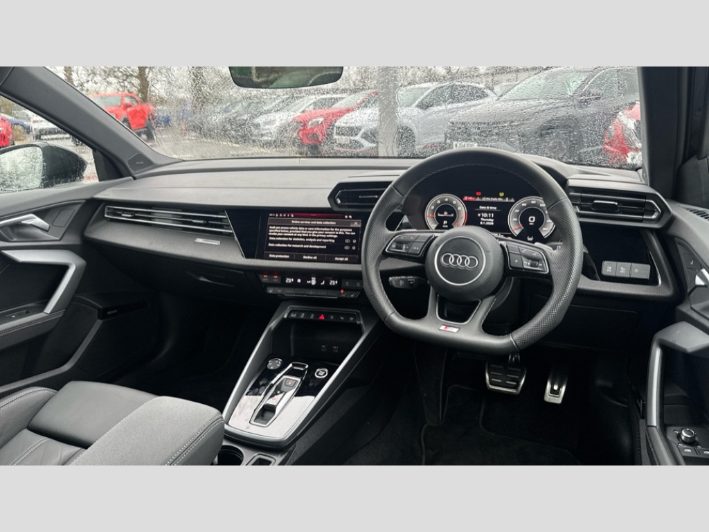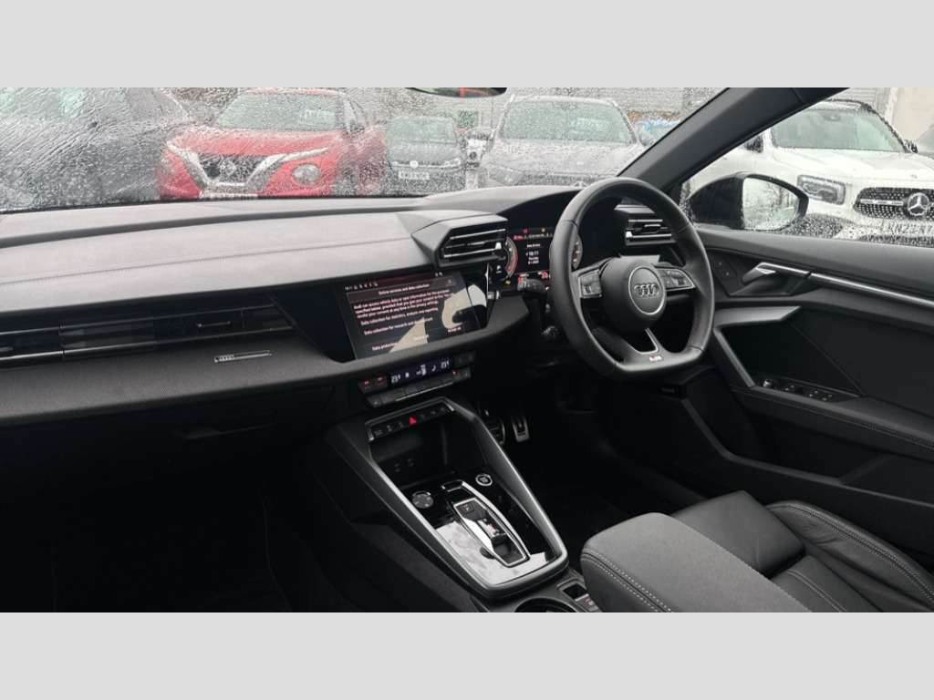 Audi A3 35 TFSI Black Edition 4dr S Tronic Adjustable speed limiter, Audi drive select, Audi smartphone interface with app store includes wireless Apple carplay, Android auto and Amazon alexa integration, Audi virtual cockpit plus - 12.3" full HD resolution dynamic digital instrument cluster, Automatic start/stop system with recuperation, Bluetooth interface, Camera based traffic sign recognition, Collision avoidance assistant, Distraction and Fatigue warning, e-Call (emergency call), Electromechanical power speed sensitive steering, Lane departure warning system, MMI Navigation Plus with high resolution 10.1" colour touch screen display, Park Assist with parking system Plus, Service indicator, Trip computer, Voice control system with natural language interaction, Standard suspension, Audi Phonebox light with wireless charging, DAB Digital radio, USB ports with charging function in the rear, 3rd brake light, Aluminium window trim, Auto dimming frameless rear view mirror, Body colour exterior mirrors, Dipped beam, main beam, position light and turning light, Electrically adjustable/heated/folding/auto dimming door mirrors with integrated LED indications + kerb view function for passenger side, Exterior model badging, Front electric windows, Front radiator grill in high gloss dark chrome, Front side air inlets in grained matt black with silver frame, Heat insulating glass windscreen, LED daytime running x3, Light and rain sensors, Rear boot, Rear diffuser and grill in grained matt black with silver frame, Rear electric windows, Rear side wing doors, Rear window, rear door windows and rear side windows in clear glass, 12V socket and storage compartment in front centre console, 3 seat bench in 2nd row, 3 spoke leather multifunction steering wheel with gear shift paddles, 3-zone deluxe automatic air conditioning, 4 way electrically adjustable lumbar support for driver and front passenger, 60/40 split folding rear seat bench, Black front and rear floor mats, Front and rear headrests, Front centre armrest, Front door sill trims with aluminium inlay, Heated front seats, Height and reach adjustable steering wheel, Manual boot compartment lid, Routine cloth upholstery with front sports seats, Seat side bolsters, Single front passenger seat, Steel grey cloth headlining, Aluminium interior elements pack - A3, LED interior lighting pack -A3, Technology package pro - A3 S Tronic, 3x3 point rear seat belts, Driver and front passenger airbag with passenger airbag deactivation, Electronic Stabilisation Control (ESC) including ABS, ASR and EDL, First aid kit with warning triangle and 2 safety vests, Front side airbags with head airbags and interaction airbag, Hill hold assist, Pre-sense front with pedestrian and cyclist detection, Seatbelt monitoring, Tyre pressure loss indicator, Anti theft alarm, Anti-theft wheel bolts, Electronically operated child locks, Immobiliser, Black dashboard, Inlays in volcano grey fine paint finish
