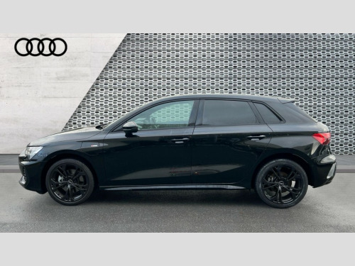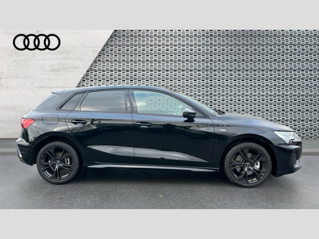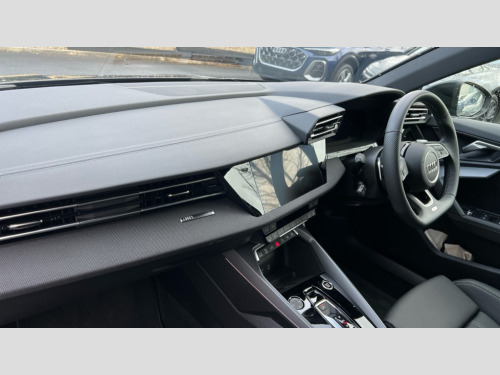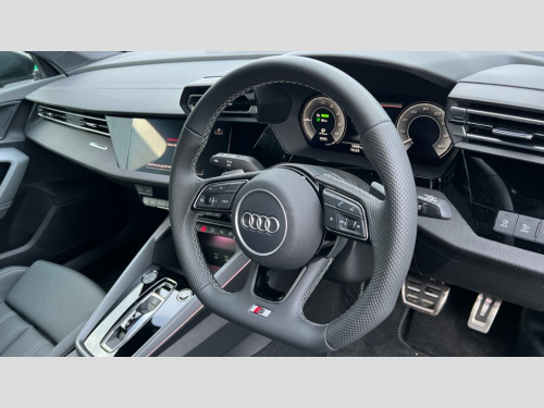 Audi A3 1.5 TFSI e 204 S Line 5dr S Tronic Adjustable speed limiter, Audi drive select, Audi smartphone interface with app store includes wireless Apple carplay, Android auto and Amazon alexa integration, Audi virtual cockpit plus - 12.3" full HD resolution dynamic digital instrument cluster, Automatic start/stop system with recuperation, Bluetooth interface, Camera based traffic sign recognition, Collision avoidance assistant, Cruise control, Distraction and Fatigue warning, e-Call (emergency call), Electromechanical power speed sensitive steering, Emergency assist, Lane departure warning system, MMI Navigation Plus with high resolution 10.1" colour touch screen display, Park Assist with parking system Plus, Service indicator, Trip computer, Voice control system with natural language interaction, 3 pin 10 amp domestic charging cable, CCS socket for DC charging, Charging cable for public charging, mode 3 (type 2), 32 A, Compact charging system, Industrial connector CEE 32 A, 230 V, length 1.6 m, Standard suspension, Type 2 socket for AC charging, Audi Phonebox light with wireless charging, Audi sound system - 10 loudspeakers including centre loudspeaker and subwoofer, DAB Digital radio, USB ports with charging function in the rear, Acoustic glass windscreen, All weather light, Anthracite grey Audi rings (front and rear), Audi beam uses LEDs to project the Audi logo onto the ground as you exit your A3, Auto dimming frameless rear view mirror, Automatic dynamic range control, Black accents front and rear bumpers, Black accents in the area of the Audi single frame grille, Black accents window trims strips, Dipped beam, main beam, position light and turning light, Electrically adjustable/heated/folding/auto dimming door mirrors with integrated LED indications + kerb view function for passenger side, Exterior model badging, Front and rear side air inlets in grained matt black with dark liquid chrome frame, Front electric windows, Heat insulating glass windscreen, Illuminated door sills with aluminium inserts at the front with S logo, Intersection light, LED 3rd brake light, LED brake lights, LED daytime running x3, LED headlights with LED rear lights and dynamic rear indicators, LED rear number plate lights, LED reverse light, LED tail lights, Light and rain sensors, Manoeuvring light, Motorway light, Privacy glass - dark tinted rear window, rear door and side windows, Rear diffuser and grill in grained matt black with inlay in dark liquid chrome, Rear electric windows, Rear side wing doors, Rear wiper, S roof spoiler, Static cornering light, 12V socket and storage compartment in front centre console, 3 seat bench in 2nd row, 3 spoke flat bottomed leather multifunction sport steering wheel with gear shift paddles, 3-zone deluxe automatic air conditioning, 4 way electrically adjustable lumbar support for driver and front passenger, 40/20/40 split folding rear seat bench, Black cloth headlining, Black front and rear floor mats, Convenience auxiliary air conditioning, Front and rear centre armrest in artificial leather with contrasting stitching on armrests and instrument panel, Front and rear headrests, Heated front seats, Height and reach adjustable steering wheel, Manual boot compartment lid, Manually adjustable front seats, Rear centre armrest with cupholder, S badging on the steering wheel, Seat side bolsters, Single front passenger seat, Stainless steel pedals and front footrest in black, Twin leather upholstery with front sports seats S embossed logo, Aluminium interior elements pack - A3, 3x3 point rear seat belts, Acoustic vehicle alerting system, Driver and front passenger airbag with passenger airbag deactivation, Electronic Stabilisation Control (ESC) including ABS, ASR and EDL, First aid kit with warning triangle and 2 safety vests, Front side airbags with head airbags and interaction airbag, Hill hold assist, Pre-sense front with pedestrian and cyclist detection, Seatbelt monitoring, Tyre pressure loss indicator, Anti theft alarm, Anti-theft wheel bolts, Electronically operated child locks, Immobiliser, Remote central locking with safelock, Black dashboard, 18" 5 Y twin spoke style alloy wheel in metallic black, Tyre repair kit
