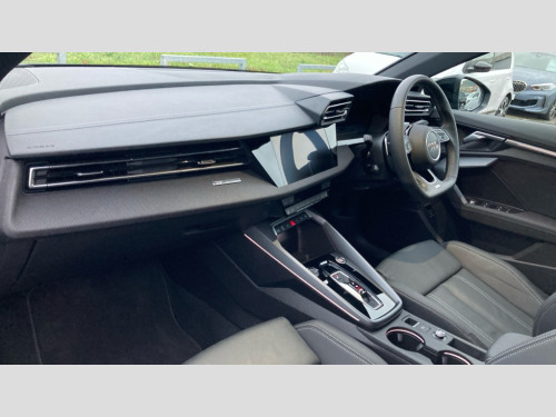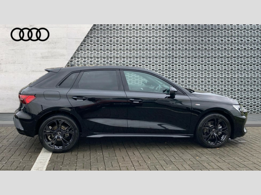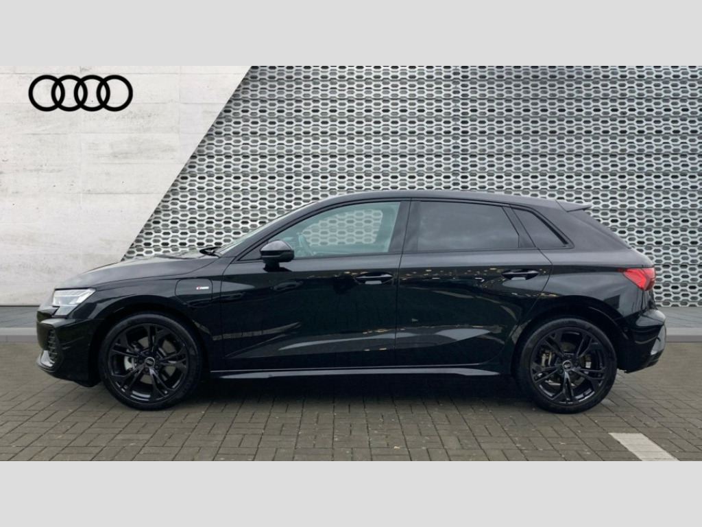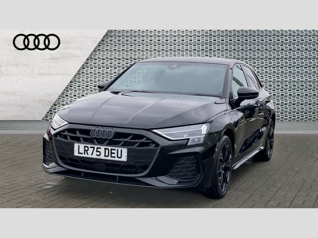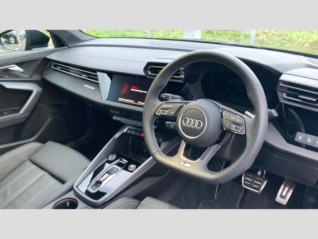 Audi A3 40 TFSI e Black Edition 5dr S Tronic Adjustable speed limiter, Audi drive select, Audi smartphone interface with app store includes wireless Apple carplay, Android auto and Amazon alexa integration, Audi virtual cockpit plus - 12.3" full HD resolution dynamic digital instrument cluster, Automatic start/stop system with recuperation, Bluetooth interface, Camera based traffic sign recognition, Collision avoidance assistant, Cruise control, Distraction and Fatigue warning, e-Call (emergency call), Electromechanical power speed sensitive steering, Emergency assist, Lane departure warning system, MMI Navigation Plus with high resolution 10.1" colour touch screen display, Park Assist with parking system Plus, Service indicator, Trip computer, Voice control system with natural language interaction, 3 pin 10 amp domestic charging cable, CCS socket for DC charging, Charging cable for public charging, mode 3 (type 2), 32 A, Compact charging system, Industrial connector CEE 32 A, 230 V, length 1.6 m, Standard suspension, Type 2 socket for AC charging, Audi Phonebox light with wireless charging, Audi sound system - 10 loudspeakers including centre loudspeaker and subwoofer, DAB Digital radio, USB ports with charging function in the rear, Acoustic glass windscreen, All weather light, Anthracite grey Audi rings (front and rear), Audi beam uses LEDs to project the Audi logo onto the ground as you exit your A3, Auto dimming frameless rear view mirror, Automatic dynamic range control, Black accents front and rear bumpers, Black accents in the area of the Audi single frame grille, Black accents window trims strips, Dipped beam, main beam, position light and turning light, Electrically adjustable/heated/folding/auto dimming door mirrors with integrated LED indications + kerb view function for passenger side, Exterior model badging, Front and rear side air inlets in grained matt black with dark liquid chrome frame, Front electric windows, Heat insulating glass windscreen, Illuminated door sills with aluminium inserts at the front with S logo, Intersection light, LED 3rd brake light, LED brake lights, LED daytime running x3, LED headlights with LED rear lights and dynamic rear indicators, LED rear number plate lights, LED reverse light, LED tail lights, Light and rain sensors, Manoeuvring light, Motorway light, Privacy glass - dark tinted rear window, rear door and side windows, Rear diffuser and grill in grained matt black with inlay in dark liquid chrome, Rear electric windows, Rear side wing doors, Rear wiper, S roof spoiler, Static cornering light, 12V socket and storage compartment in front centre console, 3 seat bench in 2nd row, 3 spoke flat bottomed leather multifunction sport steering wheel with gear shift paddles, 3-zone deluxe automatic air conditioning, 4 way electrically adjustable lumbar support for driver and front passenger, 40/20/40 split folding rear seat bench, Black cloth headlining, Black front and rear floor mats, Convenience auxiliary air conditioning, Front and rear centre armrest in artificial leather with contrasting stitching on armrests and instrument panel, Front and rear headrests, Heated front seats, Height and reach adjustable steering wheel, Manual boot compartment lid, Manually adjustable front seats, Rear centre armrest with cupholder, S badging on the steering wheel, Seat side bolsters, Single front passenger seat, Stainless steel pedals and front footrest in black, Twin leather upholstery with front sports seats S embossed logo, Aluminium interior elements pack - A3, 3x3 point rear seat belts, Acoustic vehicle alerting system, Driver and front passenger airbag with passenger airbag deactivation, Electronic Stabilisation Control (ESC) including ABS, ASR and EDL, First aid kit with warning triangle and 2 safety vests, Front side airbags with head airbags and interaction airbag, Hill hold assist, Pre-sense front with pedestrian and cyclist detection, Seatbelt monitoring, Tyre pressure loss indicator, Anti theft alarm, Anti-theft wheel bolts, Electronically operated child locks, Immobiliser, Remote central locking with safelock, Black dashboard, 18" 5 Y twin spoke style alloy wheel in metallic black, Tyre repair kit