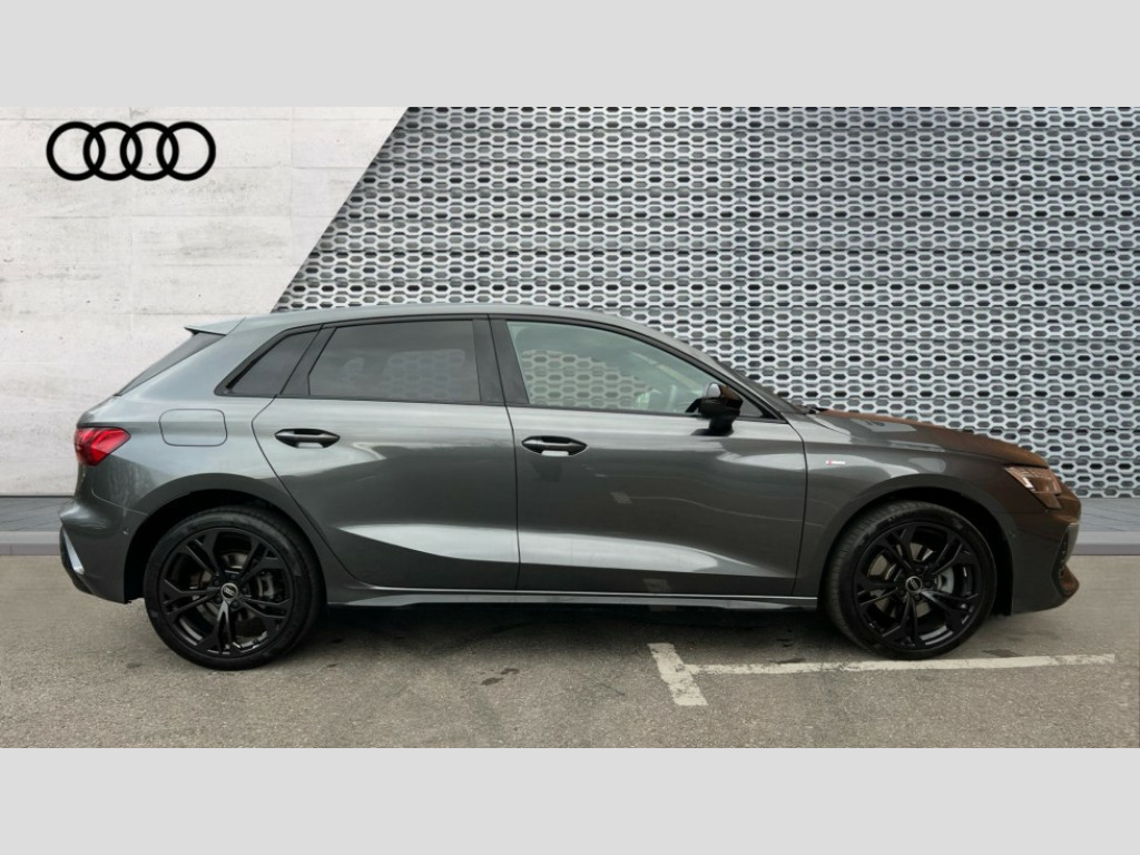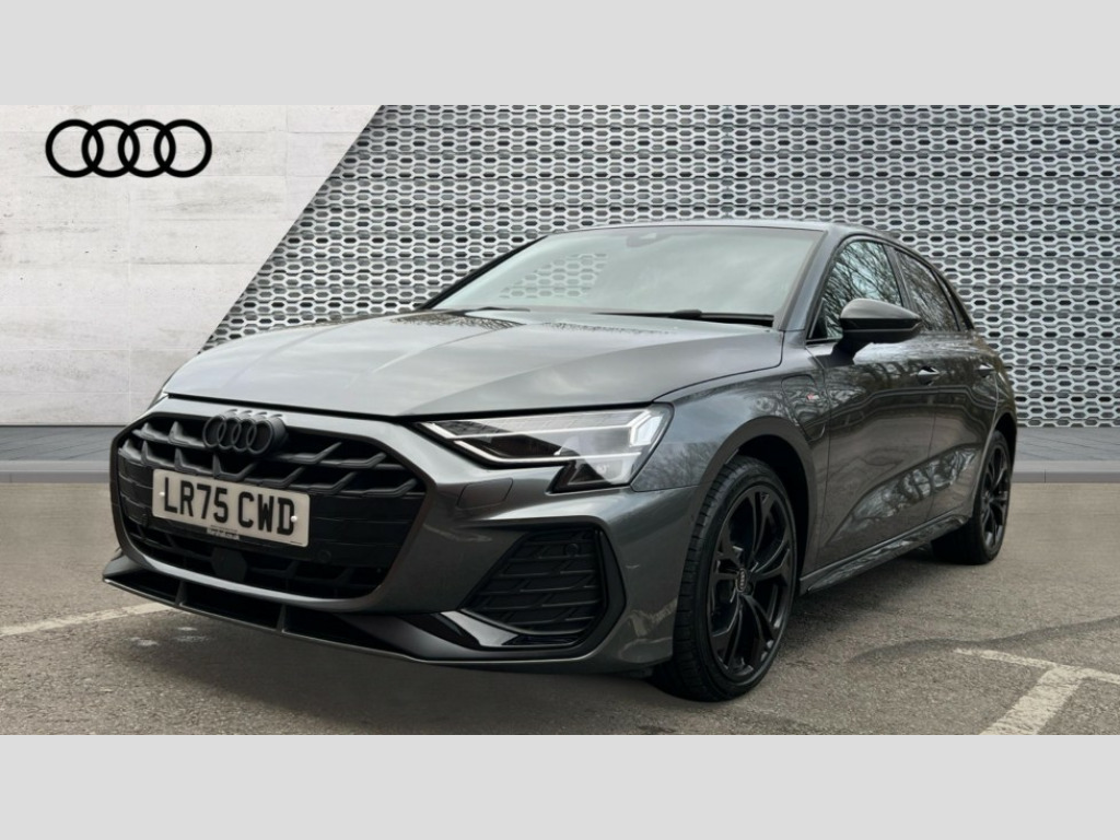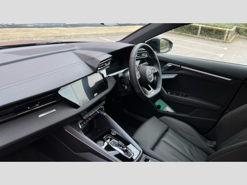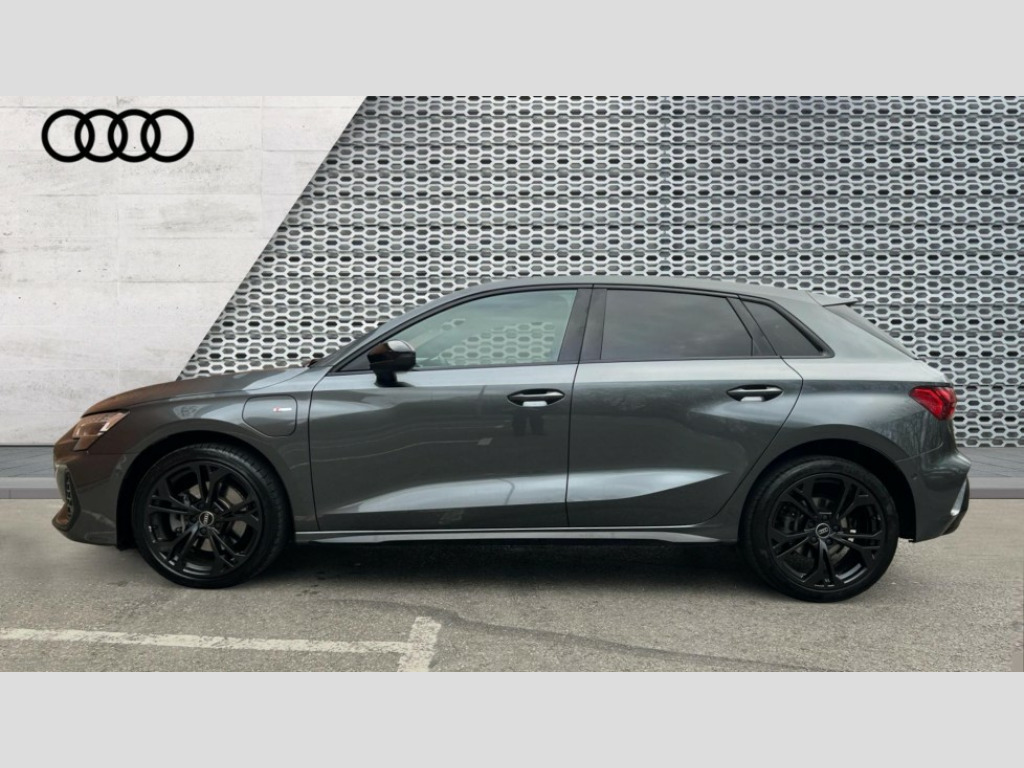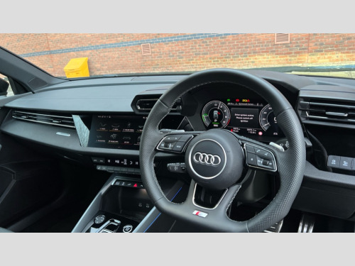 Audi A3 40 TFSI e Black Edition 5dr S Tronic Adjustable speed limiter, Audi drive select, Audi smartphone interface with app store includes wireless Apple carplay, Android auto and Amazon alexa integration, Audi virtual cockpit plus - 12.3" full HD resolution dynamic digital instrument cluster, Automatic start/stop system with recuperation, Bluetooth interface, Camera based traffic sign recognition, Collision avoidance assistant, Cruise control, Distraction and Fatigue warning, e-Call (emergency call), Electromechanical power speed sensitive steering, Emergency assist, Lane departure warning system, MMI Navigation Plus with high resolution 10.1" colour touch screen display, Park Assist with parking system Plus, Service indicator, Trip computer, Voice control system with natural language interaction, 3 pin 10 amp domestic charging cable, CCS socket for DC charging, Charging cable for public charging, mode 3 (type 2), 32 A, Compact charging system, Industrial connector CEE 32 A, 230 V, length 1.6 m, Standard suspension, Type 2 socket for AC charging, Audi Phonebox light with wireless charging, Audi sound system - 10 loudspeakers including centre loudspeaker and subwoofer, DAB Digital radio, USB ports with charging function in the rear, Acoustic glass windscreen, All weather light, Anthracite grey Audi rings (front and rear), Audi beam uses LEDs to project the Audi logo onto the ground as you exit your A3, Auto dimming frameless rear view mirror, Automatic dynamic range control, Black accents front and rear bumpers, Black accents in the area of the Audi single frame grille, Black accents window trims strips, Dipped beam, main beam, position light and turning light, Electrically adjustable/heated/folding/auto dimming door mirrors with integrated LED indications + kerb view function for passenger side, Exterior model badging, Front and rear side air inlets in grained matt black with dark liquid chrome frame, Front electric windows, Heat insulating glass windscreen, Illuminated door sills with aluminium inserts at the front with S logo, Intersection light, LED 3rd brake light, LED brake lights, LED daytime running x3, LED headlights with LED rear lights and dynamic rear indicators, LED rear number plate lights, LED reverse light, LED tail lights, Light and rain sensors, Manoeuvring light, Motorway light, Privacy glass - dark tinted rear window, rear door and side windows, Rear diffuser and grill in grained matt black with inlay in dark liquid chrome, Rear electric windows, Rear side wing doors, Rear wiper, S roof spoiler, Static cornering light, 12V socket and storage compartment in front centre console, 3 seat bench in 2nd row, 3 spoke flat bottomed leather multifunction sport steering wheel with gear shift paddles, 3-zone deluxe automatic air conditioning, 4 way electrically adjustable lumbar support for driver and front passenger, 40/20/40 split folding rear seat bench, Black cloth headlining, Black front and rear floor mats, Convenience auxiliary air conditioning, Front and rear centre armrest in artificial leather with contrasting stitching on armrests and instrument panel, Front and rear headrests, Heated front seats, Height and reach adjustable steering wheel, Manual boot compartment lid, Manually adjustable front seats, Rear centre armrest with cupholder, S badging on the steering wheel, Seat side bolsters, Single front passenger seat, Stainless steel pedals and front footrest in black, Twin leather upholstery with front sports seats S embossed logo, Aluminium interior elements pack - A3, 3x3 point rear seat belts, Acoustic vehicle alerting system, Driver and front passenger airbag with passenger airbag deactivation, Electronic Stabilisation Control (ESC) including ABS, ASR and EDL, First aid kit with warning triangle and 2 safety vests, Front side airbags with head airbags and interaction airbag, Hill hold assist, Pre-sense front with pedestrian and cyclist detection, Seatbelt monitoring, Tyre pressure loss indicator, Anti theft alarm, Anti-theft wheel bolts, Electronically operated child locks, Immobiliser, Remote central locking with safelock, Black dashboard, 18" 5 Y twin spoke style alloy wheel in metallic black, Tyre repair kit