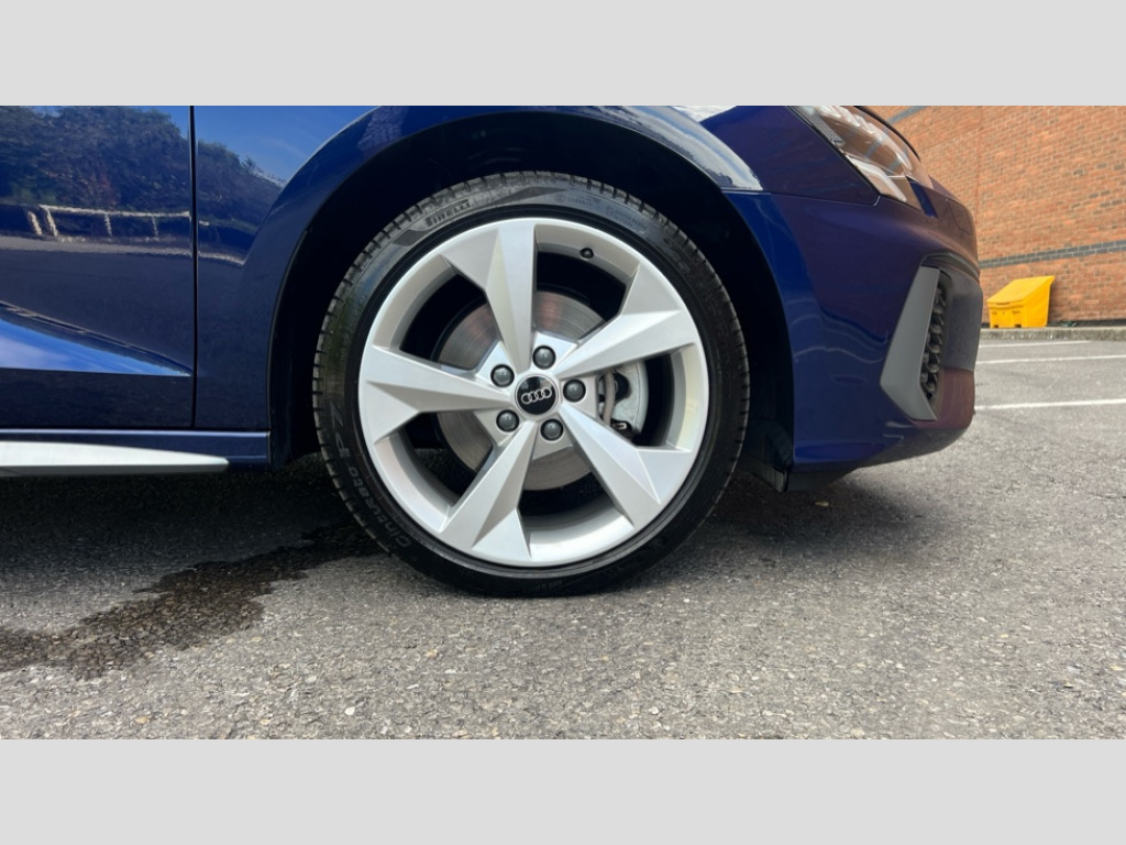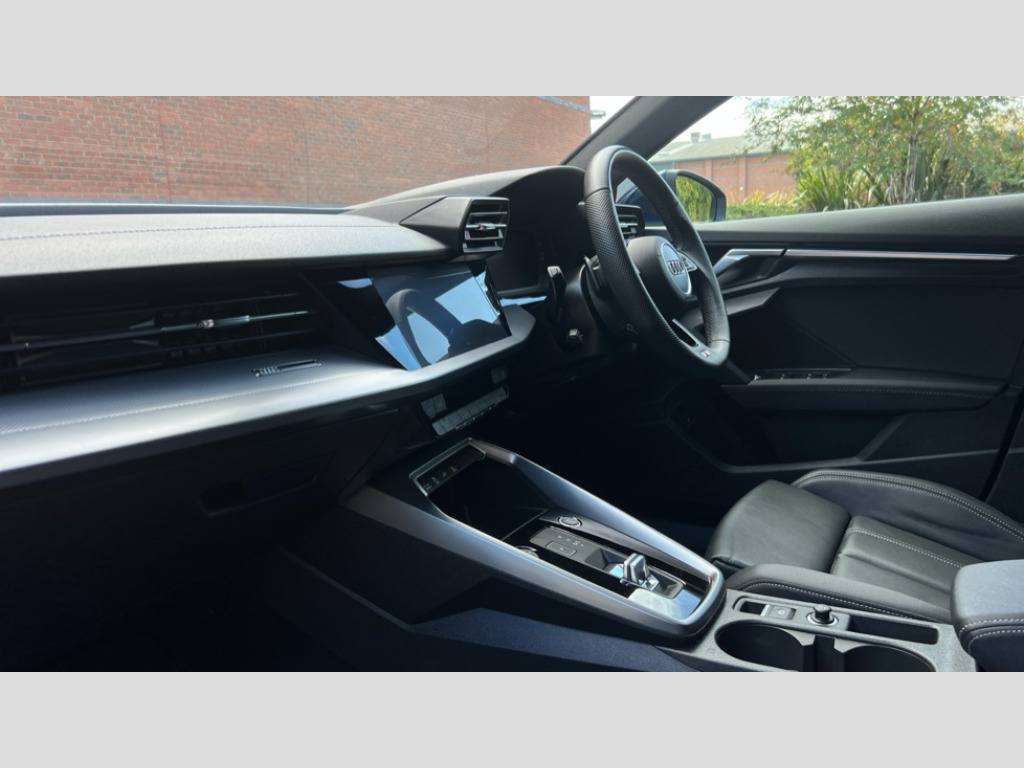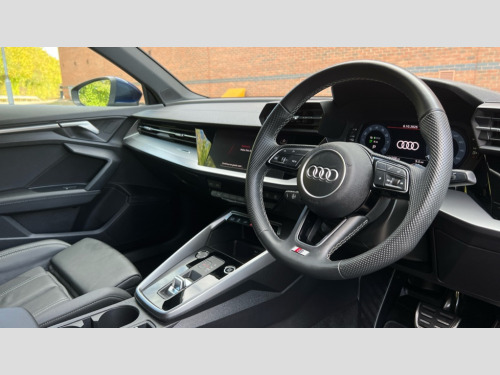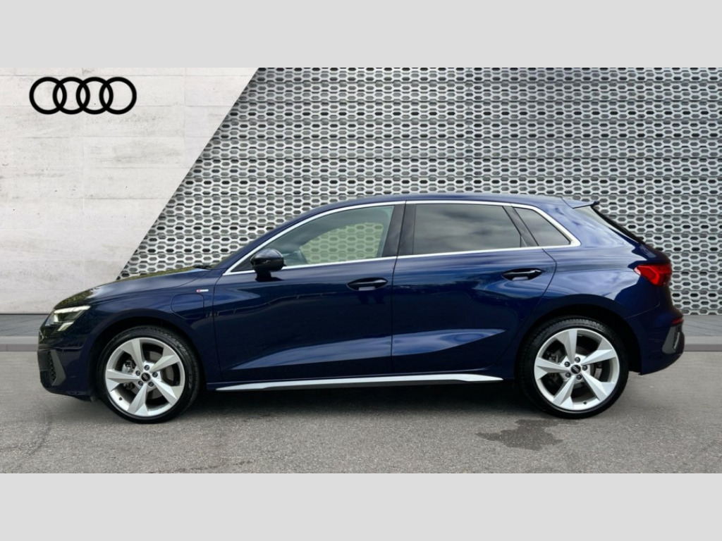 Audi A3 40 TFSI e S Line 5dr S Tronic Audi drive select (Auto, Comfort, Dynamic, Efficiency and Individual), Audi smartphone interface, Audi Virtual Cockpit - 10.25" digital and colour instrument cluster, Automatic start/stop system with recuperation, Bluetooth interface, Camera based traffic sign recognition, Collision avoidance assistant, e-Call (emergency call), Electromechanical power speed sensitive steering, Lane departure warning system, MMI Navigation Plus with high resolution 10.1" colour touch screen display, Service indicator, Trip computer, Voice control system with natural language interaction, 3 pin 10 amp domestic charging cable, 3.6 kw On-board charger, Standard suspension, Type 2 mode 3 32 amp charging cable, Type 2 socket for AC charging, 2xUSB-C connection with data and charging functions, 6 passive loudspeakers, DAB Digital radio, 3rd brake light, Acoustic glass windscreen, Aluminium window trim, Auto dimming frameless rear view mirror, Body colour exterior mirrors, Electrically adjustable/heated/folding/auto dimming door mirrors with integrated LED indications + kerb view function for passenger side, Front electric windows, Illuminated door sills with aluminium inserts at the front with S logo, LED daytime running lights, LED headlights with LED rear lights and dynamic rear indicators, Light and rain sensors, Privacy glass - dark tinted rear window, rear door and side windows, Rear electric windows, Rear side air outlets in grained matt black, Rear side wing doors, Rear wiper, S line bumpers, S roof spoiler, 12V socket and storage compartment in front centre console, 3 seat bench in 2nd row, 3 spoke leather multifunction steering wheel with paddle shift, 4 way electrically adjustable lumbar support for driver and front passenger, 60/40 split folding rear seat bench, Black cloth headlining, Dual zone electronic climate control, Front and rear centre armrest in artificial leather, Front and rear headrests, Front/rear floor mats, Height and reach adjustable steering wheel, Interior lighting - glove compartment light and right hand side, Luggage compartment floor covering, Manual boot compartment lid, Manually adjustable front seats, Seat side bolsters, Single front passenger seat, Stainless steel pedals and front footrest in black, Twin leather upholstery with front sports seats S embossed logo, Aluminium interior elements pack - A3 Sportback, LED interior lighting pack - A3 Sportback, S line styling pack - A3 Sportback, 3x3 point rear seat belts, Driver and front passenger airbag with passenger airbag deactivation, Electronic Stabilisation Control (ESC) including ABS, ASR and EDL, First aid kit with warning triangle and 2 safety vests, Front side airbags with head airbags and interaction airbag, Pre-sense front with pedestrian and cyclist detection, Seatbelt monitoring, Tyre pressure loss indicator, Anti theft alarm, Anti-theft wheel bolts, Electronically operated child locks, Immobiliser, Remote control central locking, Dark spectrum aluminium inlays, accent surfaces in the dashboard and centre console in platinum grey silk effect paint finish, Tool kit, Tyre repair kit