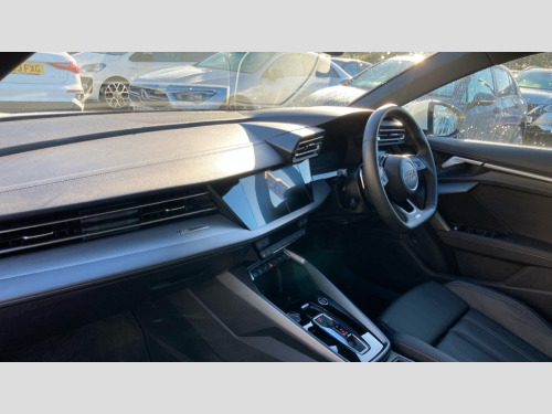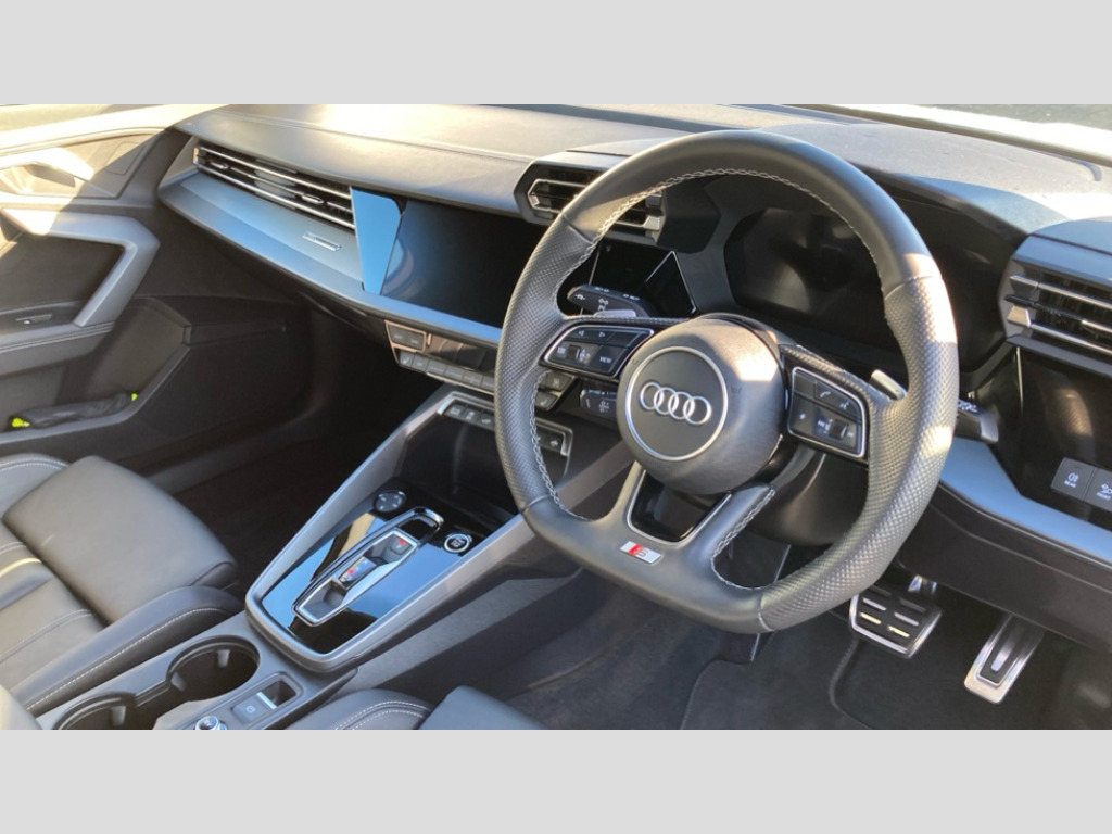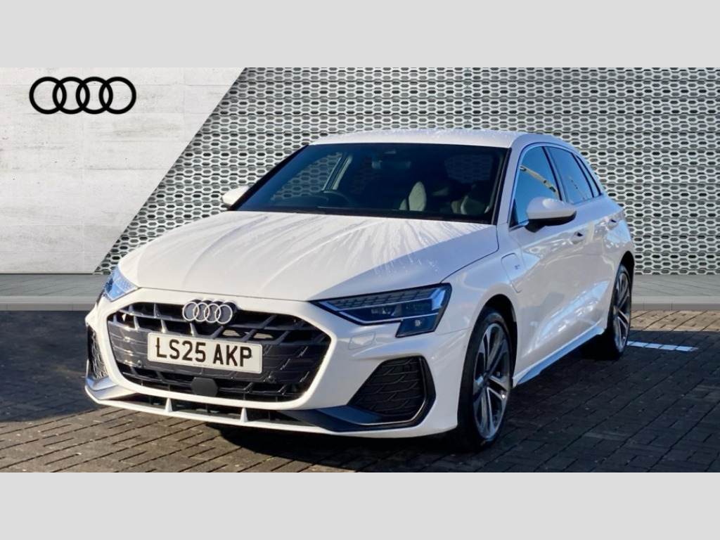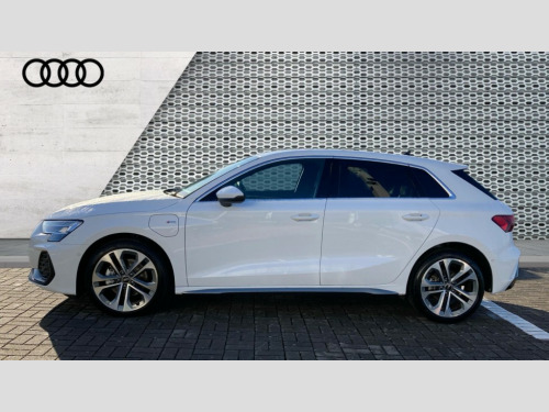 Audi A3 40 TFSI e S Line 5dr S Tronic Adjustable speed limiter, Audi drive select, Audi smartphone interface with app store includes wireless Apple carplay, Android auto and Amazon alexa integration, Audi virtual cockpit plus - 12.3" full HD resolution dynamic digital instrument cluster, Automatic start/stop system with recuperation, Bluetooth interface, Camera based traffic sign recognition, Collision avoidance assistant, Cruise control, Distraction and Fatigue warning, e-Call (emergency call), Electromechanical power speed sensitive steering, Lane departure warning system, MMI Navigation Plus with high resolution 10.1" colour touch screen display, Park Assist with parking system Plus, Service indicator, Trip computer, Voice control system with natural language interaction, 3 pin 10 amp domestic charging cable, CCS socket for DC charging, Charging cable for public charging, mode 3 (type 2), up to 22 kW (AC), Compact charging system, Industrial connector CEE 32 A, 230 V, length 1.6 m, Standard suspension, Type 2 socket for AC charging, Audi Phonebox light with wireless charging, Audi sound system - 10 loudspeakers including centre loudspeaker and subwoofer, DAB Digital radio, USB ports with charging function in the rear, Acoustic glass windscreen, Aluminium window trim, Auto dimming frameless rear view mirror, Body colour exterior mirrors, Chrome exhaust tailpipes, Electrically adjustable/heated/folding/auto dimming door mirrors with integrated LED indications + kerb view function for passenger side, Exterior model badging, Front and rear side air inlets in grained matt black with dark liquid chrome frame, Front electric windows, Front radiator grill in high gloss dark chrome, Heat insulating glass windscreen, Illuminated door sills with aluminium inserts at the front with S logo, LED 3rd brake light, LED daytime running lights, LED headlights with LED rear lights and dynamic rear indicators, Light and rain sensors, Privacy glass - dark tinted rear window, rear door and side windows, Rear diffuser and grill in grained matt black with inlay in dark liquid chrome, Rear electric windows, Rear side wing doors, Rear wiper, S line bumpers, S roof spoiler, Side S line emblems on front wings, Side sill trim in dark liquid chrome, 12V socket and storage compartment in front centre console, 3 seat bench in 2nd row, 3 spoke flat bottomed leather multifunction sport steering wheel with gear shift paddles, 3-zone deluxe automatic air conditioning, 4 way electrically adjustable lumbar support for driver and front passenger, 40/20/40 split folding rear seat bench, Black cloth headlining, Convenience auxiliary air conditioning, Front and rear centre armrest in artificial leather, Front and rear centre armrest in artificial leather with contrasting stitching on armrests and instrument panel, Front and rear headrests, Front/rear floor mats, Heated front seats, Height and reach adjustable steering wheel, Manual boot compartment lid, Manually adjustable front seats, Rear cup holders, S badging on the steering wheel, Seat side bolsters, Single front passenger seat, Stainless steel pedals and front footrest in black, Twin leather upholstery with front sports seats S embossed logo, Aluminium interior elements pack - A3 Sportback, Multi-coloured LED interior lighting package - A3, 3x3 point rear seat belts, Acoustic vehicle alerting system, Driver and front passenger airbag with passenger airbag deactivation, Electronic Stabilisation Control (ESC) including ABS, ASR and EDL, First aid kit with warning triangle and 2 safety vests, Front side airbags with head airbags and interaction airbag, Hill hold assist, Pre-sense front with pedestrian and cyclist detection, Seatbelt monitoring, Tyre pressure loss indicator, Anti theft alarm, Anti-theft wheel bolts, Electronically operated child locks, Immobiliser, Remote central locking with safelock, Dash & door Inlay in dark aluminium Spectrum, Tyre repair kit