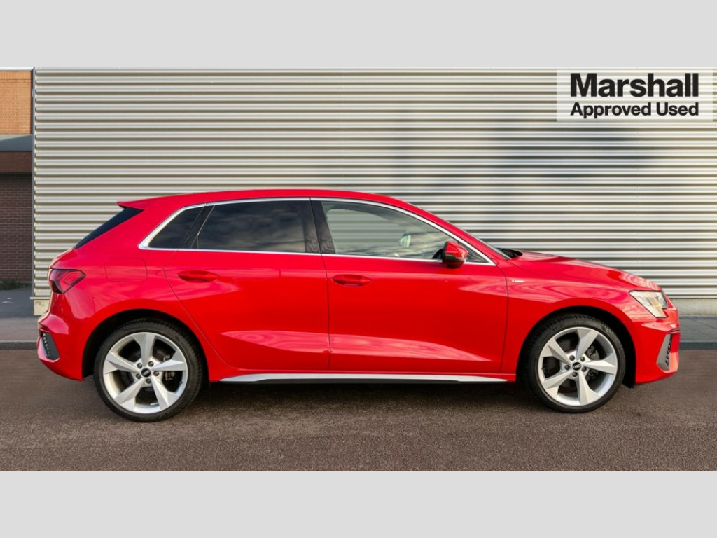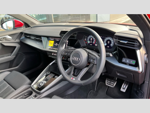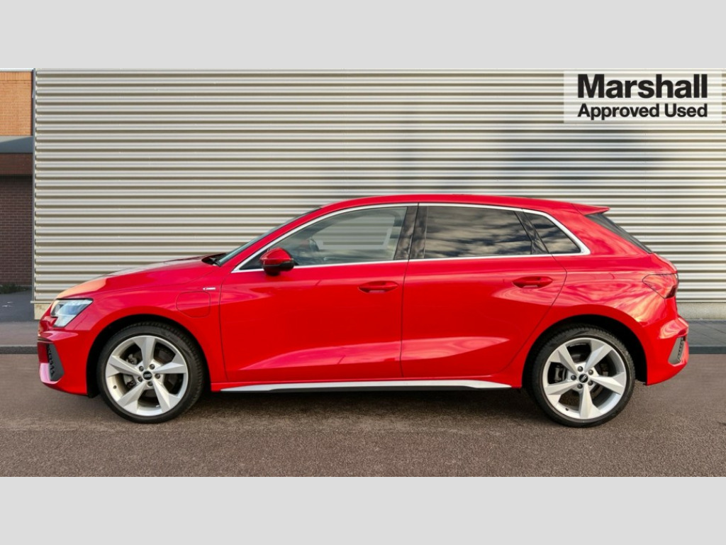 Audi A3 40 TFSI e S Line 5dr S Tronic Audi connect emergency call and service, Audi drive select (Auto, Comfort, Dynamic, Efficiency and Individual), Audi smartphone interface, Audi Virtual Cockpit - 10.25" digital and colour instrument cluster, Automatic start/stop system with recuperation, Bluetooth interface, Collision avoidance assistant, Electromechanical power speed sensitive steering, Lane departure warning system, MMI Navigation Plus with high resolution 10.1" colour touch screen display, Service indicator, Trip computer, Voice control system with natural language interaction, 3 pin 10 amp domestic charging cable, Type 2 mode 3 32 amp charging cable, Type 2 socket for AC charging, 1xUSB-A and 1xUSB-C connection, 6 passive loudspeakers, DAB Digital radio, Acoustic glass windscreen, Aluminium window trim, Auto dimming frameless rear view mirror, Body colour exterior mirrors, Electrically adjustable/heated/folding/auto dimming door mirrors with integrated LED indications + kerb view function for passenger side, Front electric windows, Illuminated aluminium inserts front door sills with S logo, LED daytime running lights, Light and rain sensors, Privacy glass - dark tinted rear window, rear door and side windows, Rear electric windows, Rear side air outlets in grained matt black, Rear wiper, S line bumpers, S roof spoiler, 12V socket and storage compartment in front centre console, 40/20/40 split folding rear seat bench with cupholder, Black cloth headlining, Dual zone electronic climate control, Front and rear centre armrest in leather, Front and rear headrests, Front/rear floor mats, Height and reach adjustable steering wheel, Interior lighting - glove compartment light and right hand side, Luggage compartment floor covering, Manual boot compartment lid, Manually adjustable front seats, Seat side bolsters, Stainless steel pedals and front footrest, Twin leather upholstery with front sports seats S embossed logo, Aluminium interior elements pack - A3 Sportback, S line styling pack - A3 Sportback, 3x3 point rear seat belts, Driver and front passenger airbag with passenger airbag deactivation, Electronic Stabilisation Control (ESC) including ABS, ASR and EDL, First aid kit with warning triangle and 2 safety vests, Front side airbags with head airbags and interaction airbag, Hill hold assist, Pre-sense front with pedestrian and cyclist detection, Seatbelt monitoring, Tyre pressure loss indicator, Anti theft alarm, Anti-theft wheel bolts, Electronically operated child lock, Immobiliser, Remote control central locking, Accent surfaces in the dashboard and centre console in platinum grey silk effect paint finish, Dark spectrum aluminium inlays, Tool kit, Tyre repair kit