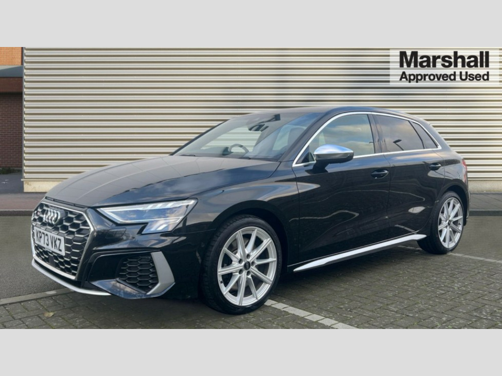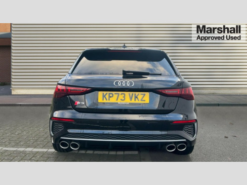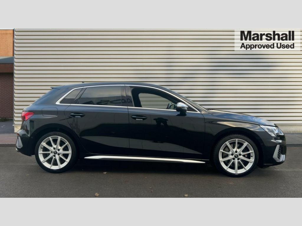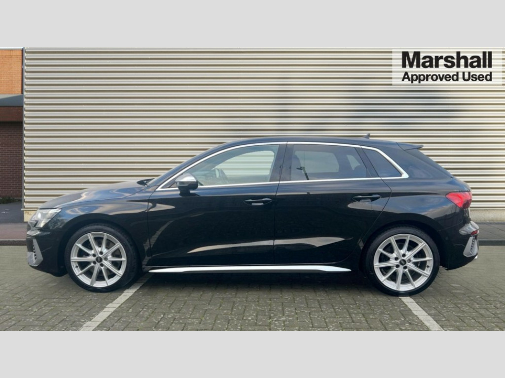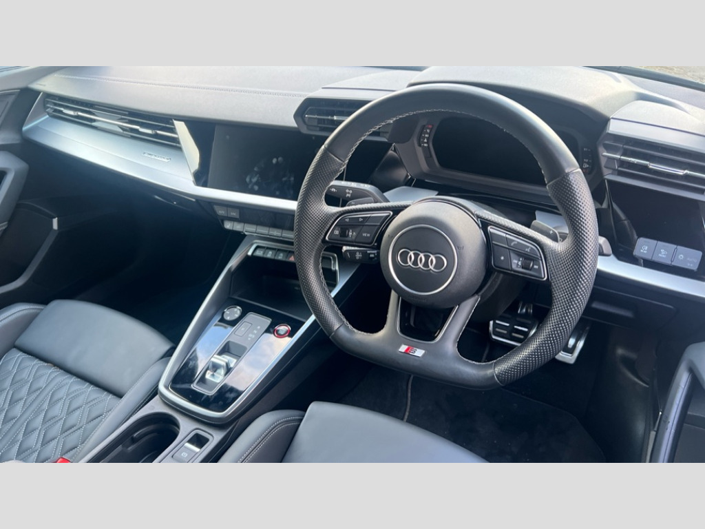 Audi A3 S3 TFSI Quattro 5dr S Tronic Audi drive select (Auto, Comfort, Dynamic, Efficiency and Individual), Audi smartphone interface, Audi Virtual Cockpit - 10.25" digital and colour instrument cluster, Automatic start/stop system with recuperation, Bluetooth interface, Collision avoidance assistant, e-Call (emergency call), Lane departure warning system, MMI Navigation Plus with high resolution 10.1" colour touch screen display, Progressive steering, Service indicator, Trip computer, Voice control system with natural language interaction, Quattro permanent all wheel drive, S sports suspension, 2xUSB-C connection with data and charging functions, 6 passive loudspeakers, DAB Digital radio, 3rd brake light, Acoustic glass windscreen, Aluminium window trim, Audi Beam uses LEDs to project the Audi S3 logo, Auto dimming frameless rear view mirror, Dual branch oval twin tailpipes in chrome plated finish, Electrically adjustable/heated/folding/auto dimming door mirrors with integrated LED indications + kerb view function for passenger side, Exterior mirror with aluminium look housing, Front electric windows, Headlight washers, Illuminated aluminium inserts front door sills with S logo, LED daytime running lights, LED headlights with LED rear lights and dynamic rear indicators, Light and rain sensors, Privacy glass - dark tinted rear window, rear door and side windows, Rear electric windows, Rear side air outlets in grained matt black, Rear side wing doors, Rear wiper, 12V socket and storage compartment in front centre console, 3 seat bench in 2nd row, 40/20/40 split folding rear seat bench with cupholder, Black cloth headlining, Dual zone electronic climate control, Fine Nappa leather upholstery with front sports seats S embossed logo, Front and rear centre armrest in leather, Front and rear headrests, Front/rear floor mats, Heated front seats, Height and reach adjustable steering wheel, Illuminated vanity mirror, Interior lighting - glove compartment light and right hand side, Luggage compartment floor covering, Manual boot compartment lid, Manually adjustable front seats, Seat side bolsters, Single front passenger seat, Stainless steel pedals and front footrest in black, Aluminium interior elements pack - A3 Sportback, Design body styling - A3 Sportback, LED interior lighting pack - A3 Sportback, Storage pack - A3 Sportback, 3x3 point rear seat belts, Audi pre sense front, Driver and front passenger airbag with passenger airbag deactivation, Electronic Stabilisation Control (ESC) including ABS, ASR and EDL, First aid kit with warning triangle and 2 safety vests, Front side airbags with head airbags and interaction airbag, Pre-sense front with pedestrian and cyclist detection, Seatbelt monitoring, Tyre pressure loss indicator, Anti theft alarm, Anti-theft wheel bolts, Electronically operated child lock, Immobiliser, Remote control central locking, Accent surfaces in the dashboard and centre console in platinum grey silk effect paint finish, Dark spectrum aluminium inlays