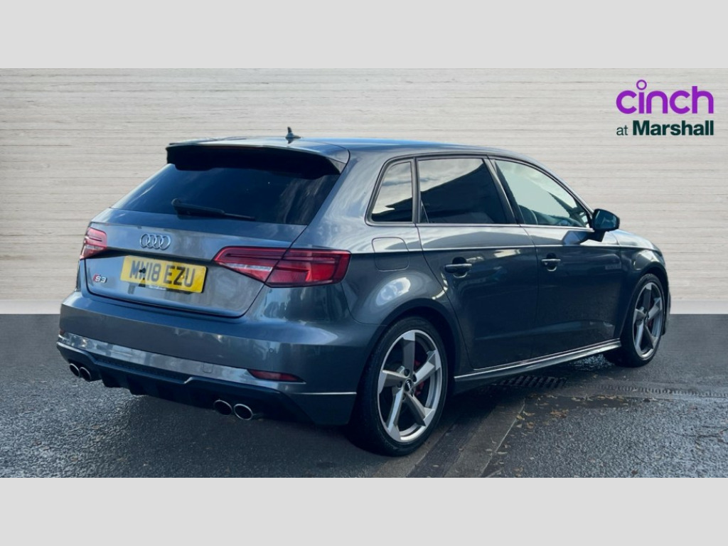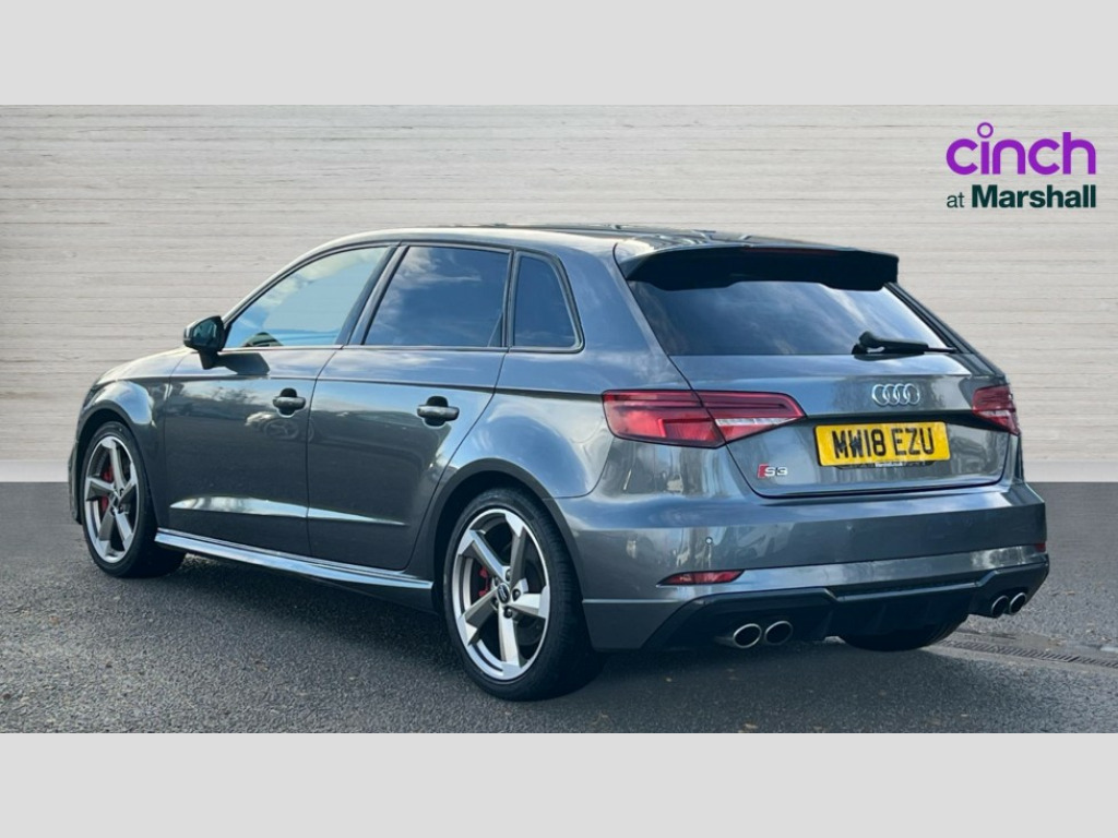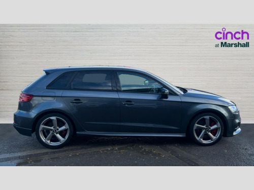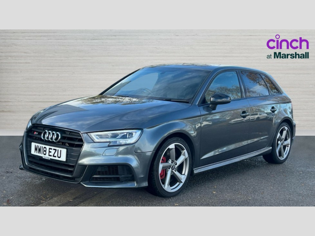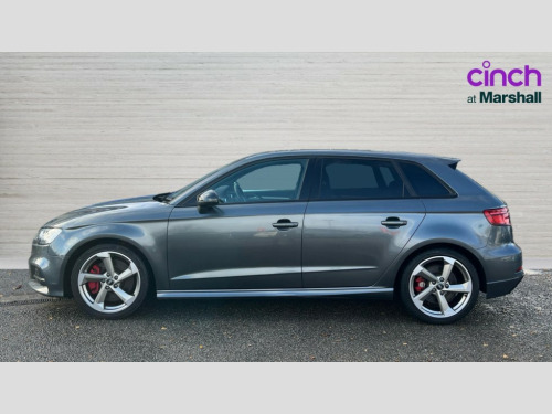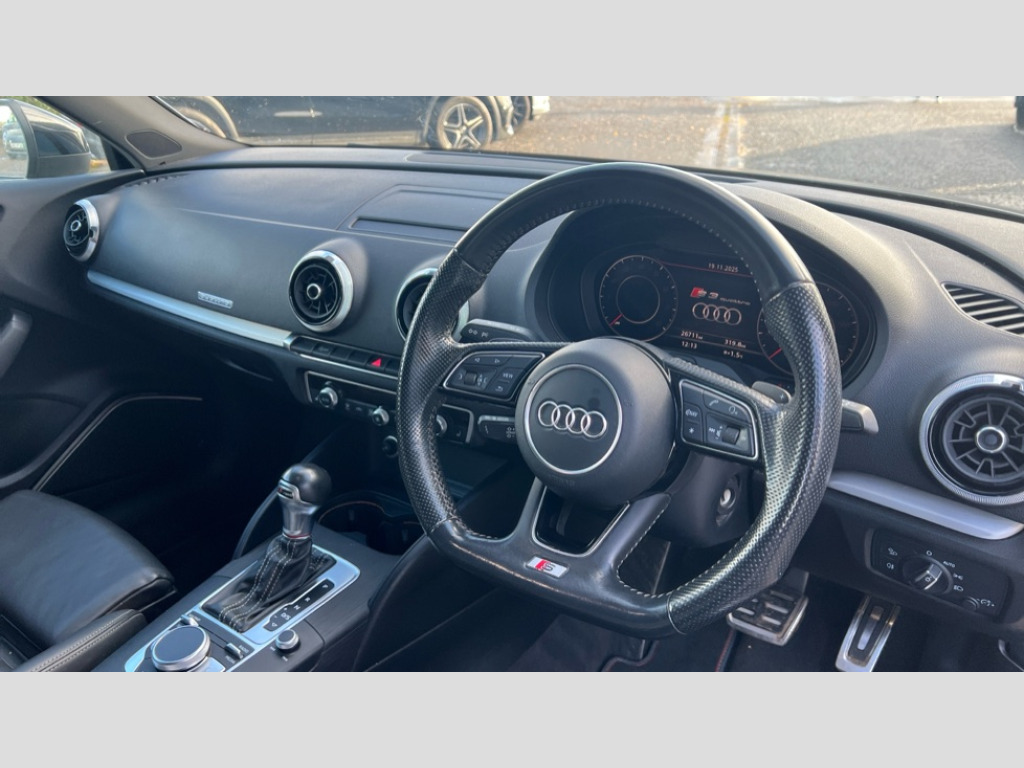 Audi A3 S3 TFSI Quattro Black Edition 5dr S Tronic Audi connect, Audi drive select, Audi smartphone interface, Colour driver's information system display, HDD satellite navigation system radio single CD/DVD player MMI control system, Mobile telephone preparation - bluetooth interface, Progressive power assisted steering, Service interval indicator, Speed limit display, Voice control system, S sports suspension, 2 USB ports, Audi music interface, Auxiliary input socket, Bang + Olufsen advanced sound system, CD player, DAB Digital radio, MMI radio plus with 7" colour MMI screen and MMI controller, Auto dimming rear view mirror with light and rain sensors, Black door mirrors, Black window surrounds, Body colour bumpers with black insert, Body colour roof spoiler, Electric front windows, Electric operated/heated door mirrors, Electric rear windows, Headlight washers, Heated windscreen washer jets, LED daytime running lights, Matt black radiator grille, Platinum grey radiator grille with double chrome bars, Privacy glass, Rear wiper, S body styling, Twin oval chrome trimmed exhaust tailpipes, 3 adjustable rear headrests, 3 spoke flat bottomed multi-function leather steering wheel, 4 lashing points to secure luggage, Adjustable front armrest, Dual zone electronic climate control, Front and rear interior lights with delay, Front passenger seat isofix location point, Front/rear floor mats, Heated front seats, Height/depth adjustable steering column, Illuminated glovebox, ISOFIX child seat preparation+airbag deactivation, Jack and tool kit, Rock grey headlining, Stainless steel pedals, Steering wheel gearshift paddles, Storage compartment in centre console, Storage compartment under front seats, Storage compartments in doors, Black styling pack - A3/S3, LED interior light pack - A3/RS3, Non smoking pack - A3, Storage and luggage pack - A3/RS3, 3 point seatbelts on all seats, ABS/EBD, Active bonnet, Active front headrests, ASR, Curtain airbags, Driver and passenger side airbags, Driver/Front Passenger airbags, Drivers knee airbag, EDL, Electromechanical parking brake, ESC - Electronic Stability Control + traction control, Front passenger airbag deactivation, Hill hold assist, Manual rear child locks, Multi-Collision braking, Seatbelt warning, Tyre pressure warning, Warning triangle and first aid kit, Anti theft alarm, Anti-theft wheel bolts, Remote control central locking, Thatcham category 1 alarm + immobiliser, Aluminium air vent surrounds, Aluminium trim elements, Matt brushed aluminium inlays, Space saver spare wheel