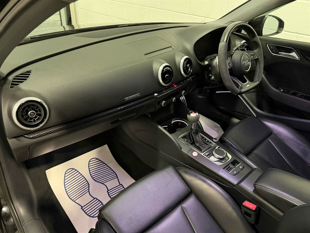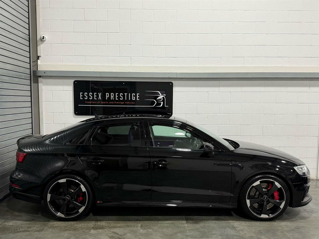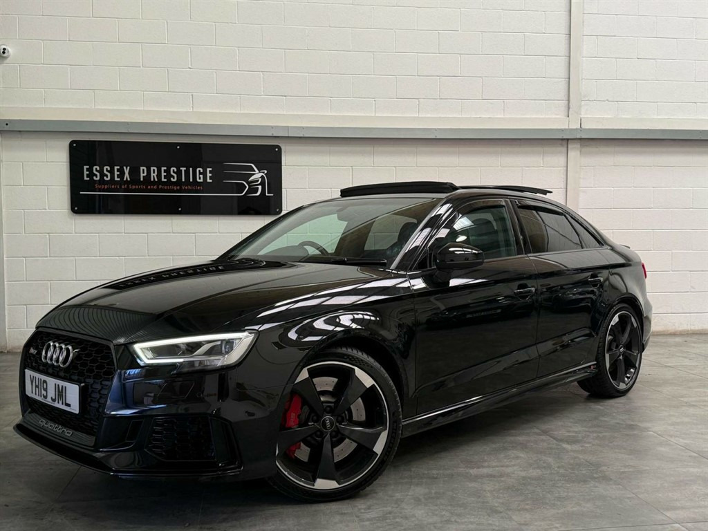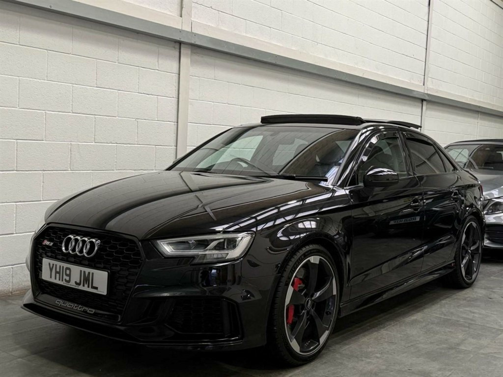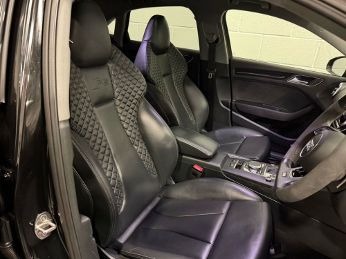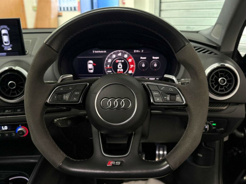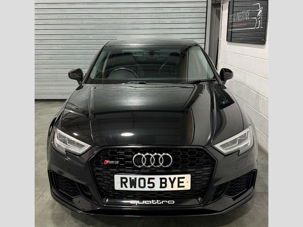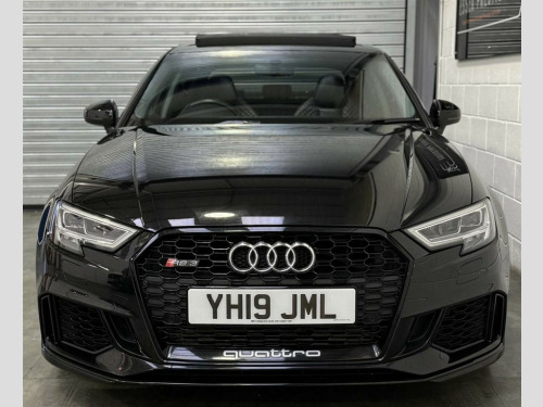 Full Service History, Sat Nav, Black Pack, Pan Roof, Supersport Seats, Sports Exhaust, Rear View Camera, Bang And Olufsen Sound System, Storage Package,Tyre Repair Kit,Tyre Pressure Warning Light,Tool Kit,Storage Compartments in the Door Side Trims-Centre Console-Under Front Passenger Seat,Seats - Split Folding Rear - 60-40,Seat Belt Monitoring,Remote Central Locking with 2 Fold Away Keys,Rear Diffuser Insert in Gloss Black,Radiator Grille Frame - Matt Aluminium look,Radiator Grille - Honeycomb Design in Gloss Black,RS3 Badge on Grille and on Luggage Compartment Lid,RS Sports Suspension,RS Sports Exhaust System,RS Gear Lever Knob in Alcantara with Leather Gaiter with Contrast Stitching,RS Flat Bottomed 3 Spoke Leather Multi-function Sport Steering Wheel with Alcantara Inserts and Gear Shift Paddles in Aluminium Look - Contrast Stitching and RS Badging,Audi Sound System,Dual-Zone Electronic Climate Control,Door Mirrors - Electrically Adjustable and Heated with Integrated LED Side Indicators,DAB Digital Radio,Cruise Control,CD Drive,Brake Calipers Painted in Black with RS Logo at the Front,Bluetooth Interface,Black Styling Package,Black Door Mirrors,Auto-Dimming Rear-View Mirror,Audi Virtual Cockpit with RS Specific Display,ESC - Electronic Stabilisation Control inc ABS - ASR and EDL,Audi Smartphone Interface,Audi Phone Box with Wireless Charging,Audi Parking System Plus,Audi Hill Hold Assist,Audi Drive Select,Audi Connect Infotainment Services (36 Month Subscription From New),Anti-Theft Alarm,Anti Theft Locking Wheel Bolts,Aluminium Interior Elements,6-Airbag System with Knee Airbag for Driver,2 x USB Charging Ports and 1 x AUX-IN,Interior Light Package,RS Dual-branch Exhaust System with Two Oval Tailpipe Trims,RS Brake System,Progressive Steering,Privacy Glass,Pedals - Brushed Stainless Steel,Panoramic Glass Sunroof,Manual Seat Adjustment,MMI Navigation Plus including MMI Touch,Light and Rain Sensor,LED Interior Light Package,LED Headlights with LED Rear Lights and Dynamic Rear Indicators,19in Alloy Wheels - 5-Arm Rotor Design Audi Sport - Gloss Anthracite Black - Diamond Cut Finish,Inlays - Carbon,Illuminated Door Sill Trims with RS Logo,ISOFIX Child Seat Mounting and Top Tether,Heated Front Seats,Headlights Washers,Front Centre Armrest,Flared Front Wheel Arches,First Aid Kit and Warning Triangle,Extended Side Sills in Body Colour,Electric Windows - Front and Rear,Body Coloured Door Mirrors,Brake Calipers Painted in Red with RS Logo at the Front,Door Mirrors - Heated-Electrically Adjustable-Folding-Auto-Dimming,Comfort and Sound Package,Panther Black,Driver Assistance Package,Fine Nappa Leather with Rhombus Pattern - RS Sport Seats with RS Embossed Logo - Black-Rock Grey Stitching